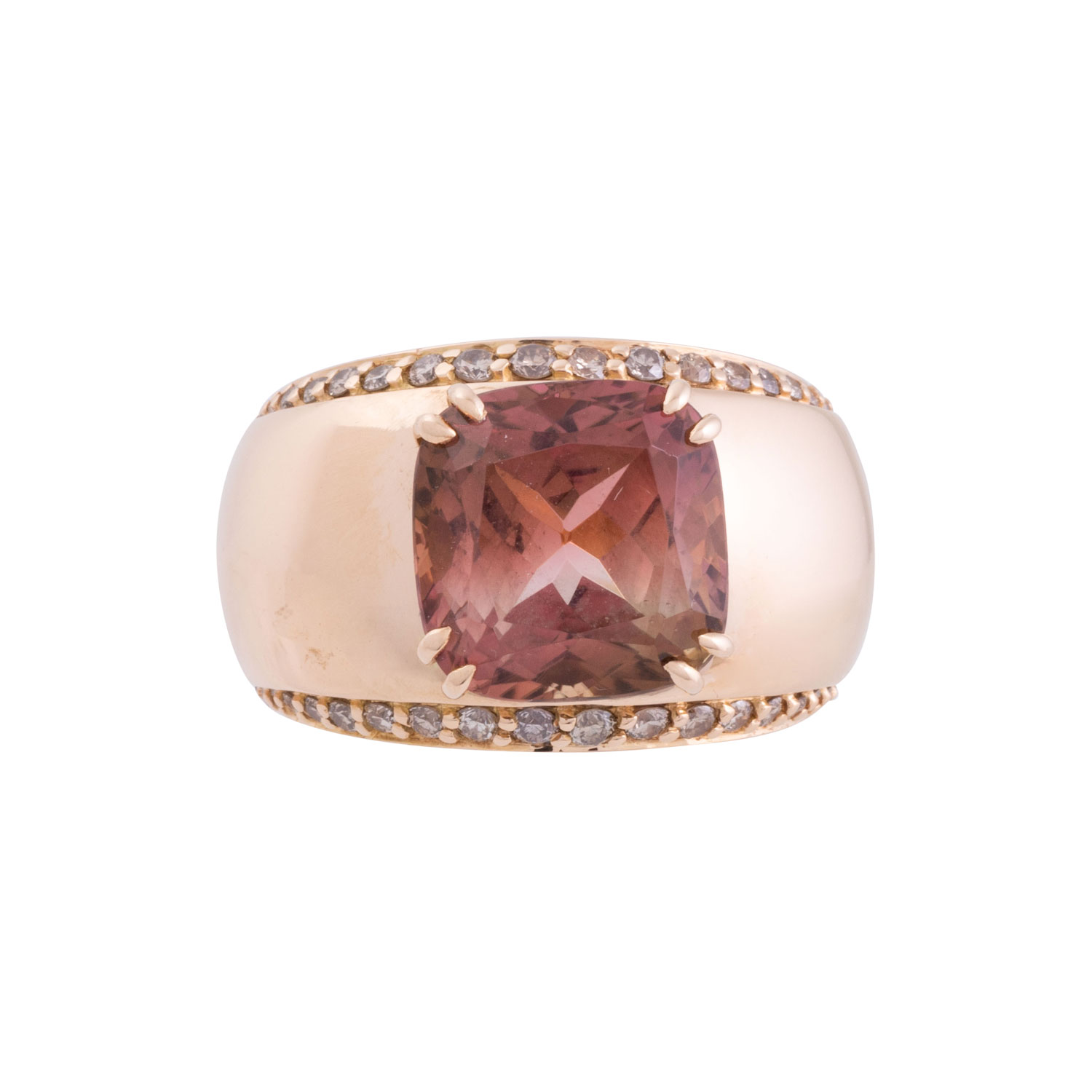 ATELIER WEMPE ring 'Sensual' with tourmaline and cinnamon coloured brilliant-cut diamonds, PP: ca. 7,800 €, 18K RSG, 21.3 gr, ring size 54, 21st century, minor signs of wear. Tourmaline with stron pleochroism pink/orange.
