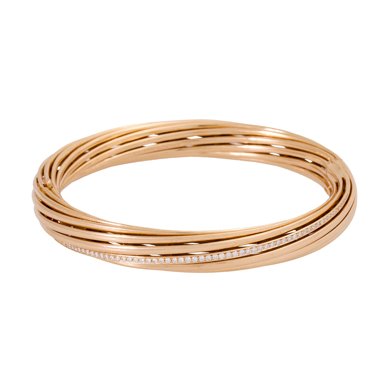 WEMPE BY KIM 'HELIORO' bangle with 116 brilliant-cut diamonds from approx 0.67 ct approx RW (G) /SI, RSG 18K 51.6 g, fits wristsize up to 17.5 cm, 21st century, good condition, handcrafted at the Wempe goldsmith studio.