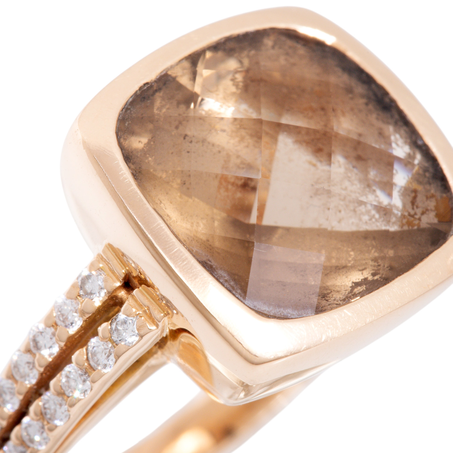 WEMPE BY KIM ring with faceted smoky quartz and brilliant-cut diamonds, totalling 0.25 ct, good color and clarity, YG 18K, 11.2 g, ring size 51, 21st. century, slight signs of wear, with maker's mark.