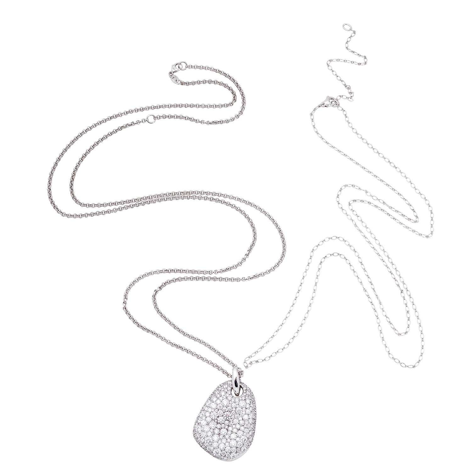 WEMPE BY KIM pendant 'Sensual cosmos' with 193 brilliant-cut diamonds totalling ca. 9.2 ct, ca. RW (G)/SI, current NP (2025): 39,975 € (including 1 necklace), here with 2 necklaces both L: 80/90 cm, pendant 5x3 cm with clip-loop, 18K white gold, 59.2 g, purchase in 2019, good condition, engraved WEMPE BY KIM 2260, including WEMPE certificate and sales receipt.