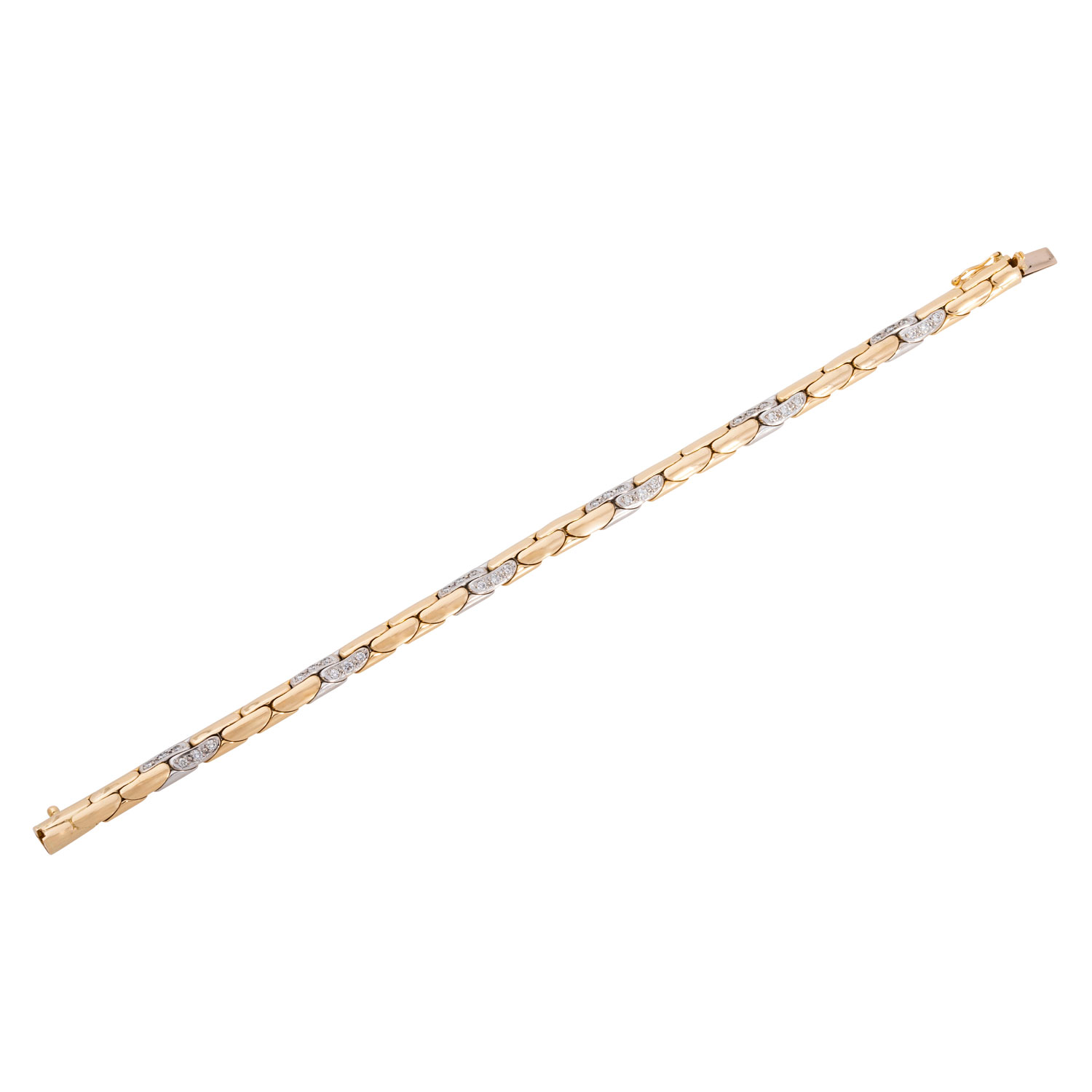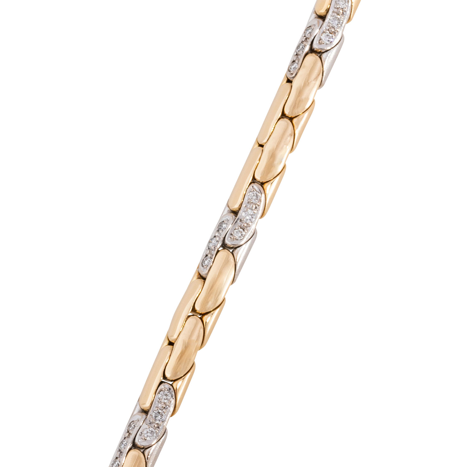 WEMPE Bracelet, curb link chain half round grinded, set with 36 brilliant cut diamonds, totalling ap. 0.60 ct, good colour and clarity, 18K yellow and white gold, 24.9 g, L: 18.7 cm, W: 5.5 mm, box clasp, security catch, late 20th century, minimal signs of wear.