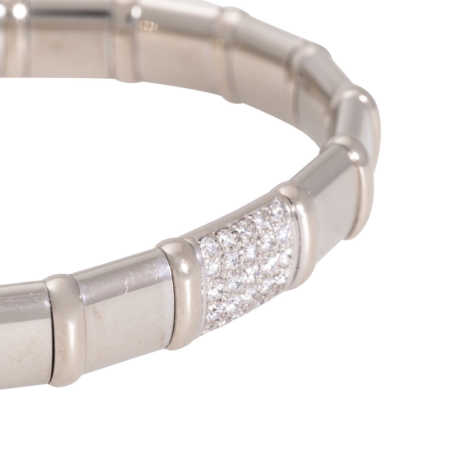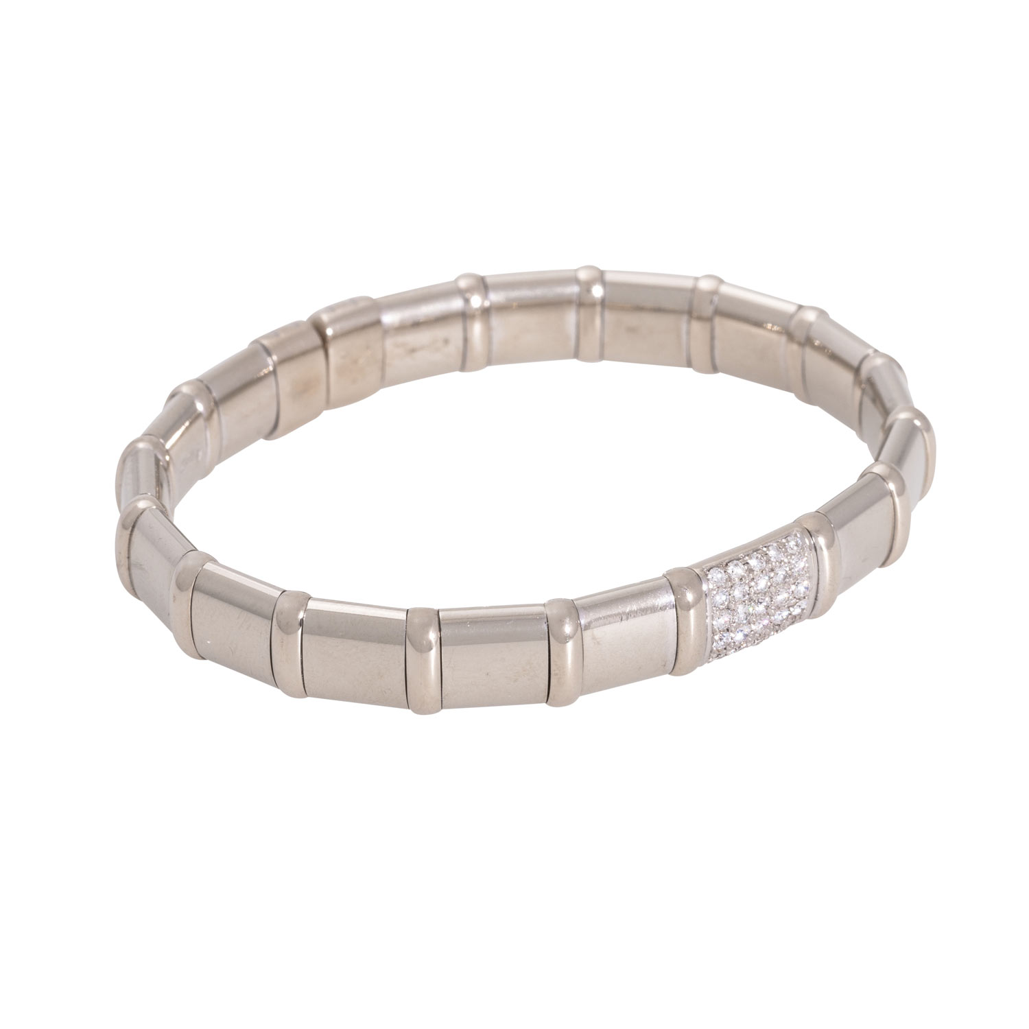 WEMPE bracelet with 25 brilliant-cut diamonds totalling ca. 0.40 ct, ca. FW (F-G)/VVS, 18K white gold, 40 g, inner circumference: ca. 16 cm, W: ca. 0.8 cm, end of the 20th century, minimal signs of wear, with hallmark 'WEMPE' and ID-No. '2597'.