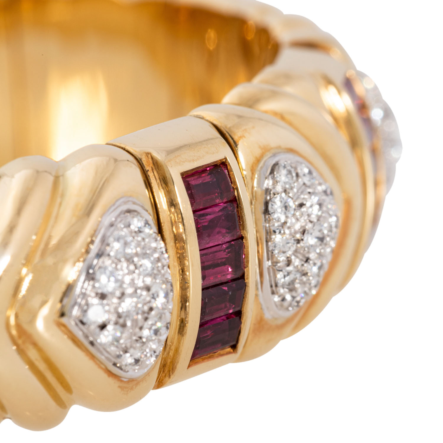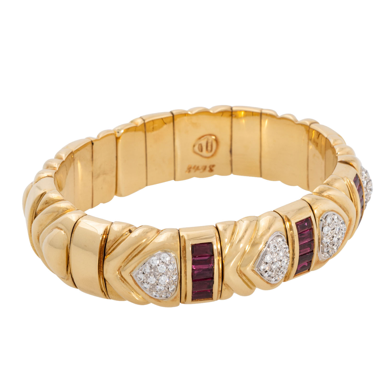 WEMPE bangle with rubies totalling 2.18 ct and brilliant-cut diamonds totalling 0.74 ct, RW (G)/IF, 18K YG, 67.7 gr (inkl. steel spring), inner circumference 16 cm, 1990s, minor signs of wear, incl. Wempe certificate.