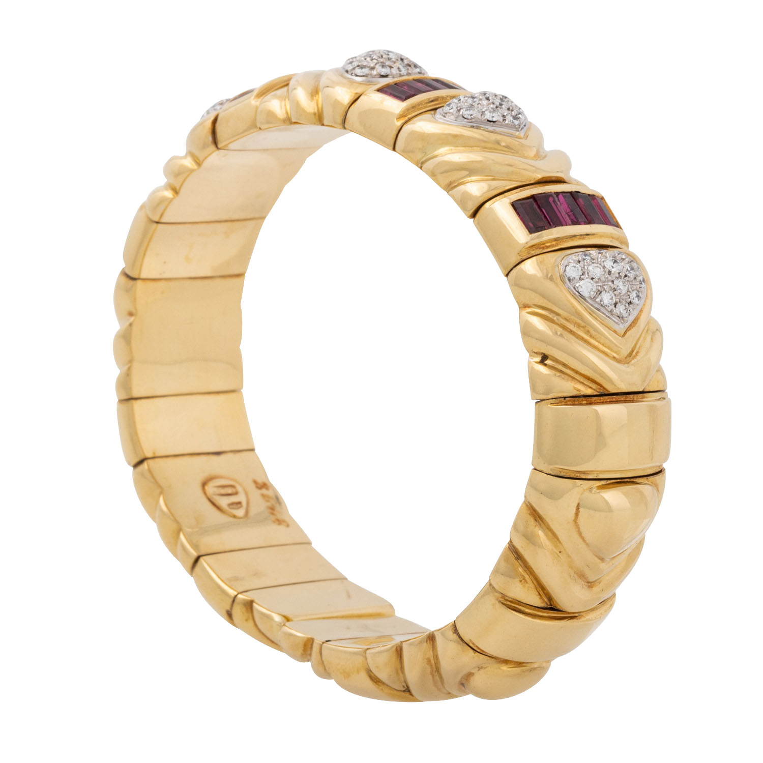 Bangle with 2 heart-cut rubies,
