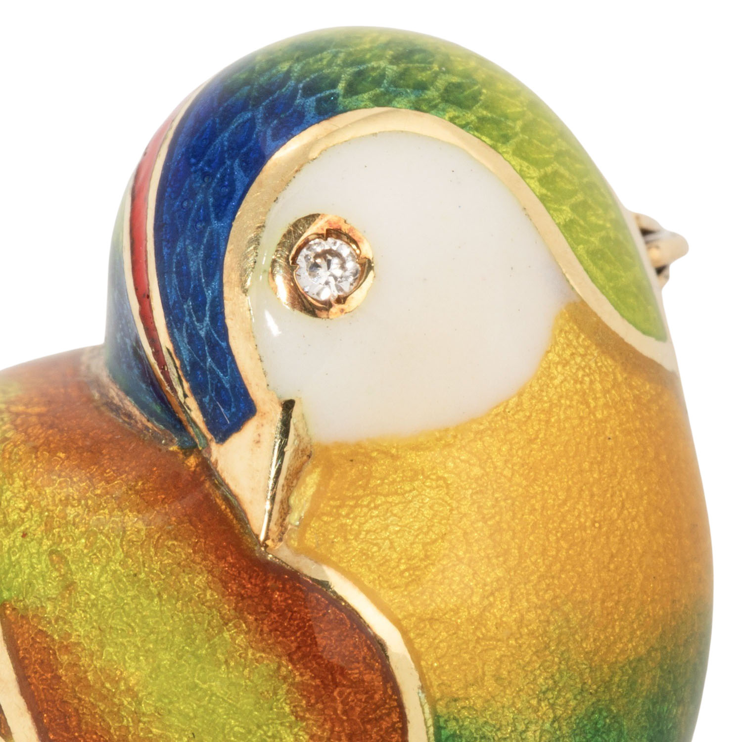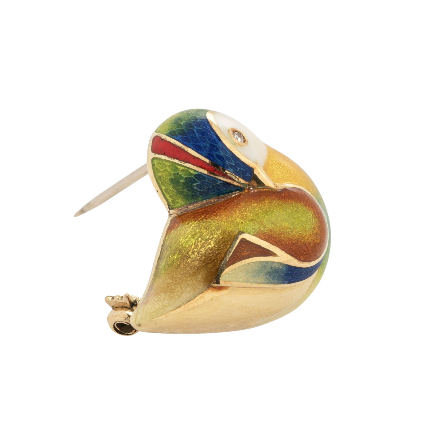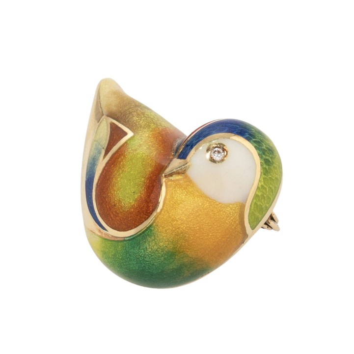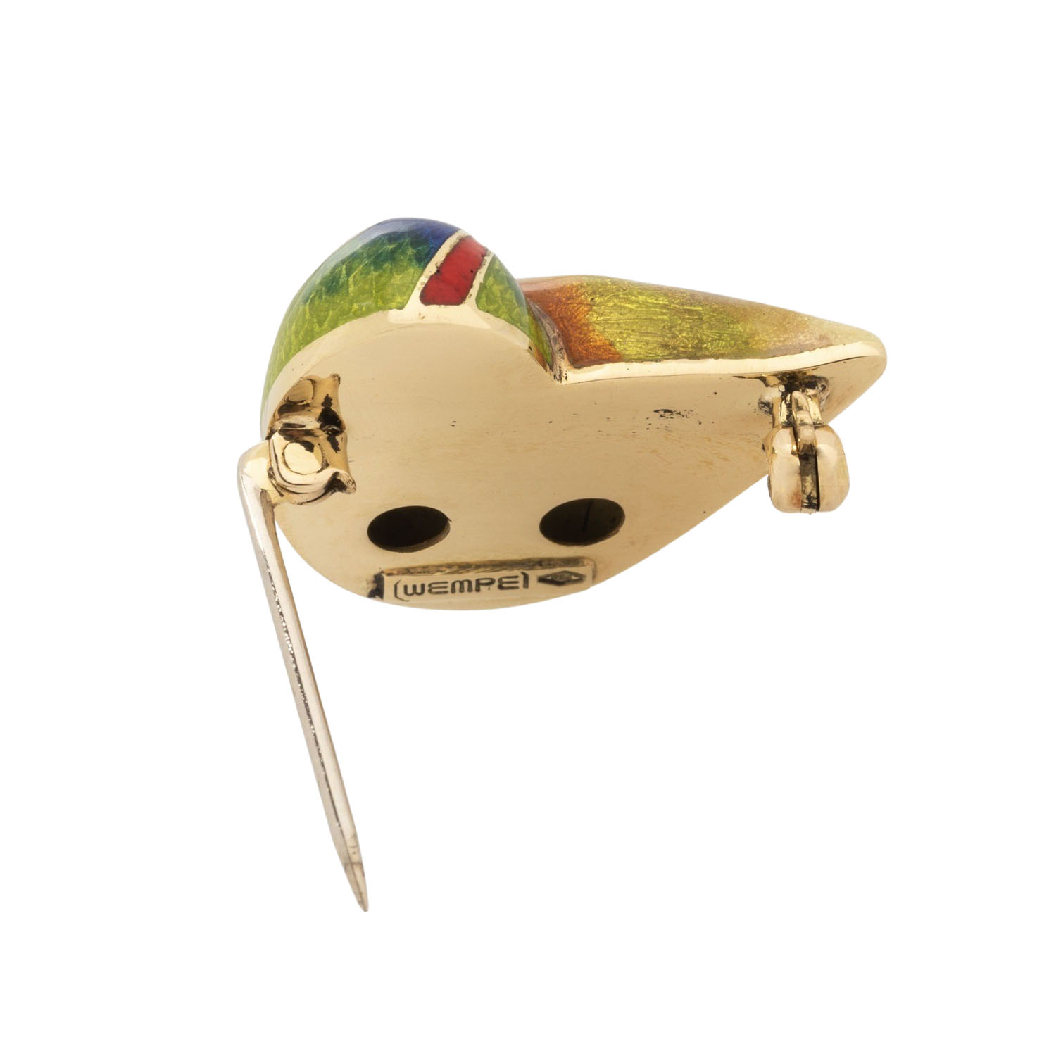 WEMPE brooch 'Little Bird' with brilliant-cut diamond and cold enamel, 18K yellow gold, 7.4 g, 22x18x9 mm, 20th/21st century, very good condition, marked 'WEMPE'.
