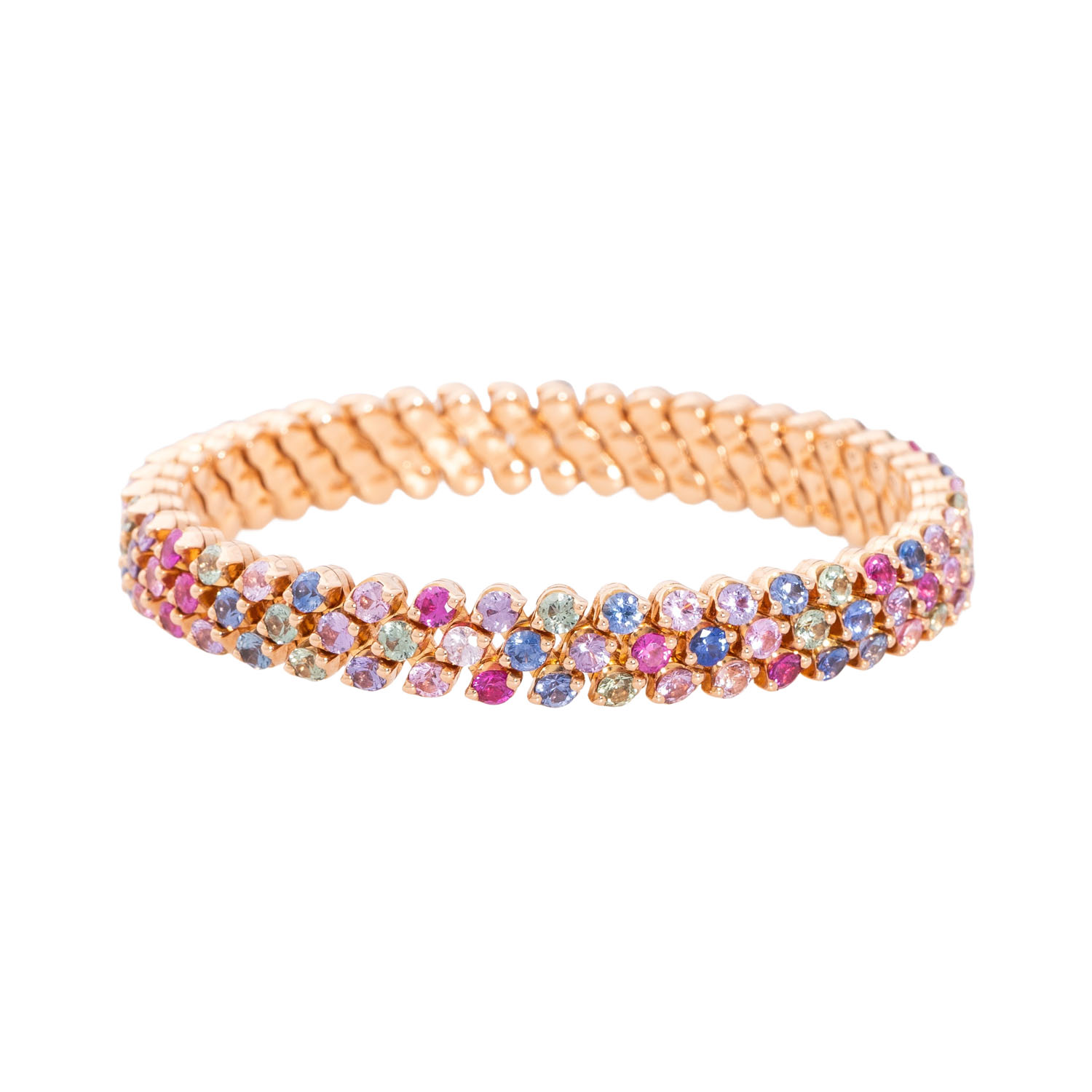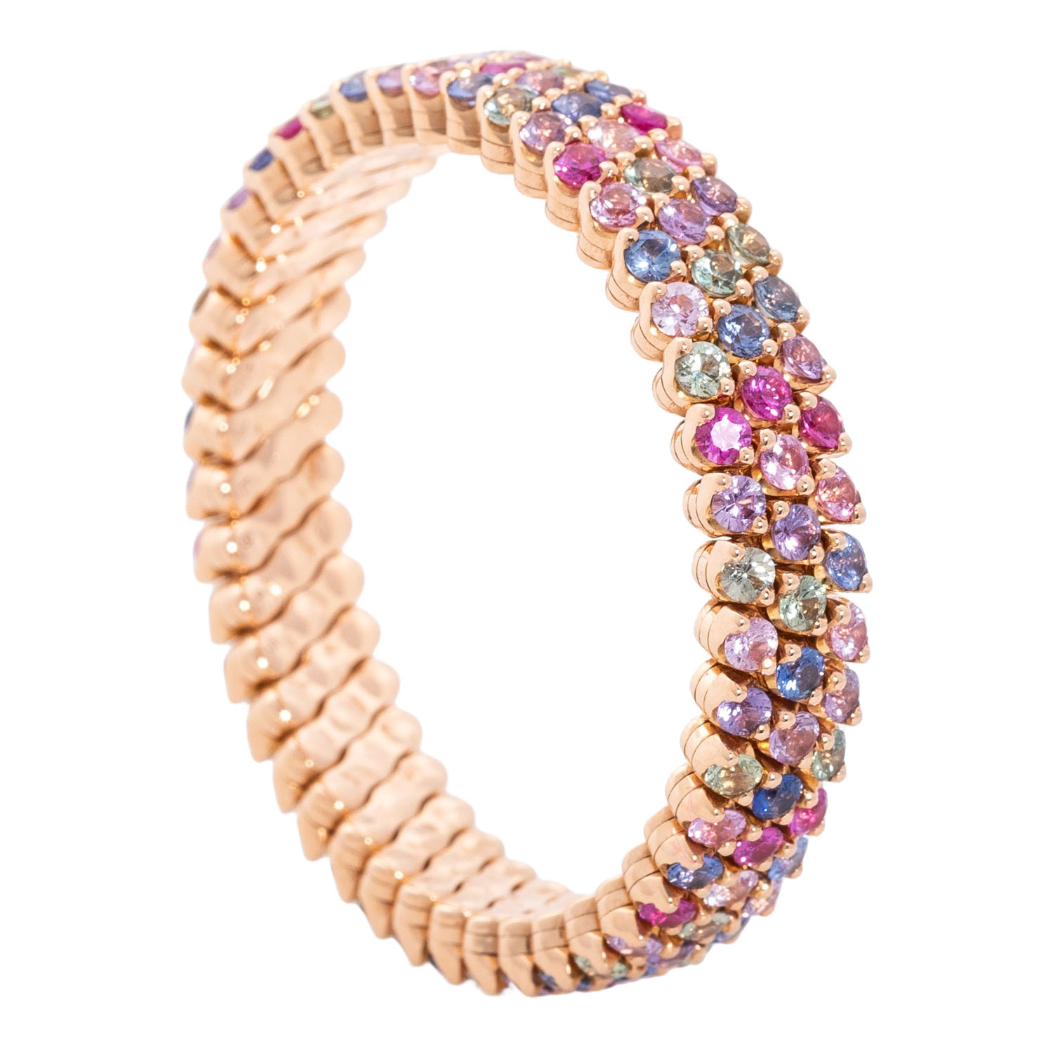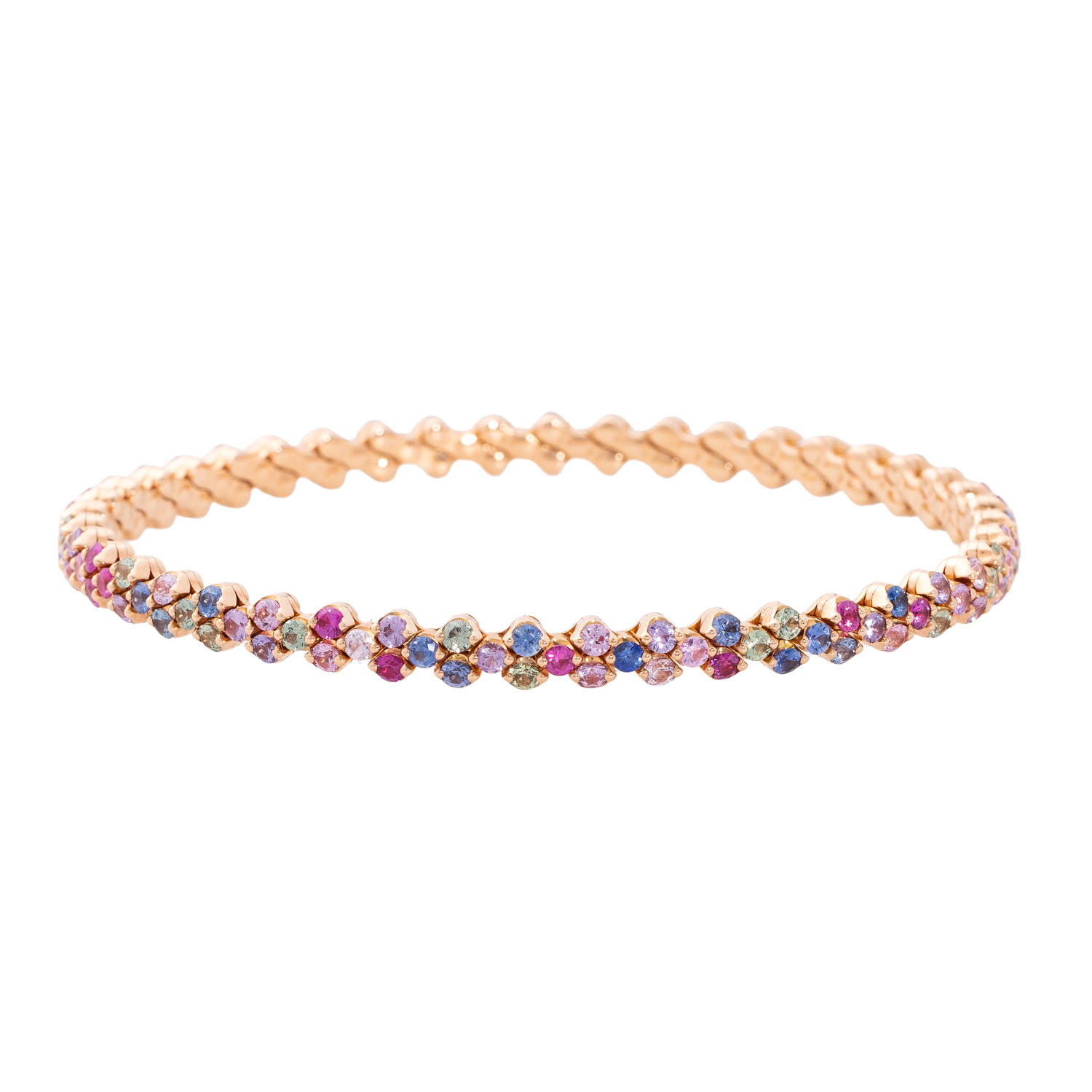 WEMPE ‘Happy Multisize SERAFINO CONSOLI’ bangle with multicolour sapphires totalling ca. 10.0 ct, NP: 35,900€ (2025), RSG 18K, 34.6 g, Happy multisize bangle with patented size adjustment technique, 21st century, minor signs of wear, numbered ‘L845’.