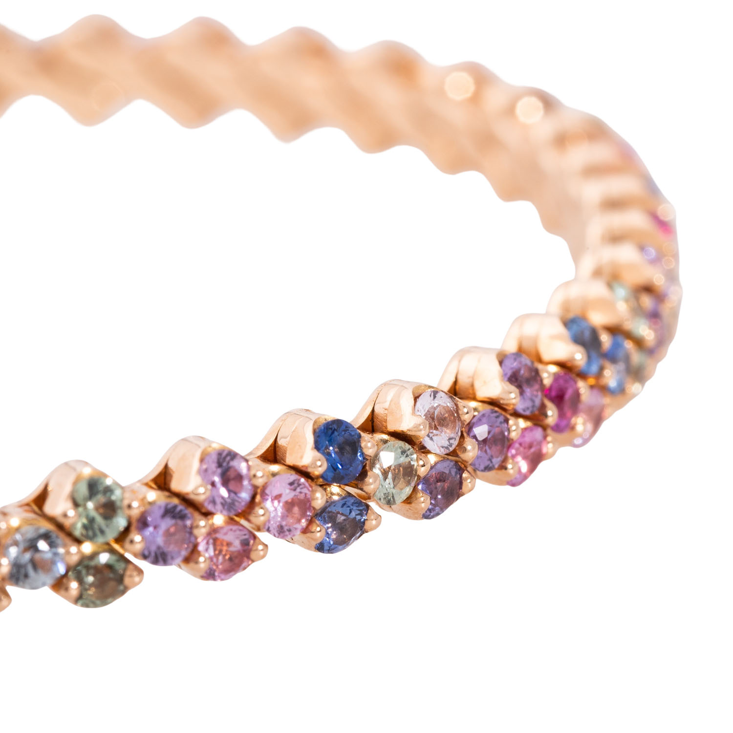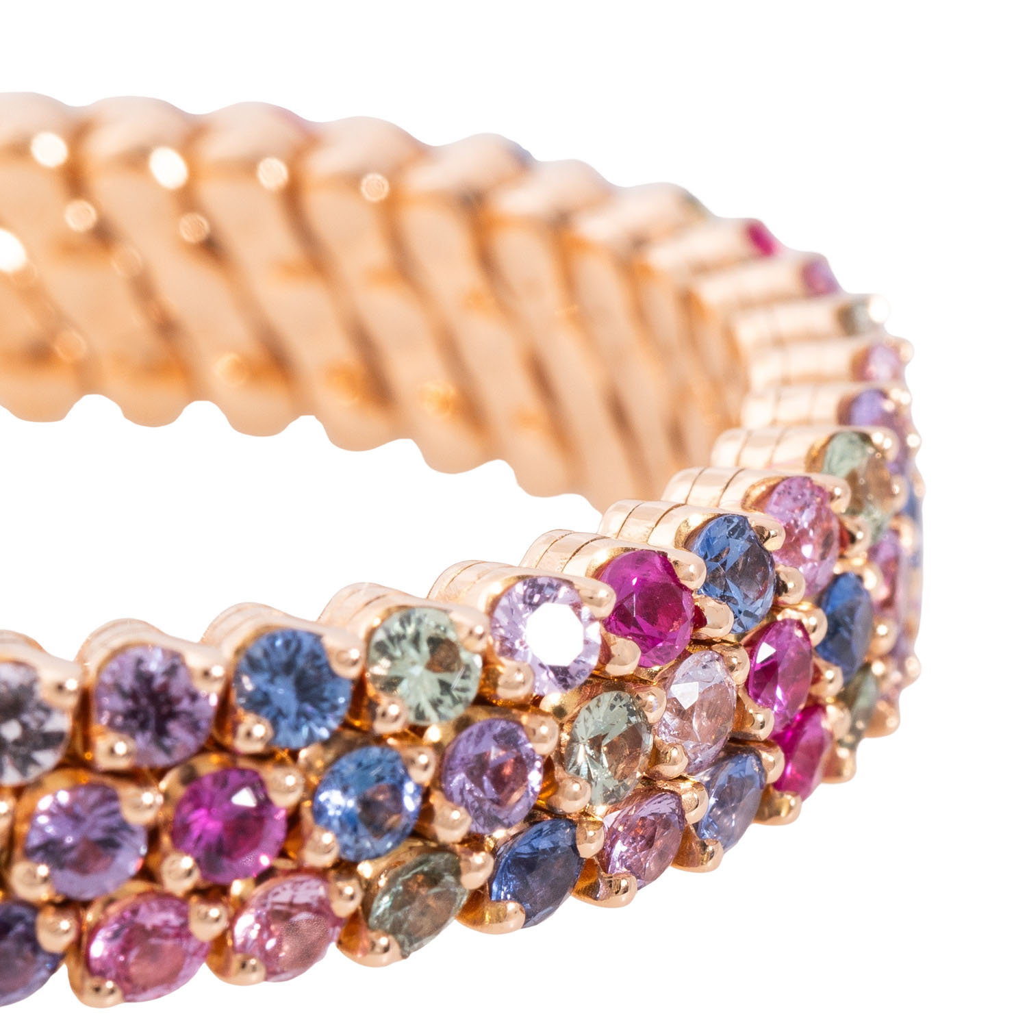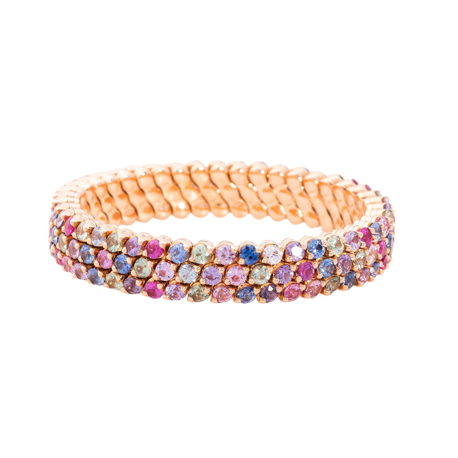 WEMPE ‘Happy Multisize SERAFINO CONSOLI’ bangle with multicolour sapphires totalling ca. 10.0 ct, NP: 35,900€ (2025), RSG 18K, 34.6 g, Happy multisize bangle with patented size adjustment technique, 21st century, minor signs of wear, numbered ‘L845’.