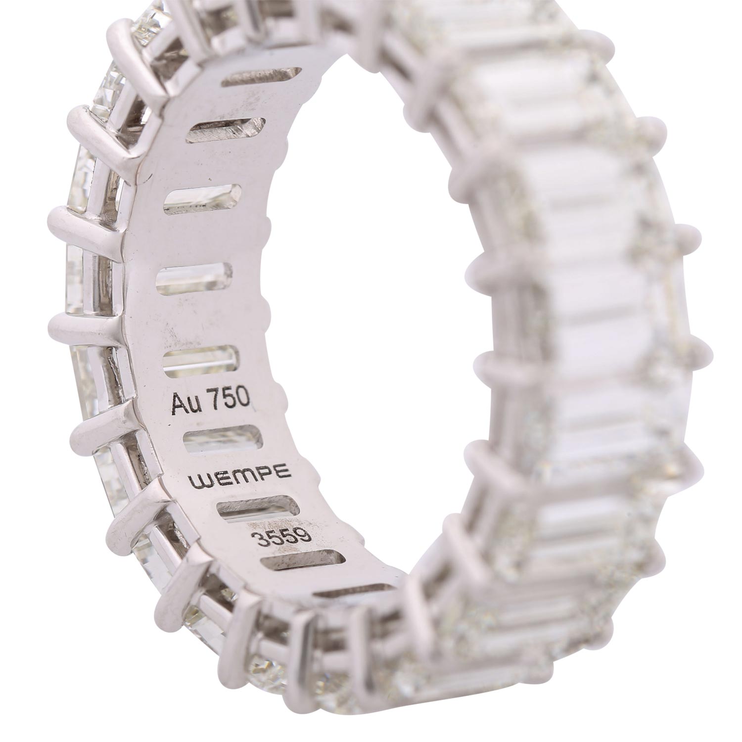 WEMPE Eternity Ring with 21 baguette-cut diamonds totalling 11.06 ct, WHITE-STW (H-J)/VVS, WG 18K, 7.8 g, ring size 52.5 21st century, original price 96,275 €, good condition, WEMPE certificate from 12/2016 enclosed.