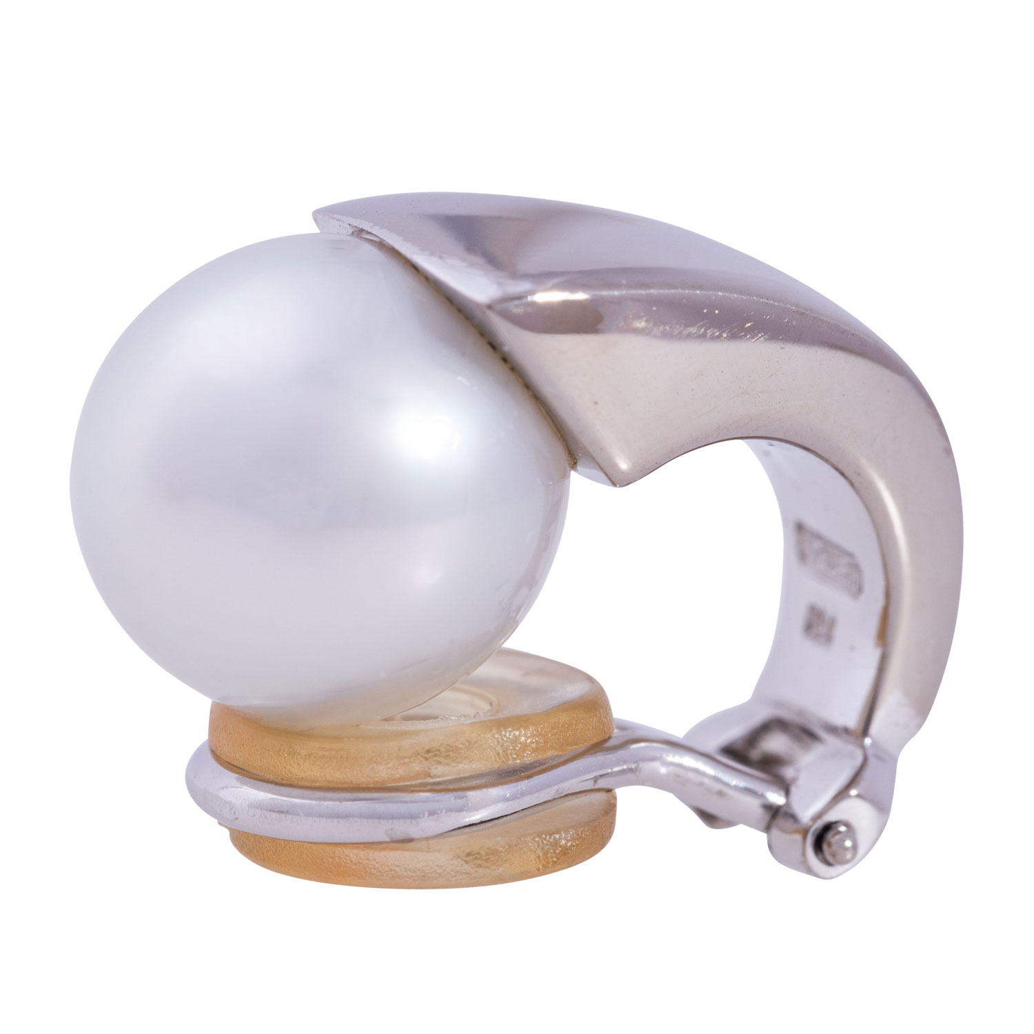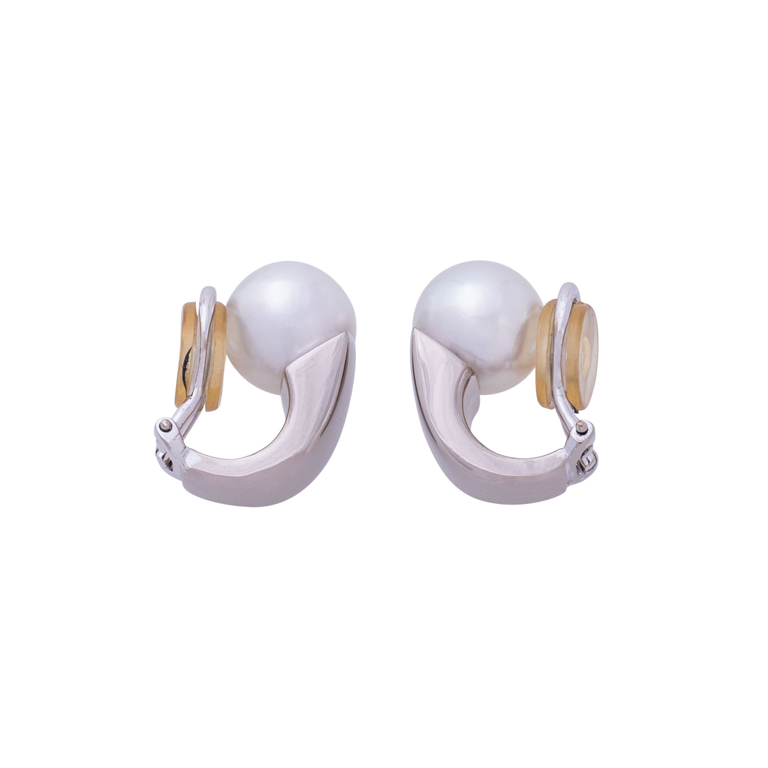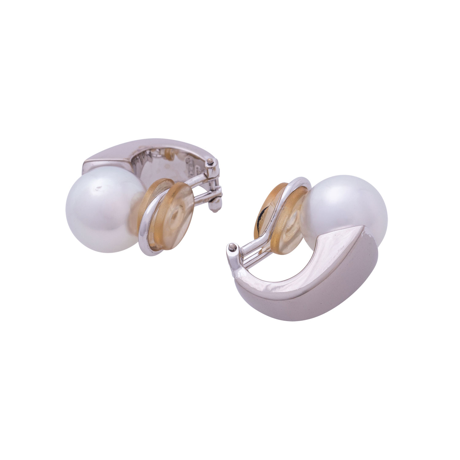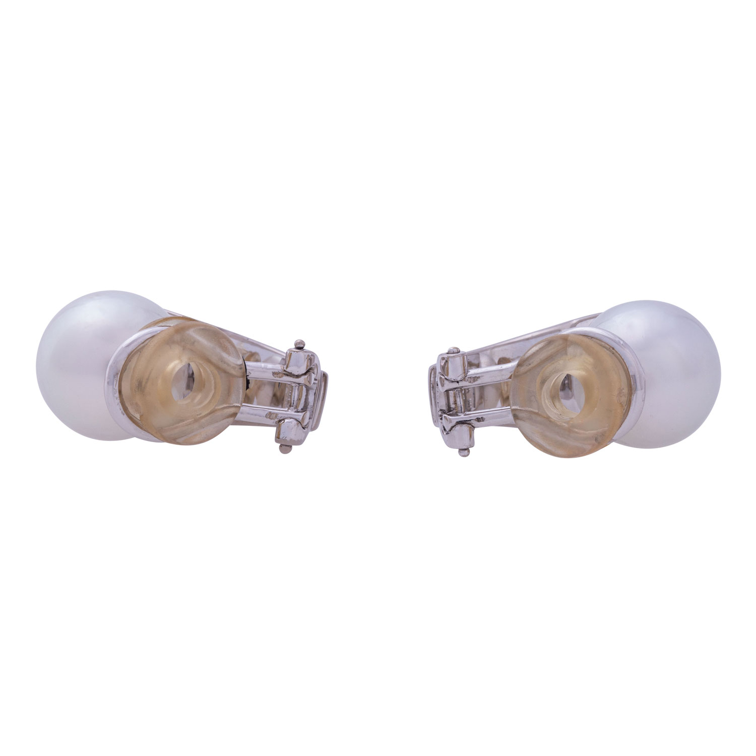 WEMPE pair of ear clips with South Sea cultured pearls ca. 10 mm, PP: 2,750 € (2004), 18K WG, 14.7 gr, incl. Wempe sales receipt, warranty card and case.