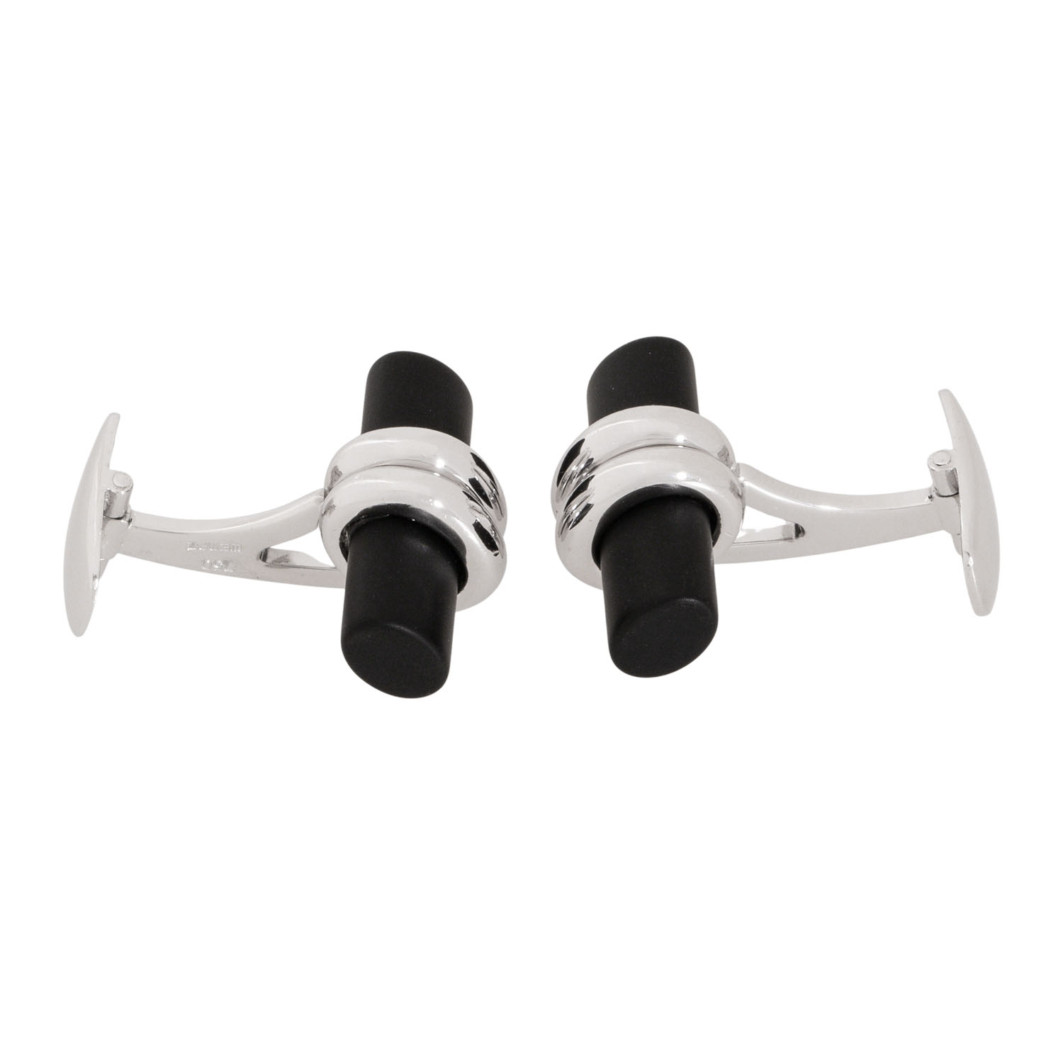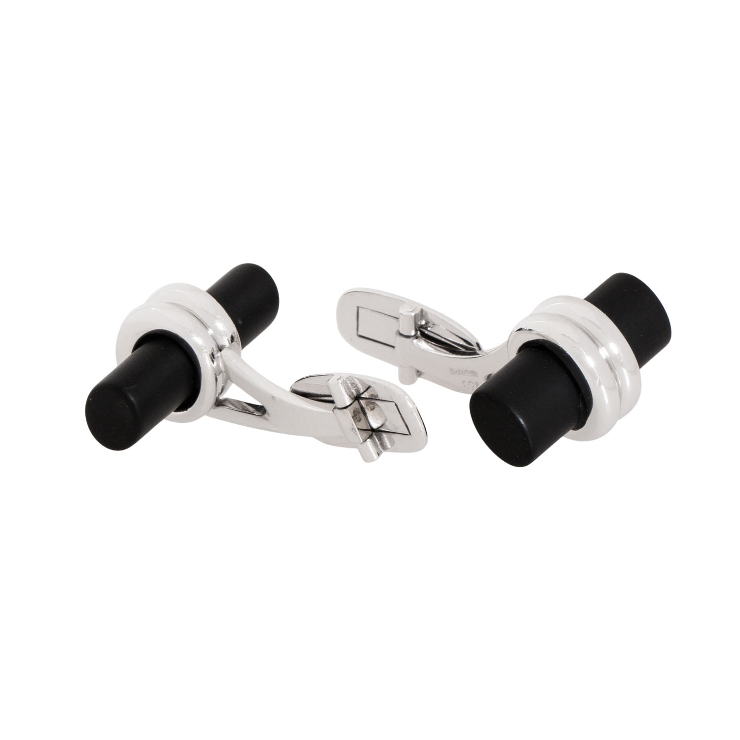 WEMPE Pair of cuff links with satinated onyx, 18K white gold, 18.0 g, L x W: 20 x 12 mm, 20th/21st century, minor signs of wear.