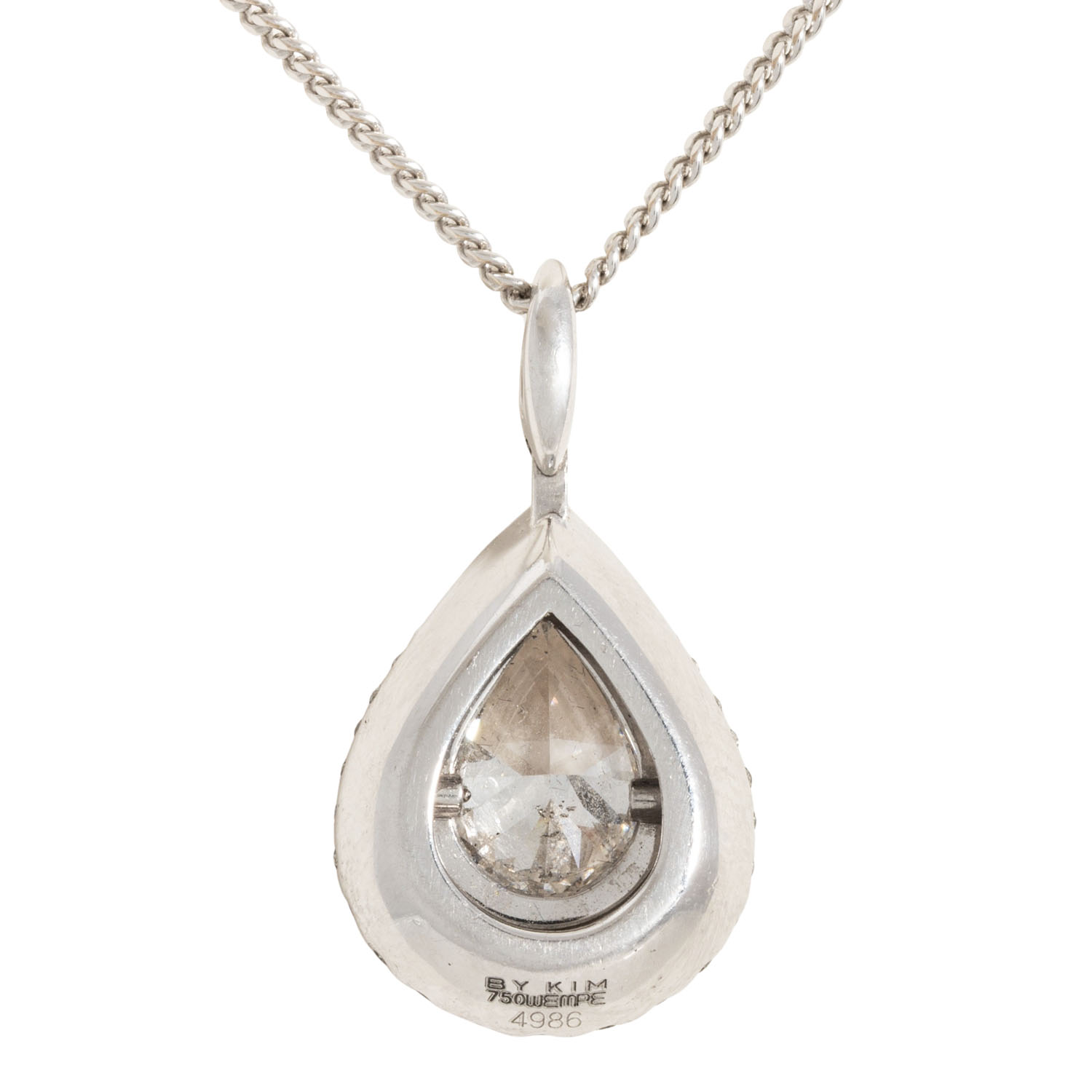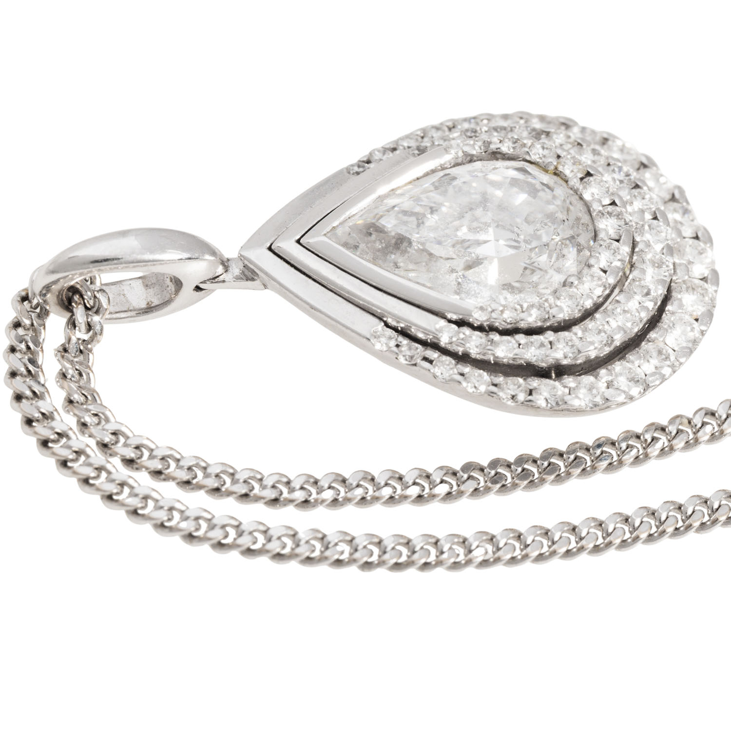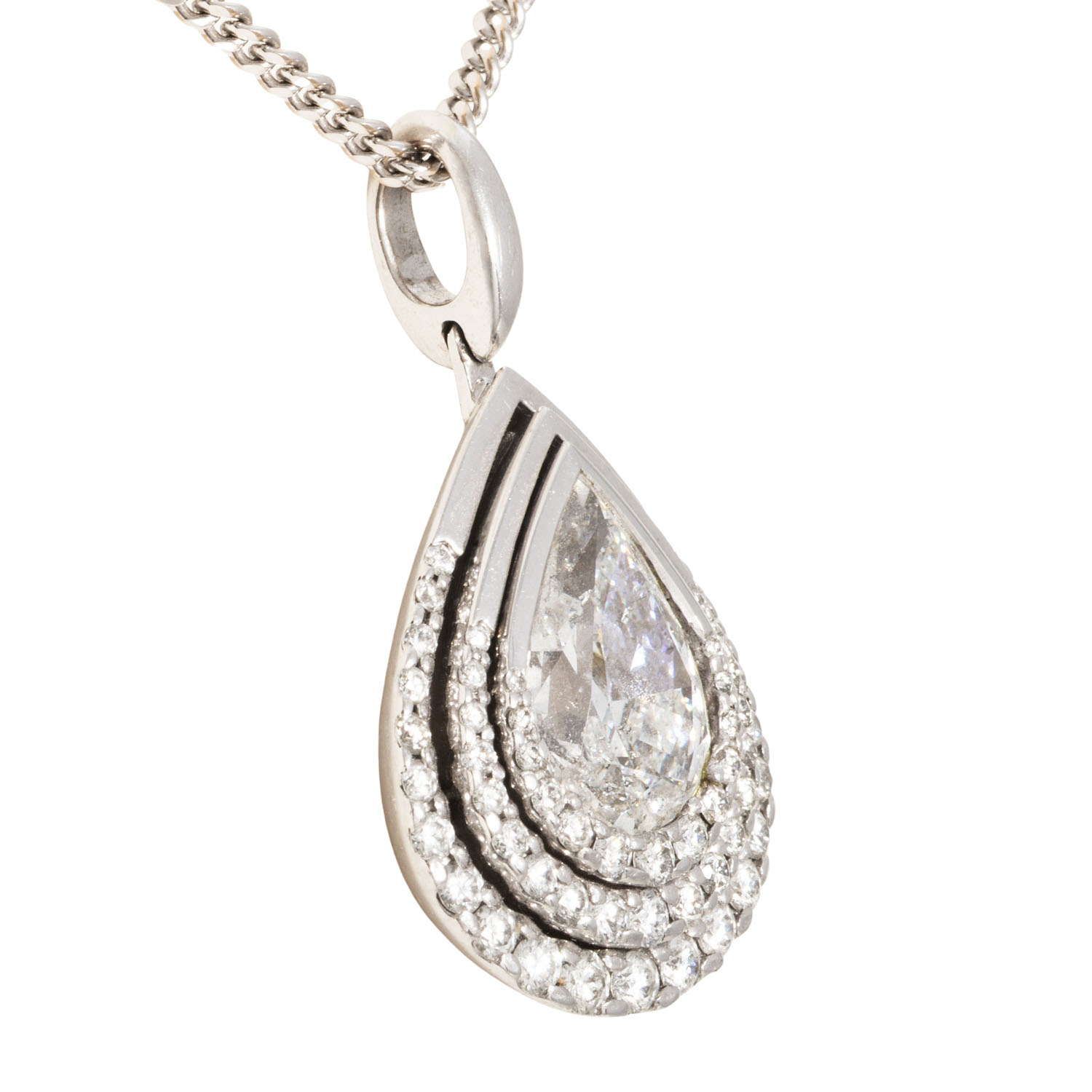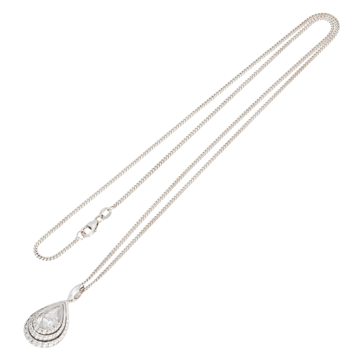 WEMPE pendant with pear shape diamond ca. 2,55 ct. ca. EW(D)/SI2, 55 brilliant-cut diamonds, totall. ca. 0.61 ct, RW(G)/SI, curb link chain L: ca. 60 cm, 18K WG, 14.0 g, OP: 51.775 € (2016), 20th century, minor signs of wear, original case and proof of purchase and HRD cert. no. 11008703001