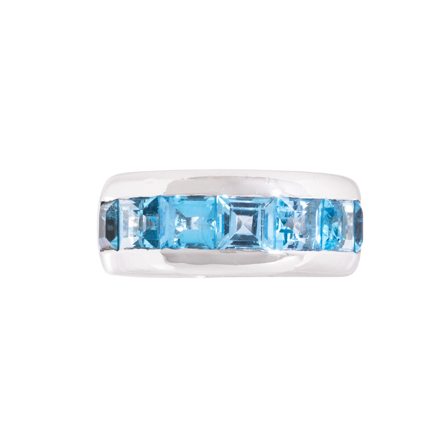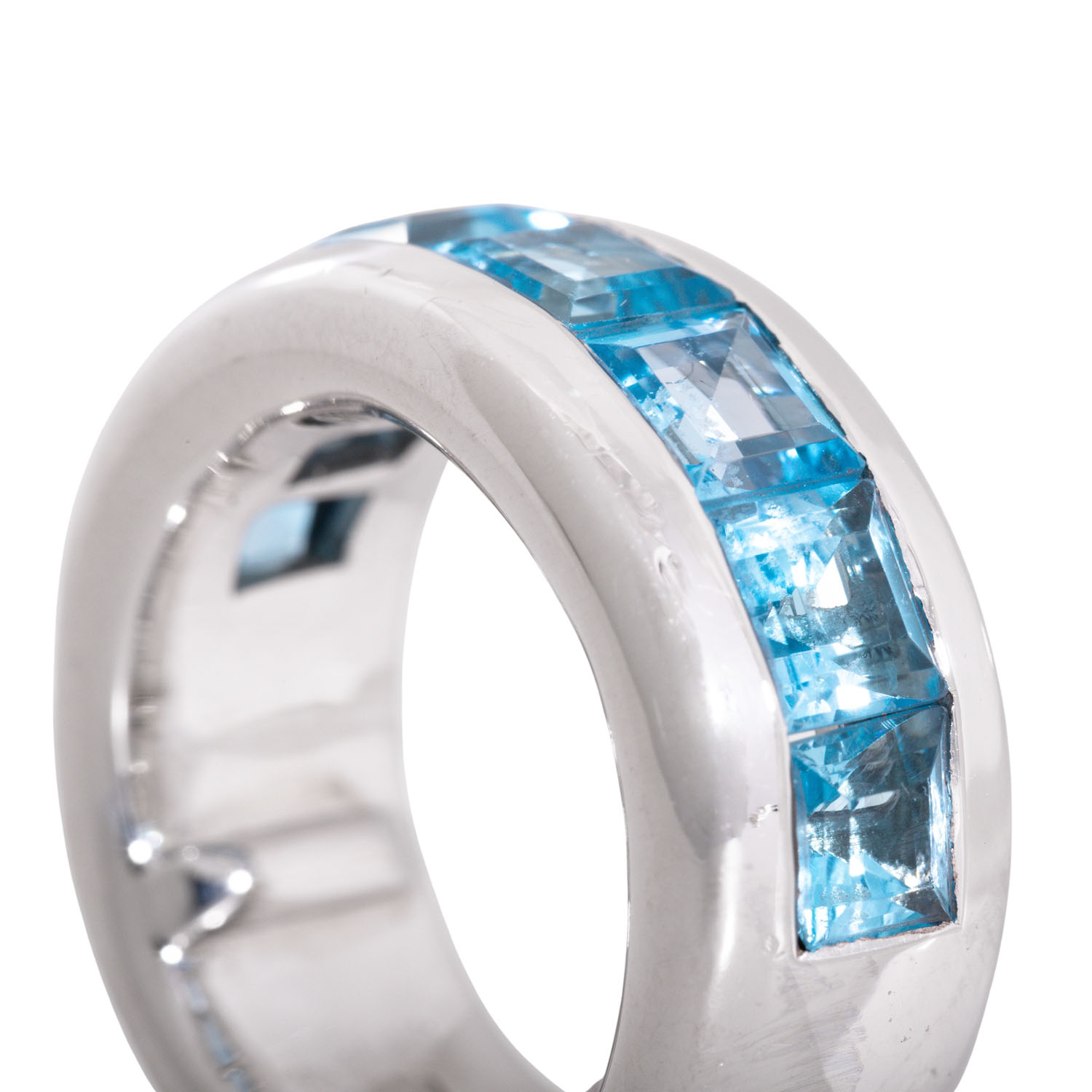 WEMPE Ring with 7 topaz caré´s, ca. 5 x 5 mm, 2 topaze chiped , 18K white gold, 22 g, ring size 54, 21. Jh., signs of wear, accessory: certificat, original box.