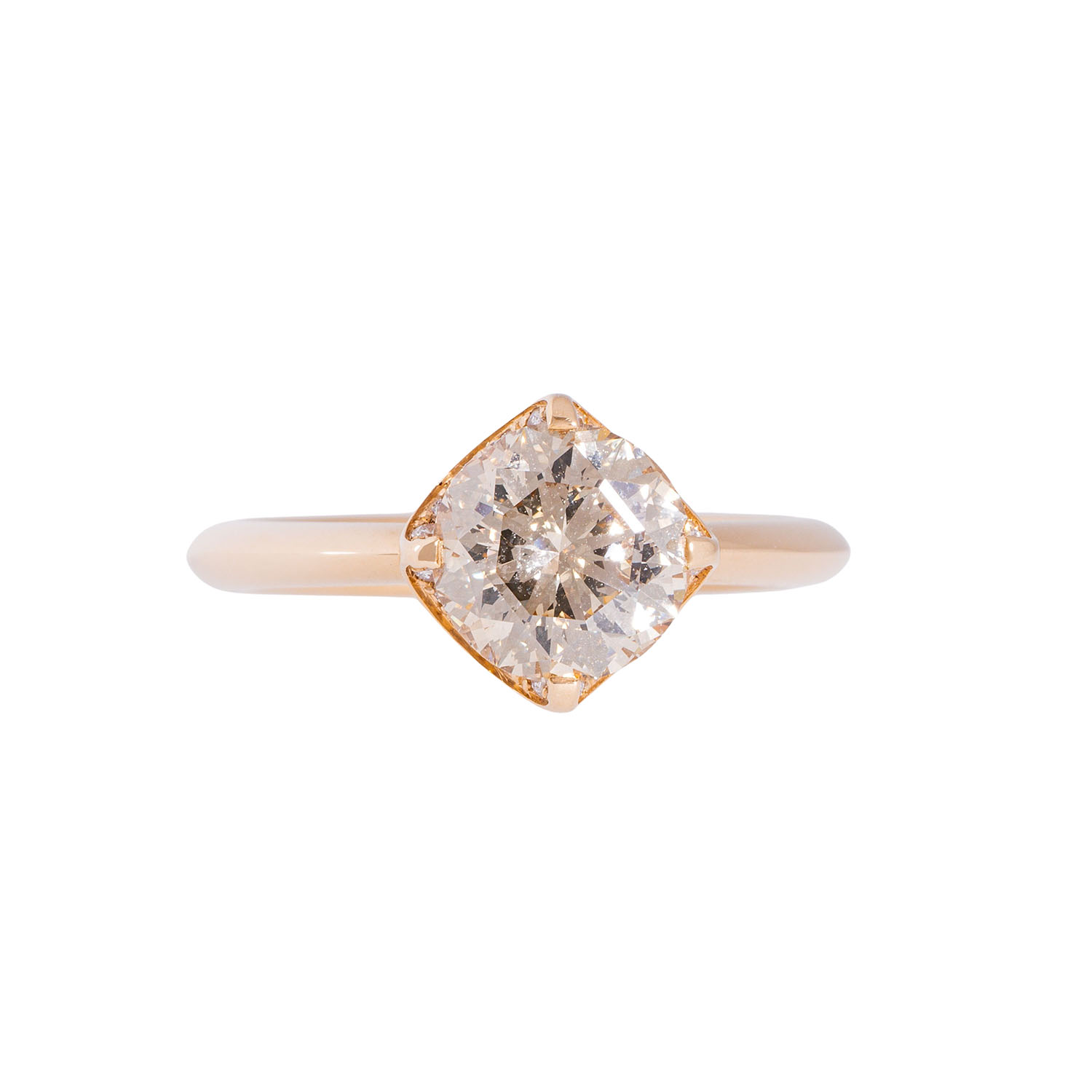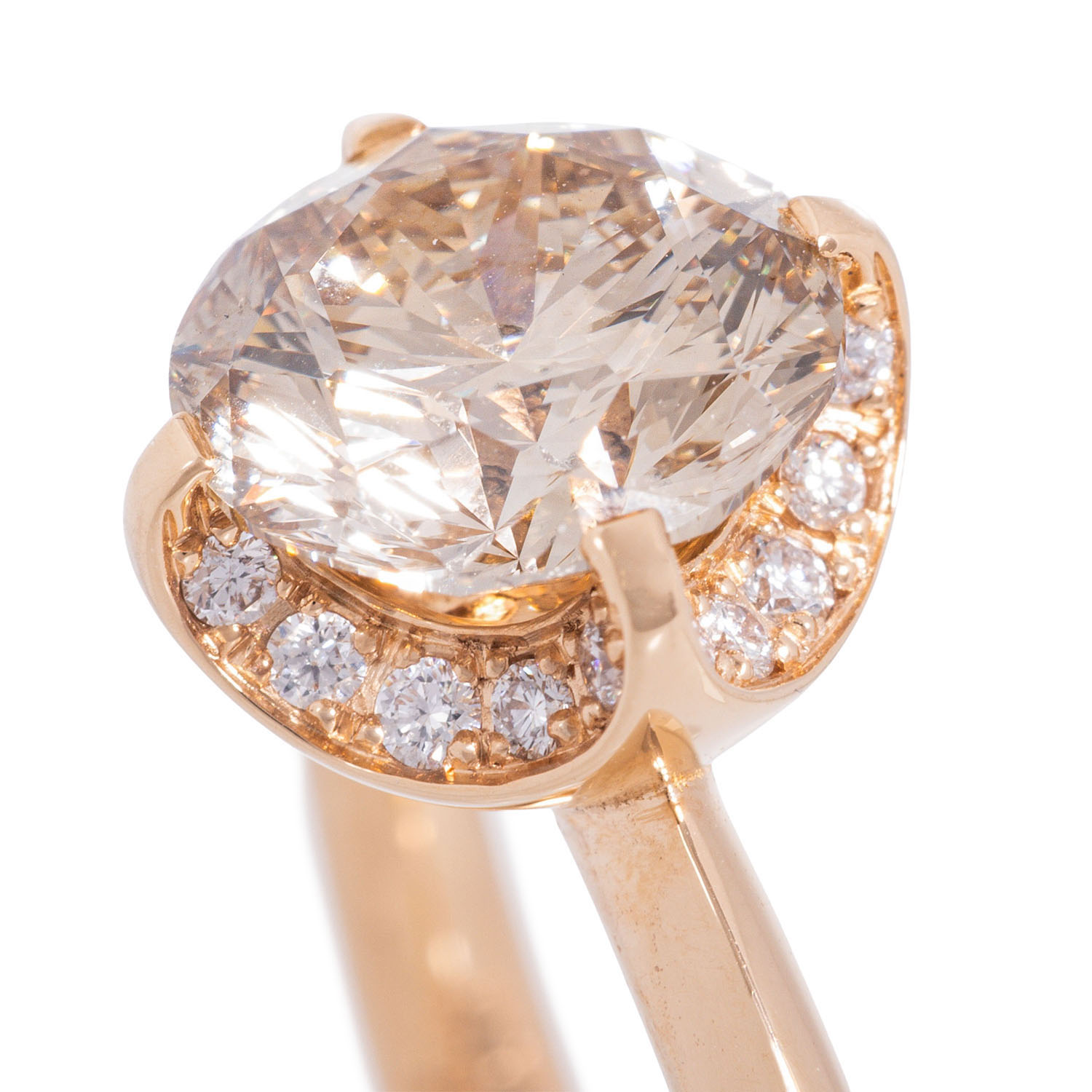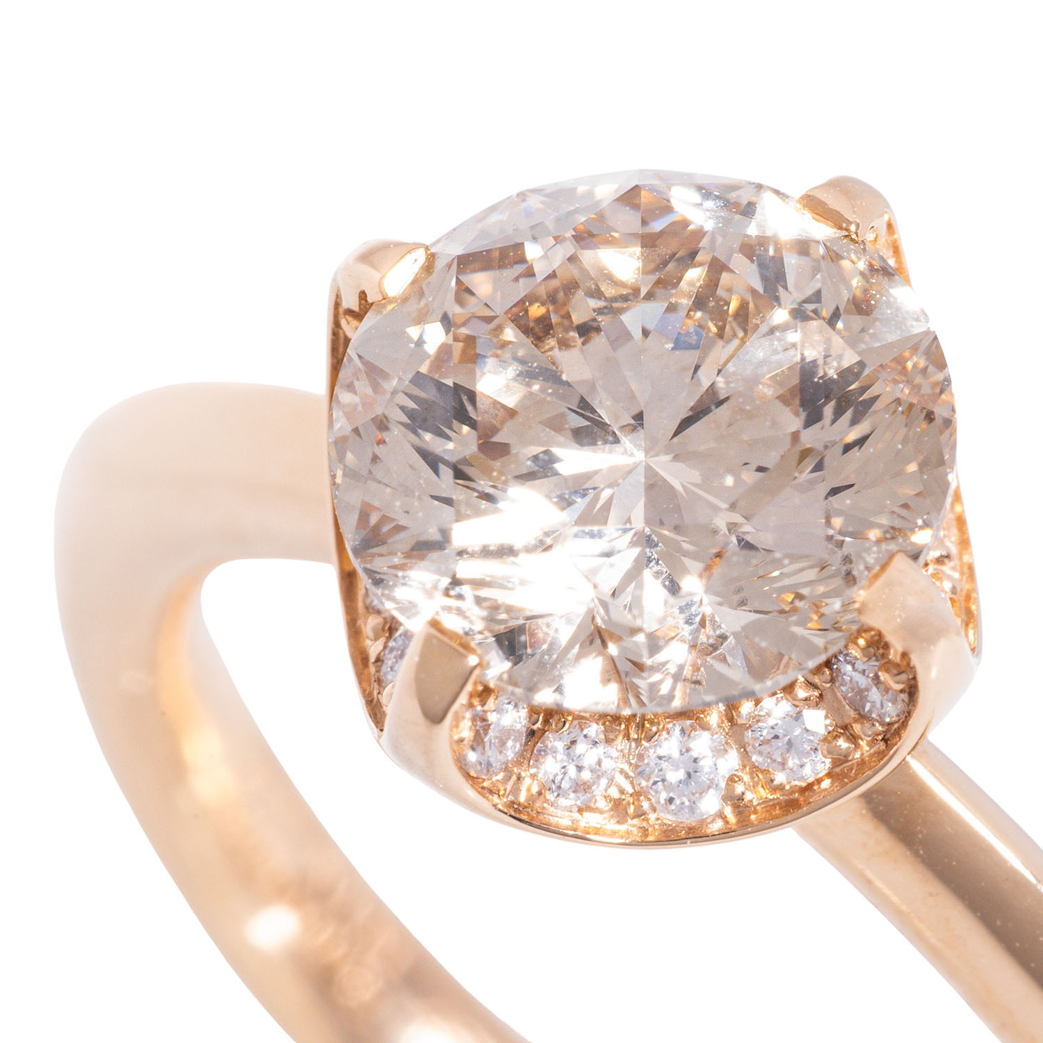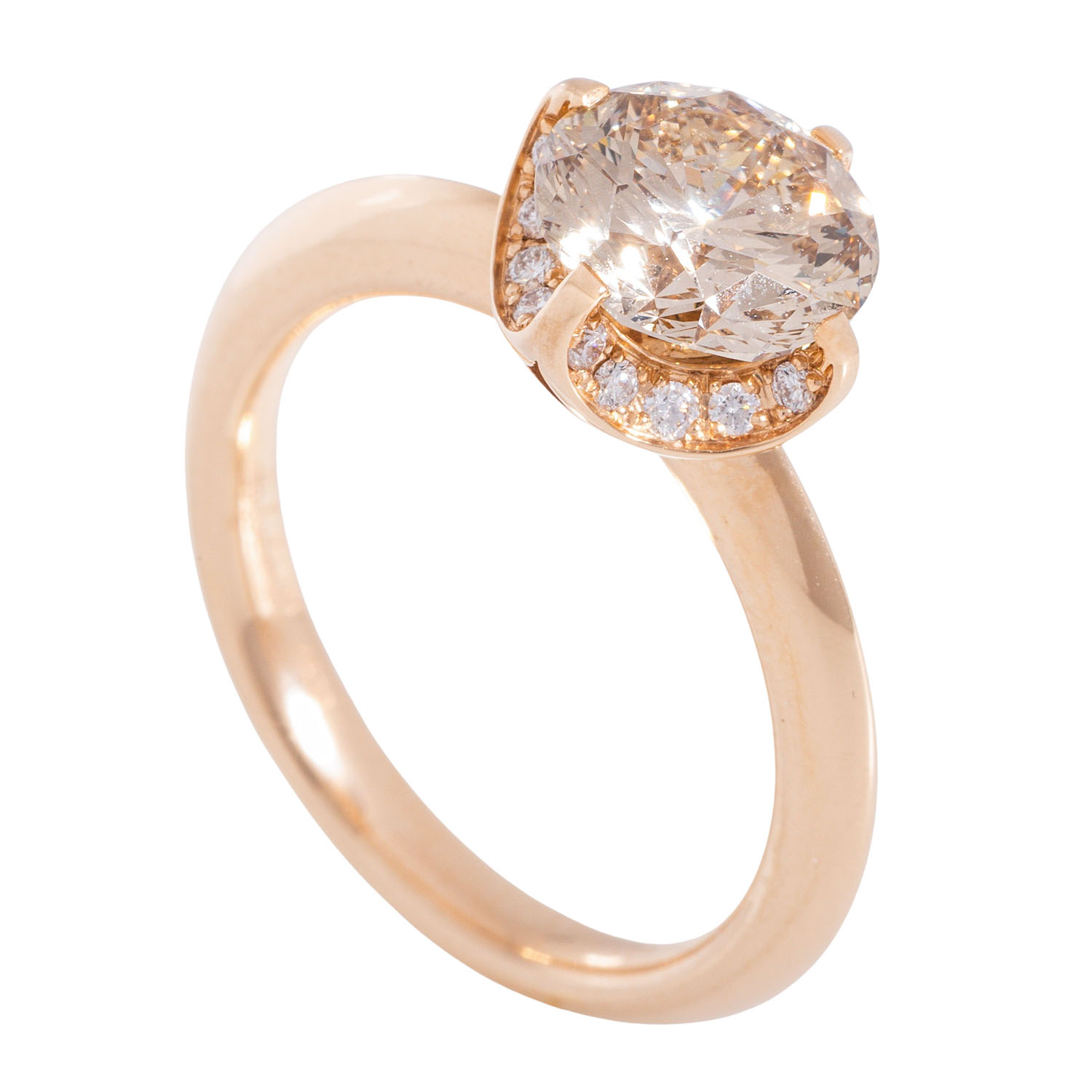 WEMPE Ring with brilliant-cut diamond around 2,2 ct, cinnamon /VS1, with additional brillant cut diamonds, ca. 0.17 ct, RW (G)/VS, GG 18K, 6.4 g, ring size 54, around 2000, minor flaws, with maker's mark, case and box enclosed,