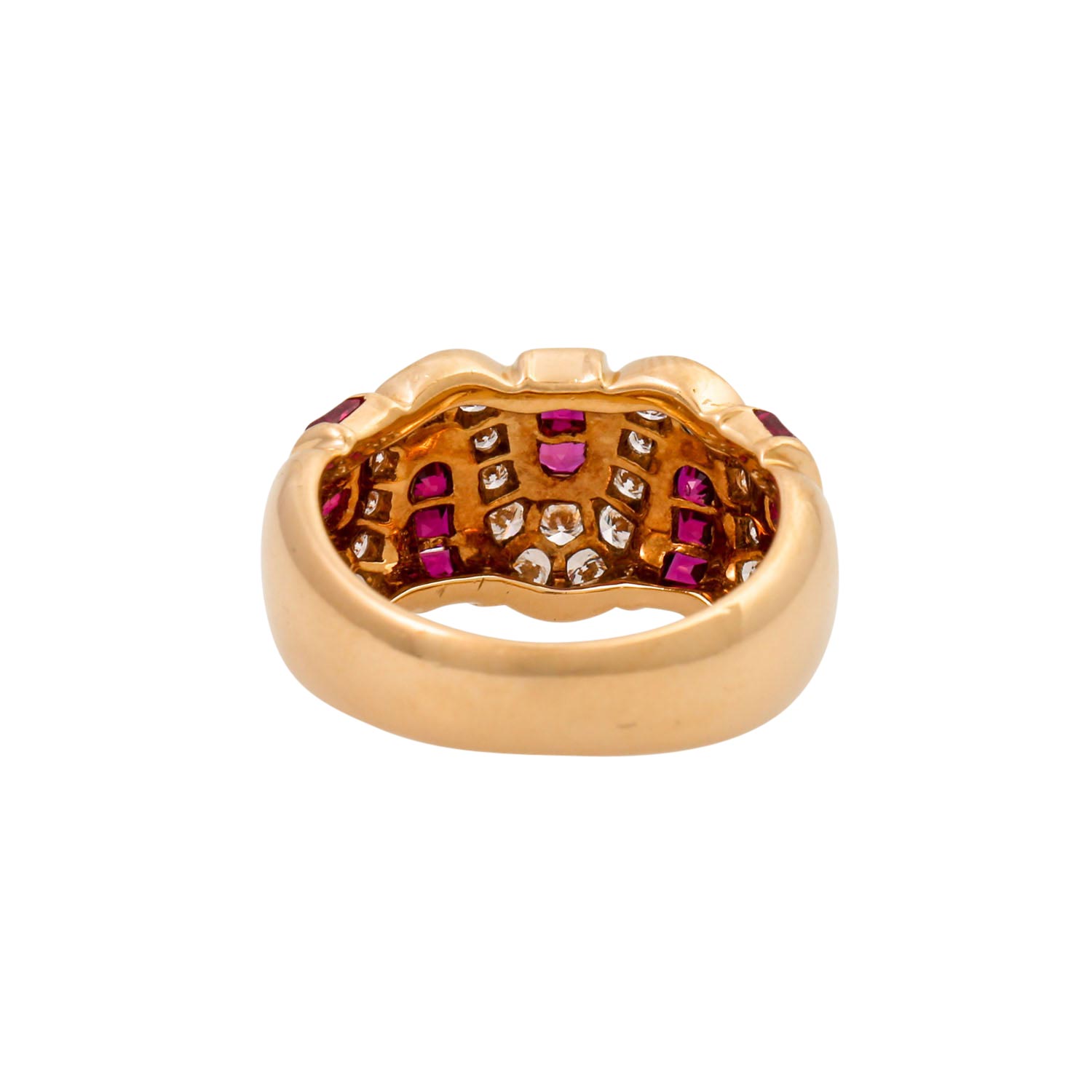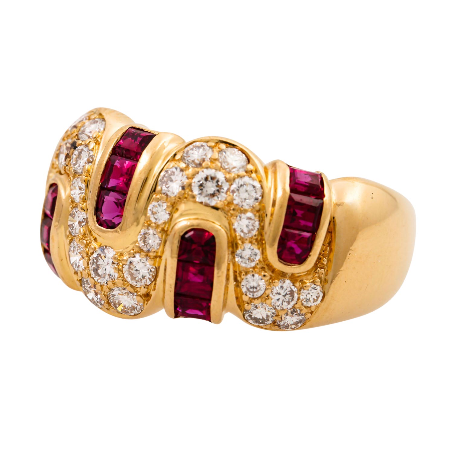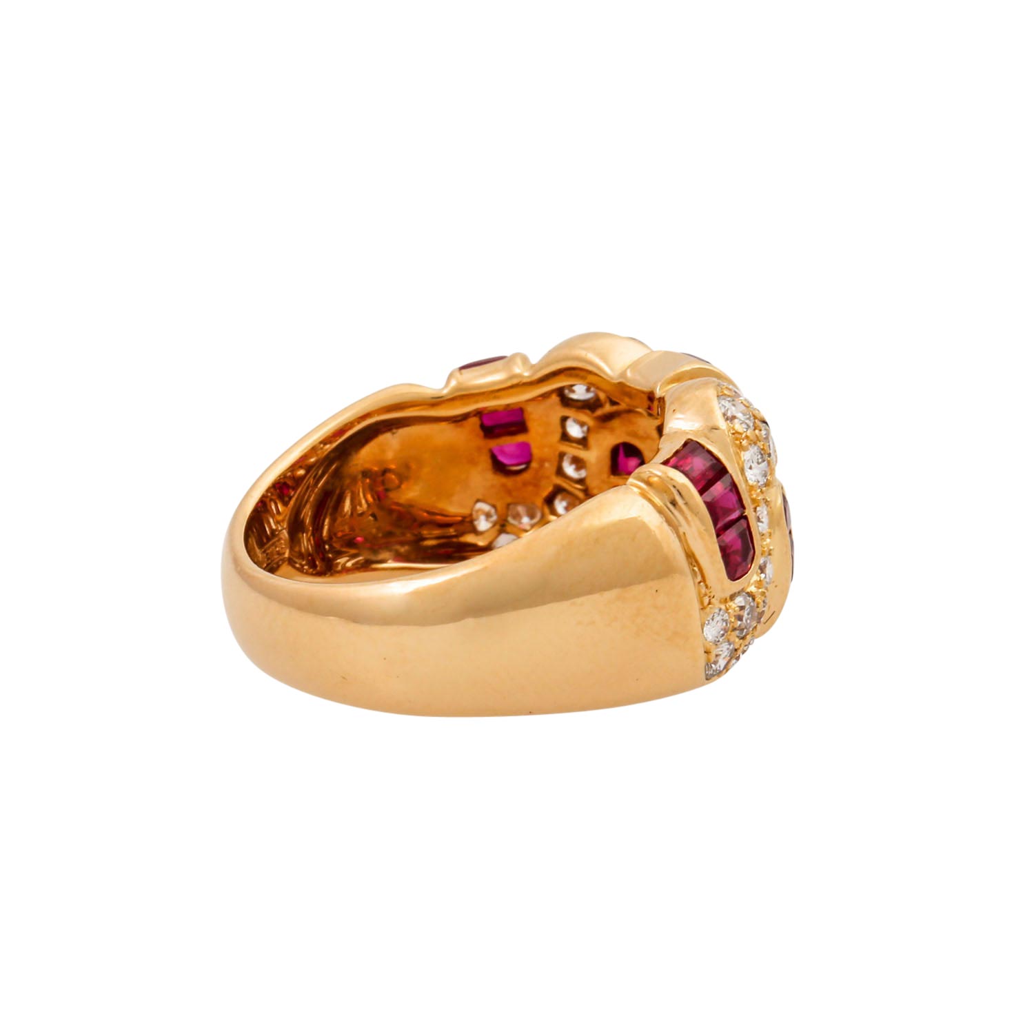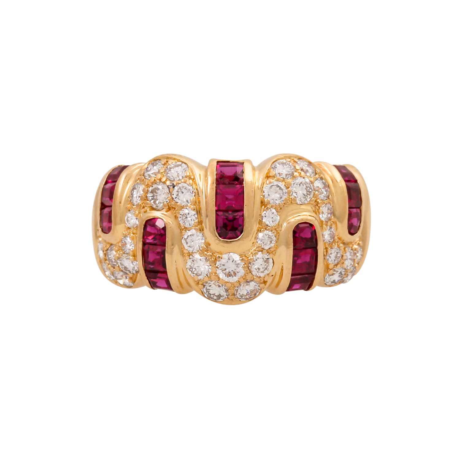 WEMPE ring with rubies totalling 1.32 ct and brilliant-cut diamonds totalling 0.81 ct, very good colour a. clarity, 18K YG, 8.8 gr, ring size 52, 199s, minor signs of wear, incl. Wempe certificate (1991).