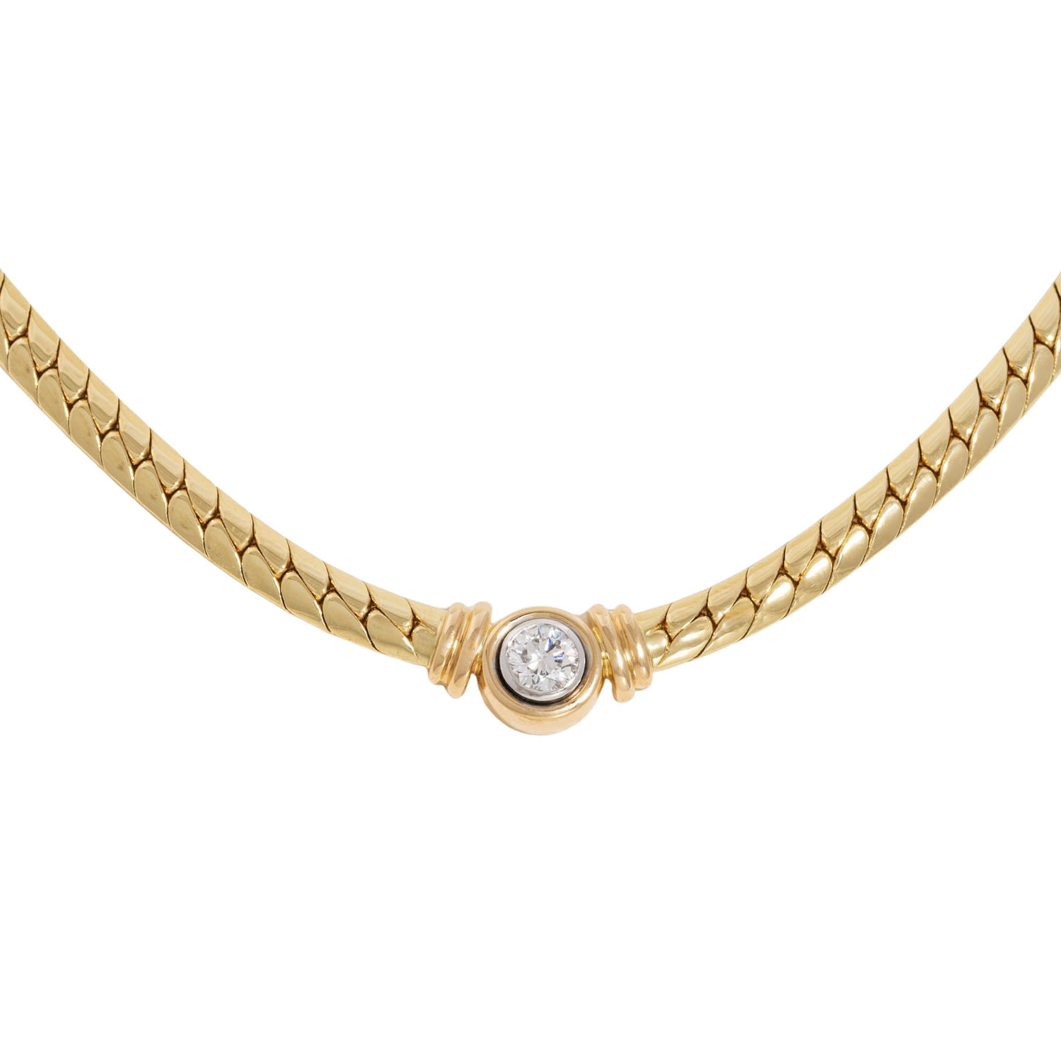 WEMPE solitaire necklace with brilliant-cut diamond ca. 0.31 ct (marked), ca. RW (F-G)/SI, 18K yellow and white gold, 32.7 g, L: 42 cm, late 20th century, good condition, marked 'W','1618', including case.