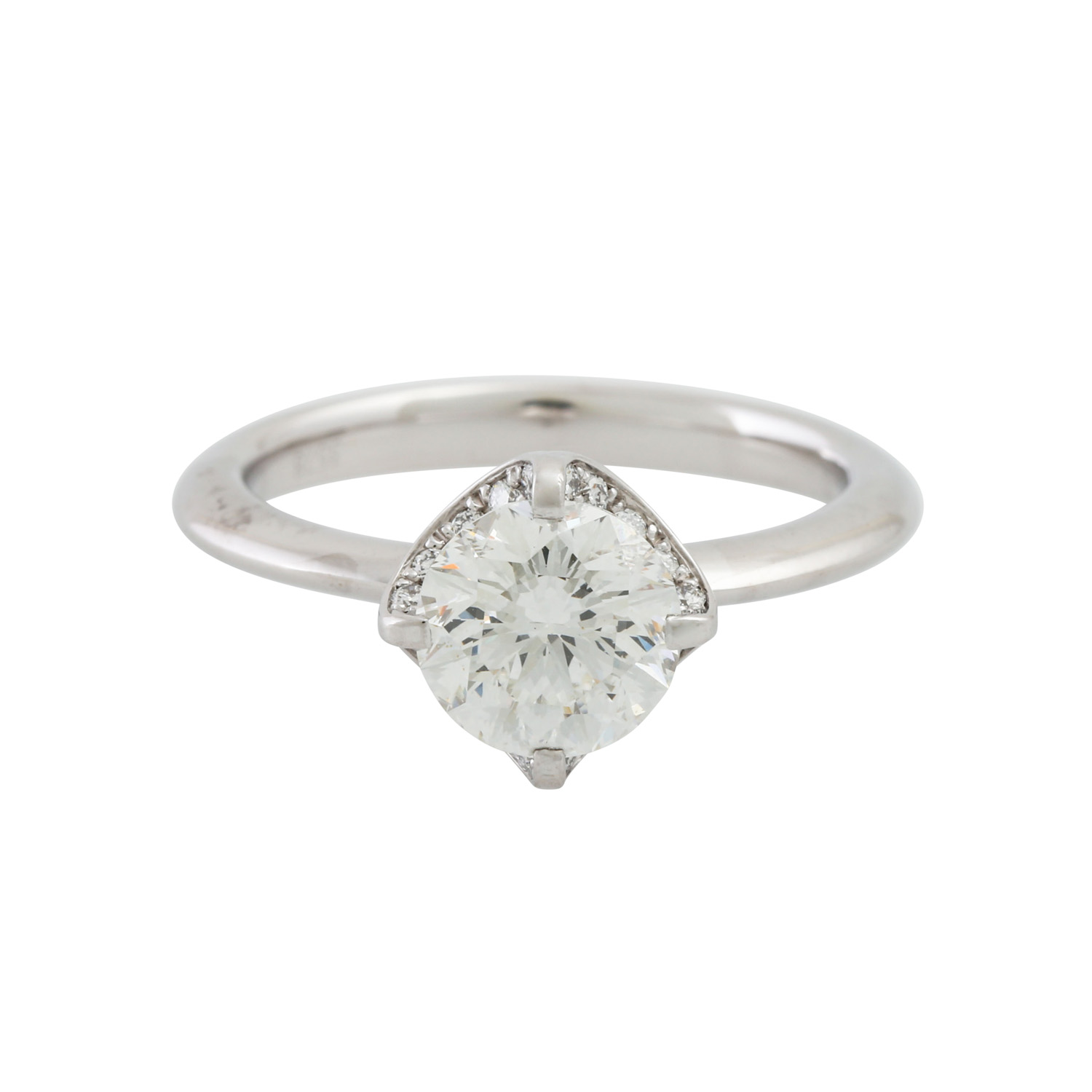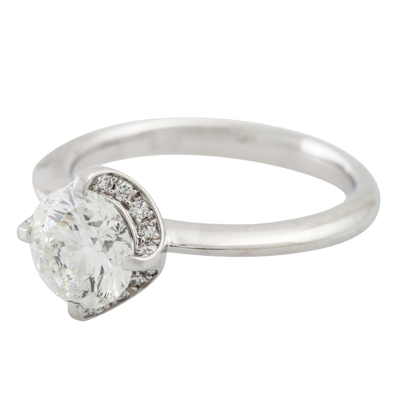 WEMPE ring 'Splendora' with brilliant-cut diamond ca. 1.61 ct, ca. RW(G)/VVS2, no fluorescence, 20 brilliant-cut diamonds totall. ca. 0.15 ct, RW(G)/VS, 18K WG, 5.5 g, ring size: 55, OP: 39.175 € (2016), 20th century, minimal signs of wear, HRD cert. no. 16023906008.