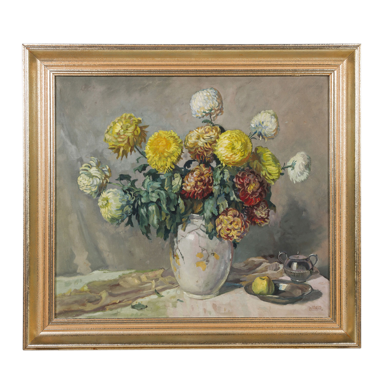 WINKLER, WILHELM (1882-1964), "Flower Still Life" Oil on canvas, signed, HxW: 80 x 90 cm. Framed. Canvas somewhat wavy.