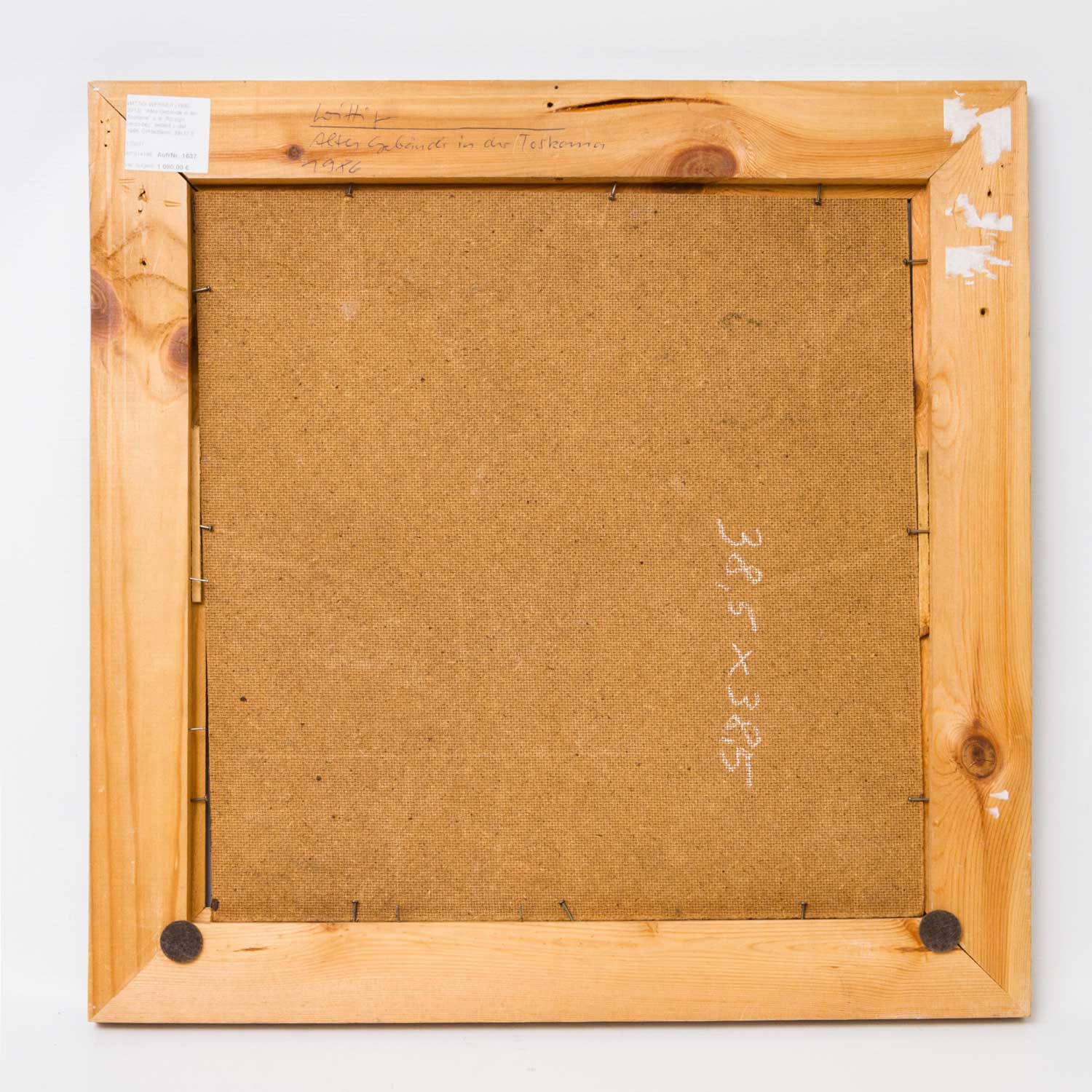 WITTIG, WERNER (1930-2013), ""Altes Gebäude in der Toskana"", lower right, incised sign, verso inscribed, titled and dat. 1986, oil/hard fiber, 39x37,5 cm (50x49,5 cm with frame). Part. Frame imprint at outer margin. With frame.