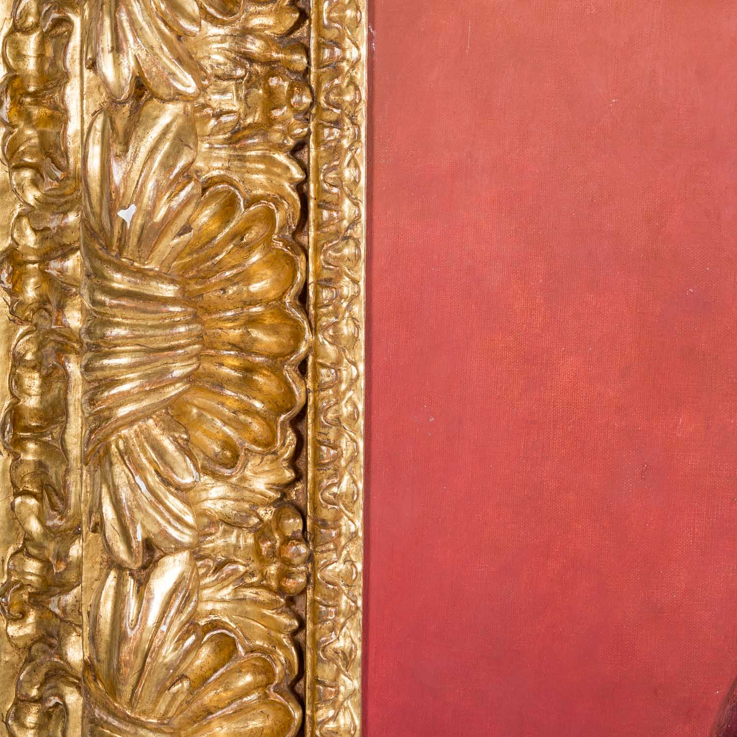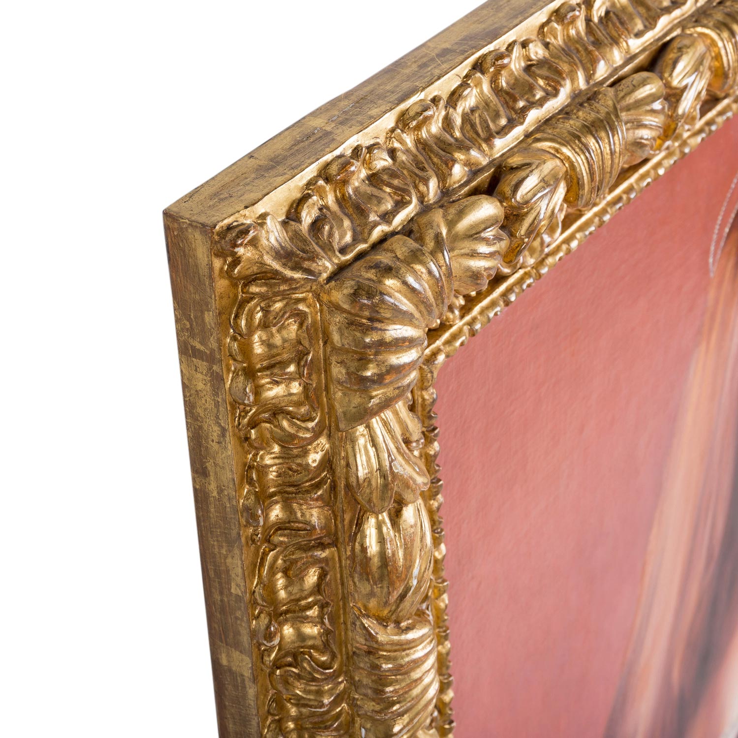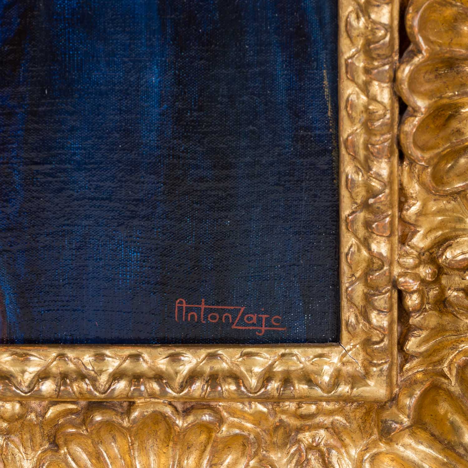 ZAJC, ANTON (1920-2008), 'Annunciation' in a splendid frame in the Italian Renaissance style, 19./20. Century, the painting: half portrait of a musing young woman in the manner of the old master Madonnas, l.r. signed, oil/canvas on panel, HxW: approx. 80x65 cm; the frame: stuccoed and gilded wood, HxW: external dimensions approx. 103x87 cm. Slight signs of age and wear, chip paint.