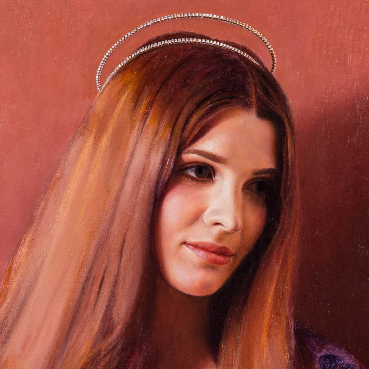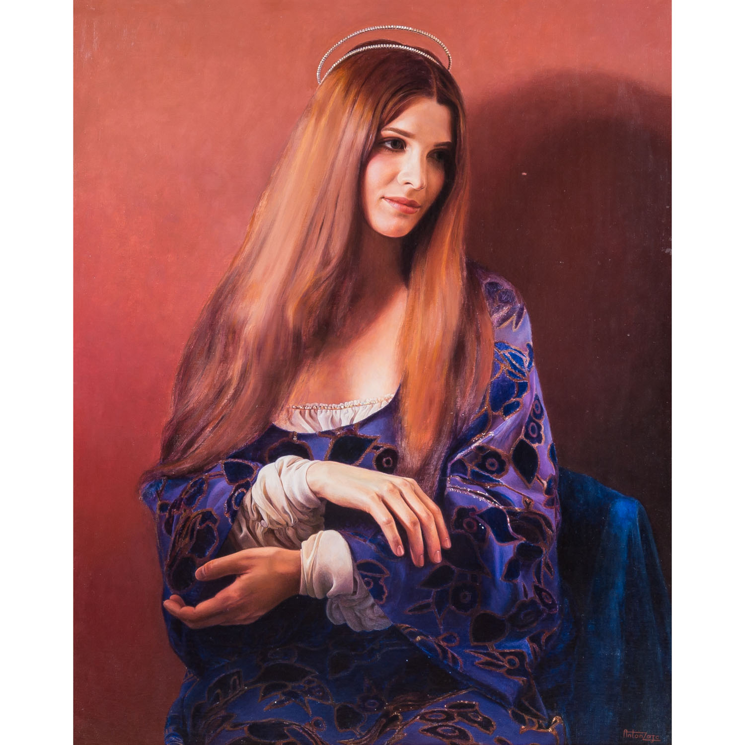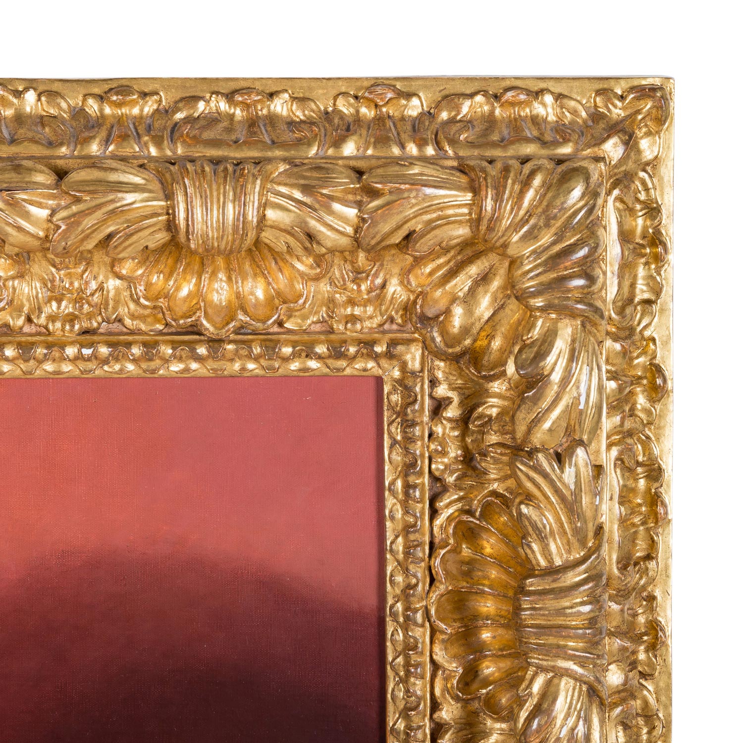 ZAJC, ANTON (1920-2008), 'Annunciation' in a splendid frame in the Italian Renaissance style, 19./20. Century, the painting: half portrait of a musing young woman in the manner of the old master Madonnas, l.r. signed, oil/canvas on panel, HxW: approx. 80x65 cm; the frame: stuccoed and gilded wood, HxW: external dimensions approx. 103x87 cm. Slight signs of age and wear, chip paint.