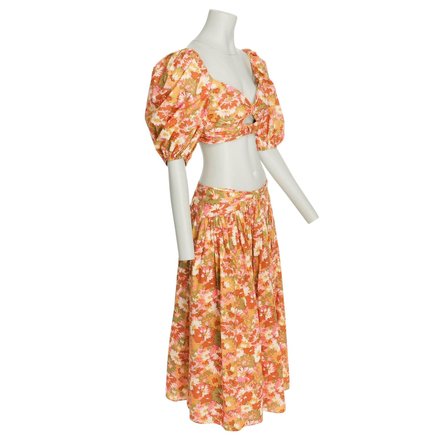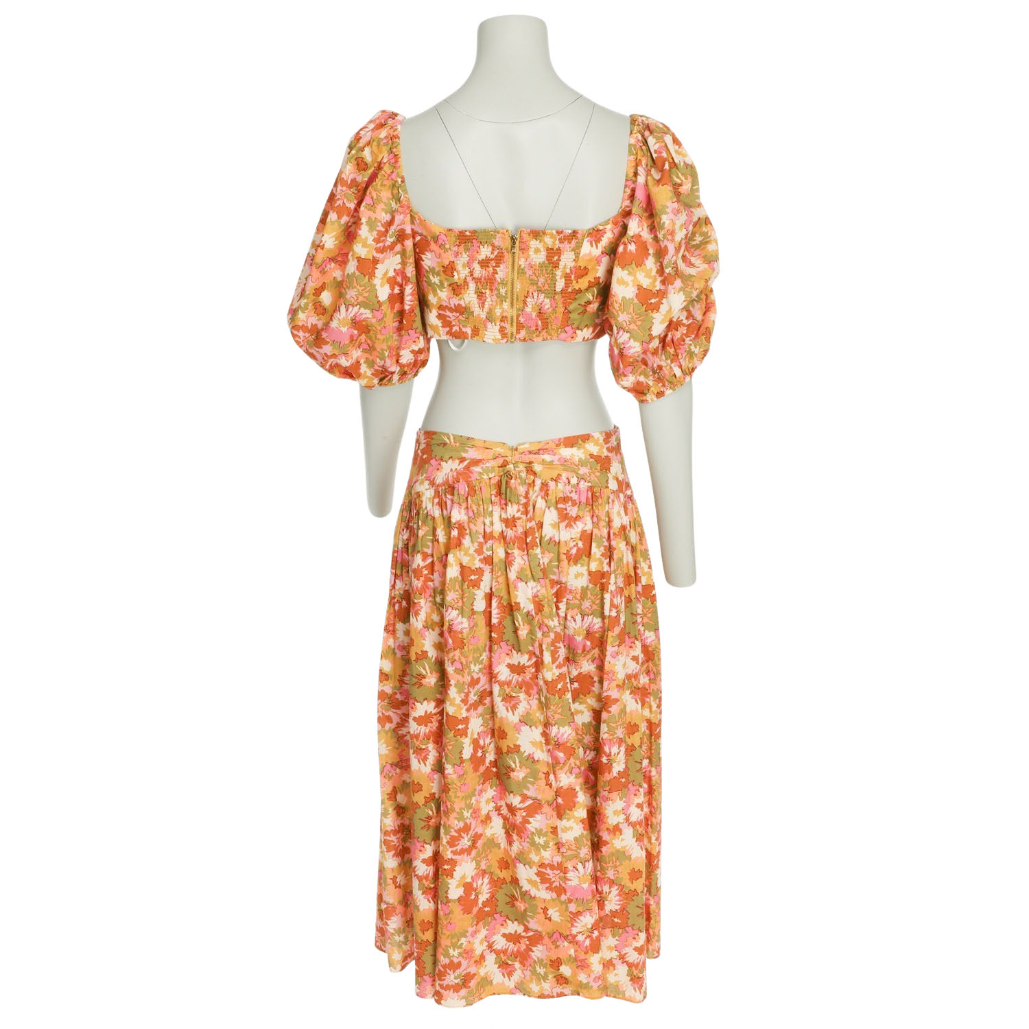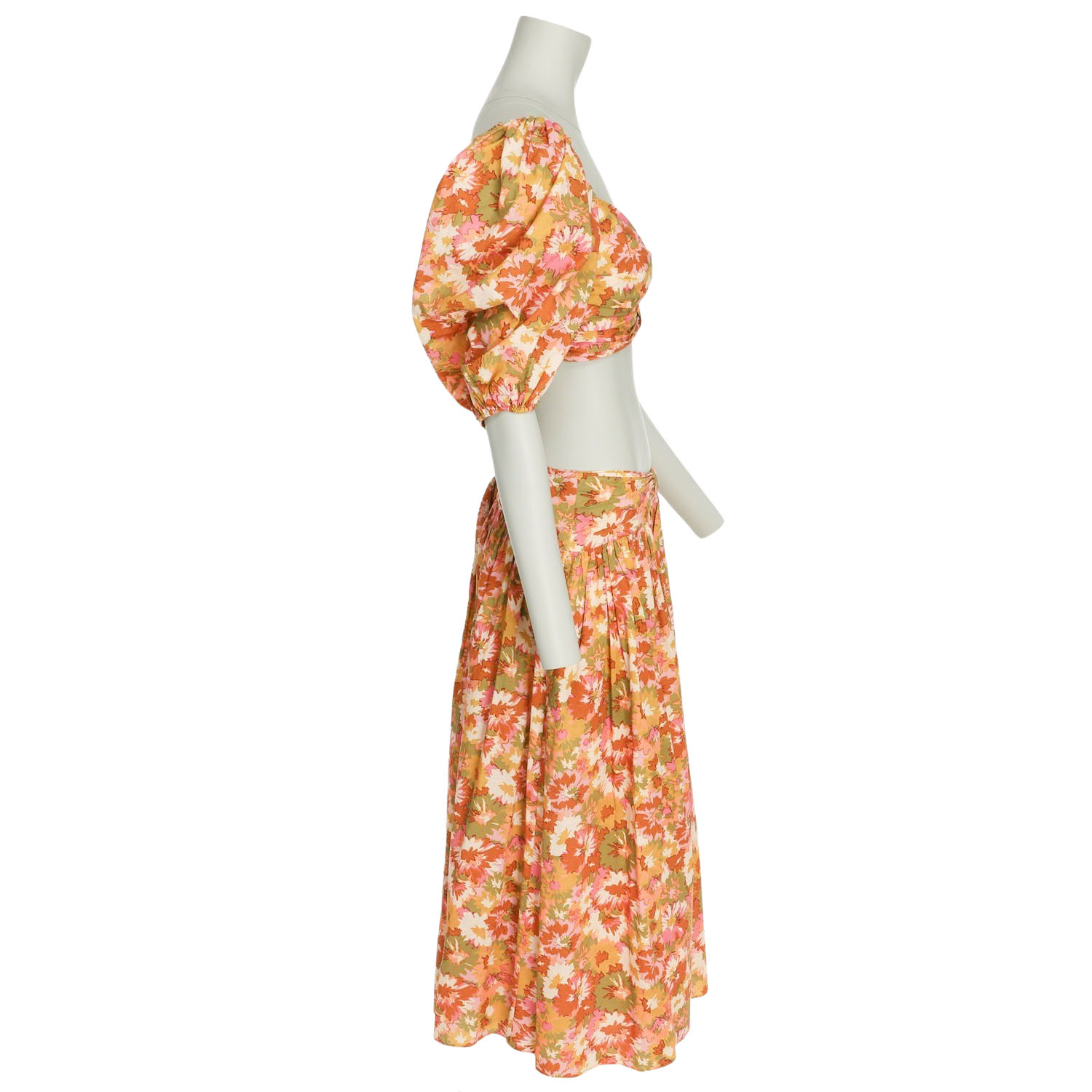 ZIMMERMANN Set, size 38 (2). Cotton. Bustier top with zip, gathers and voluminous sleeves. Wide skirt with gathered waistband and zip at the back. Signs of wear present.