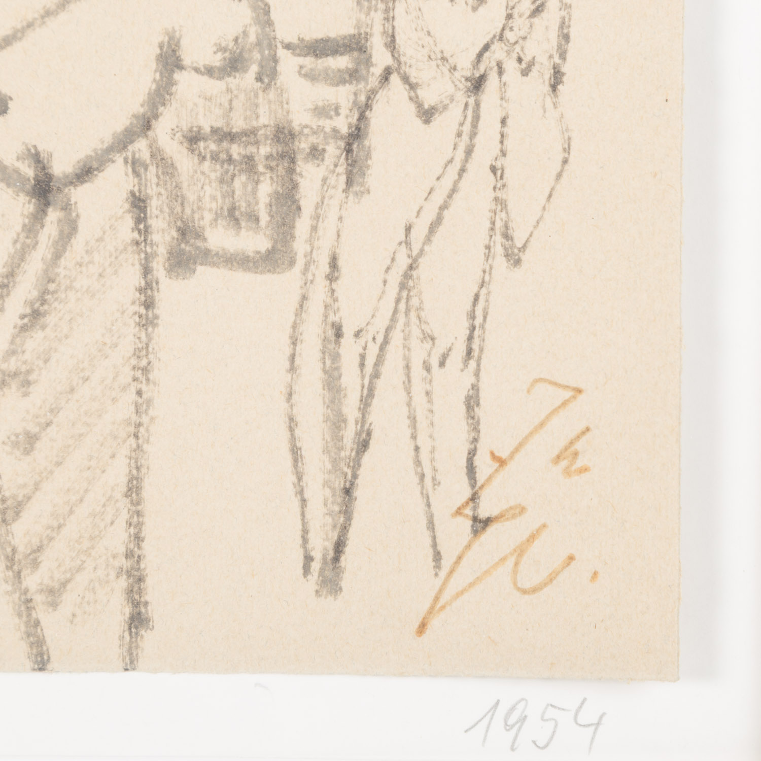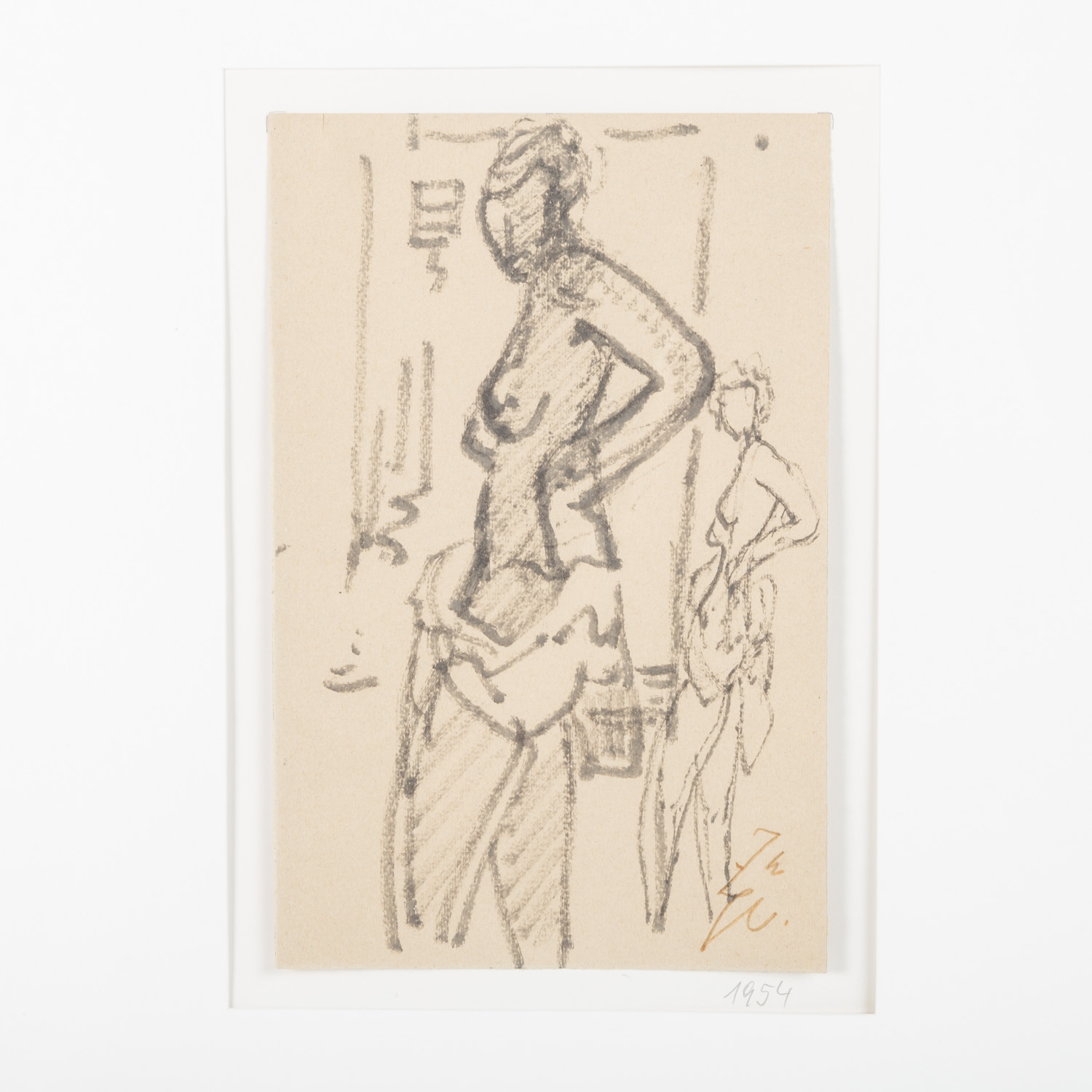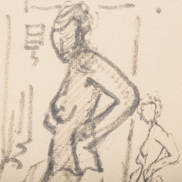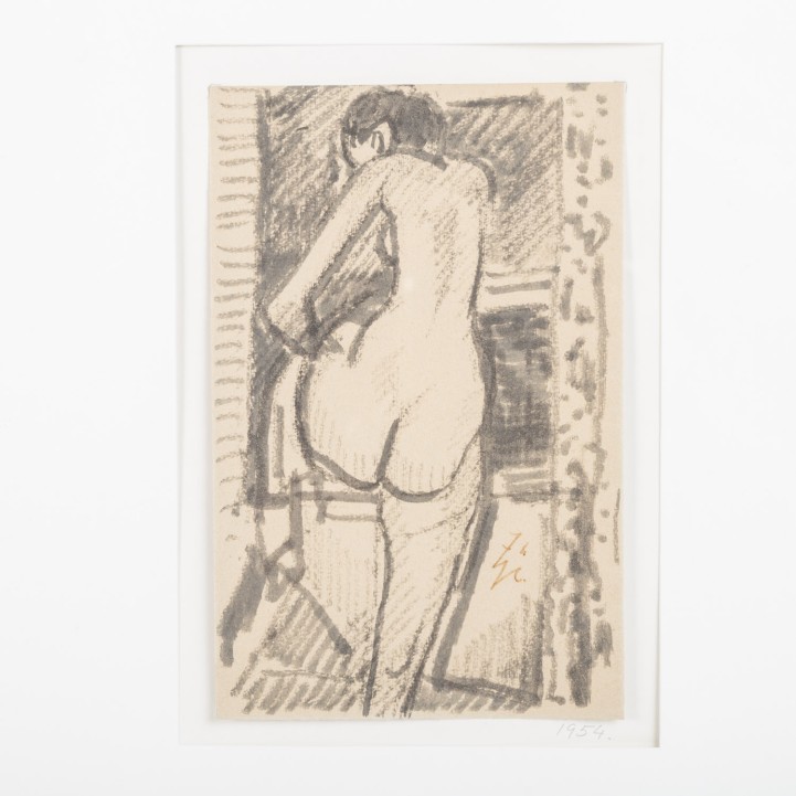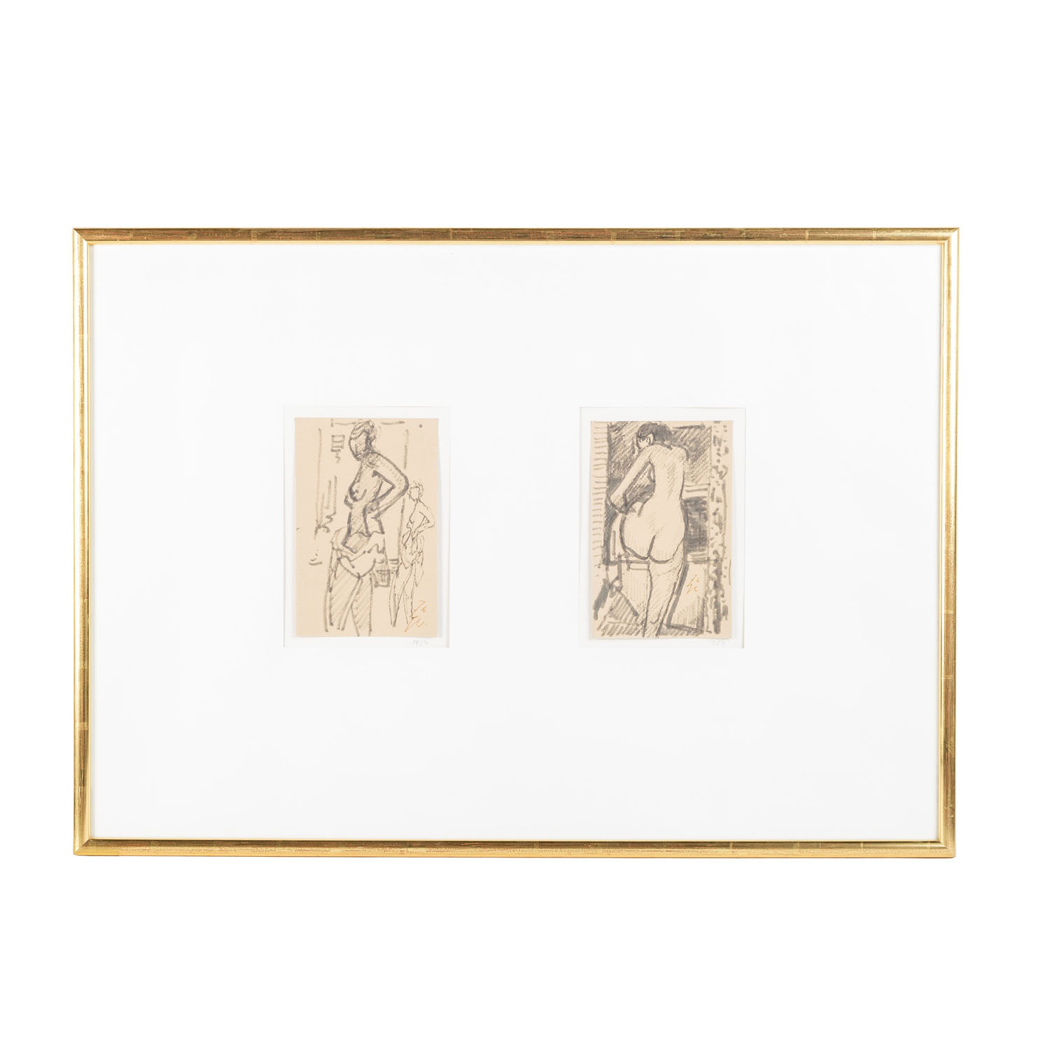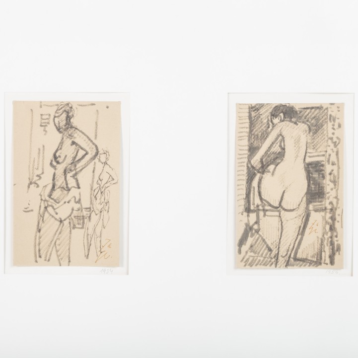 Black ink on paper, monogrammed, verso with a photocopy of each work with the corresponding title and a stamp from the estate, HxW: 25 16.5 cm each. Both works framed together, HxW: 73/103 cm.