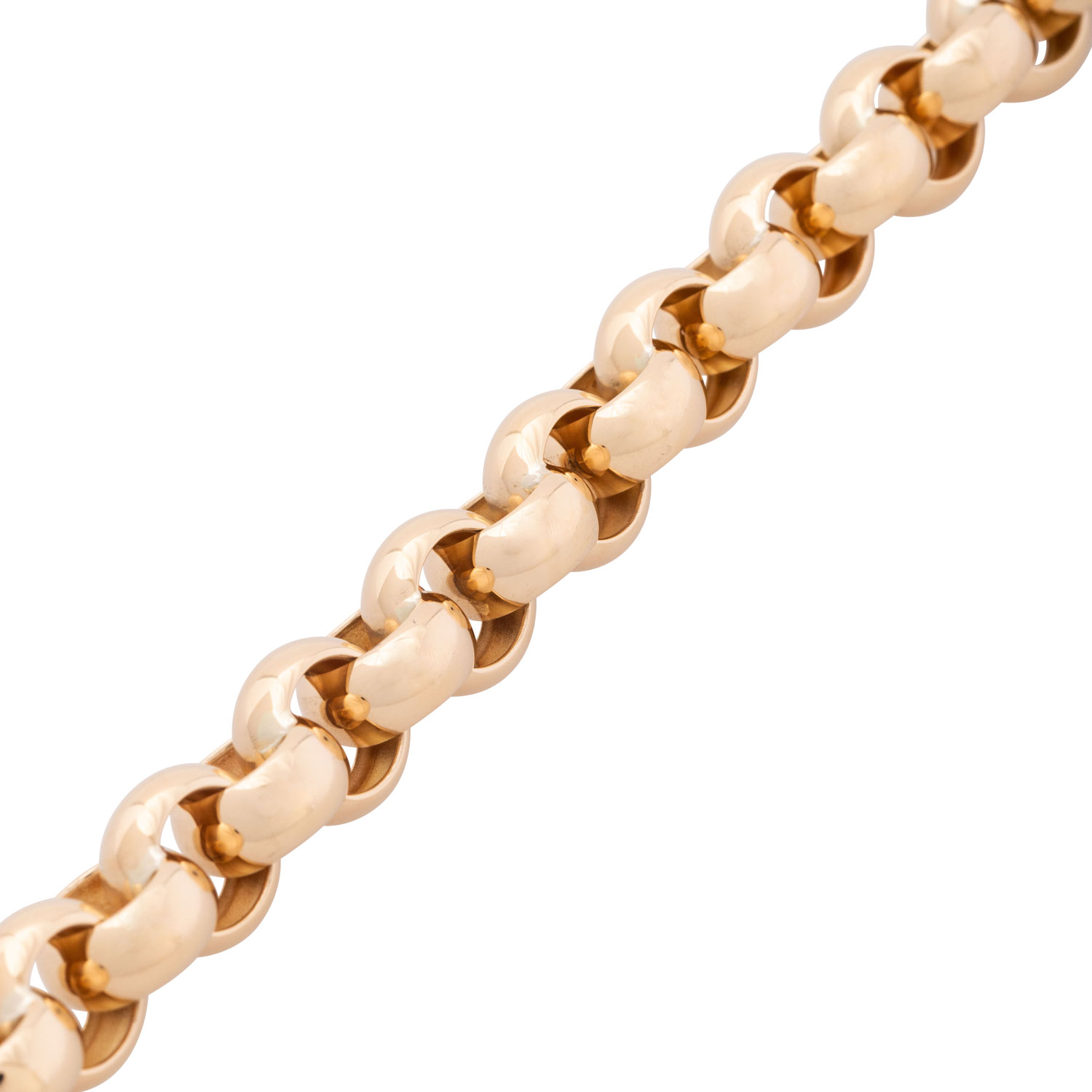 GG 18K, 30,8 g, L: ca. 19,5 cm, B: ca. 9 mm, Mitte 20. Jh., minimale Tragespuren, mit Karabiner.