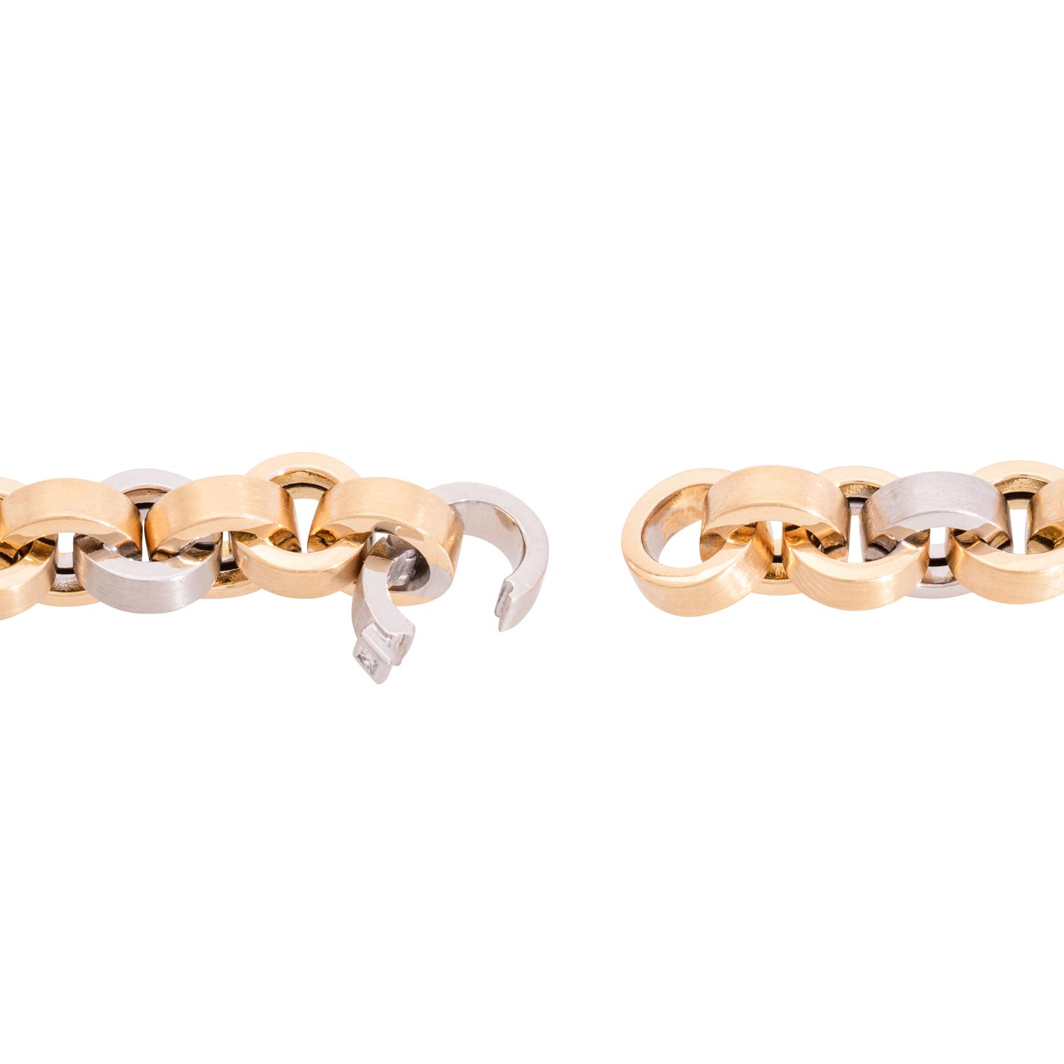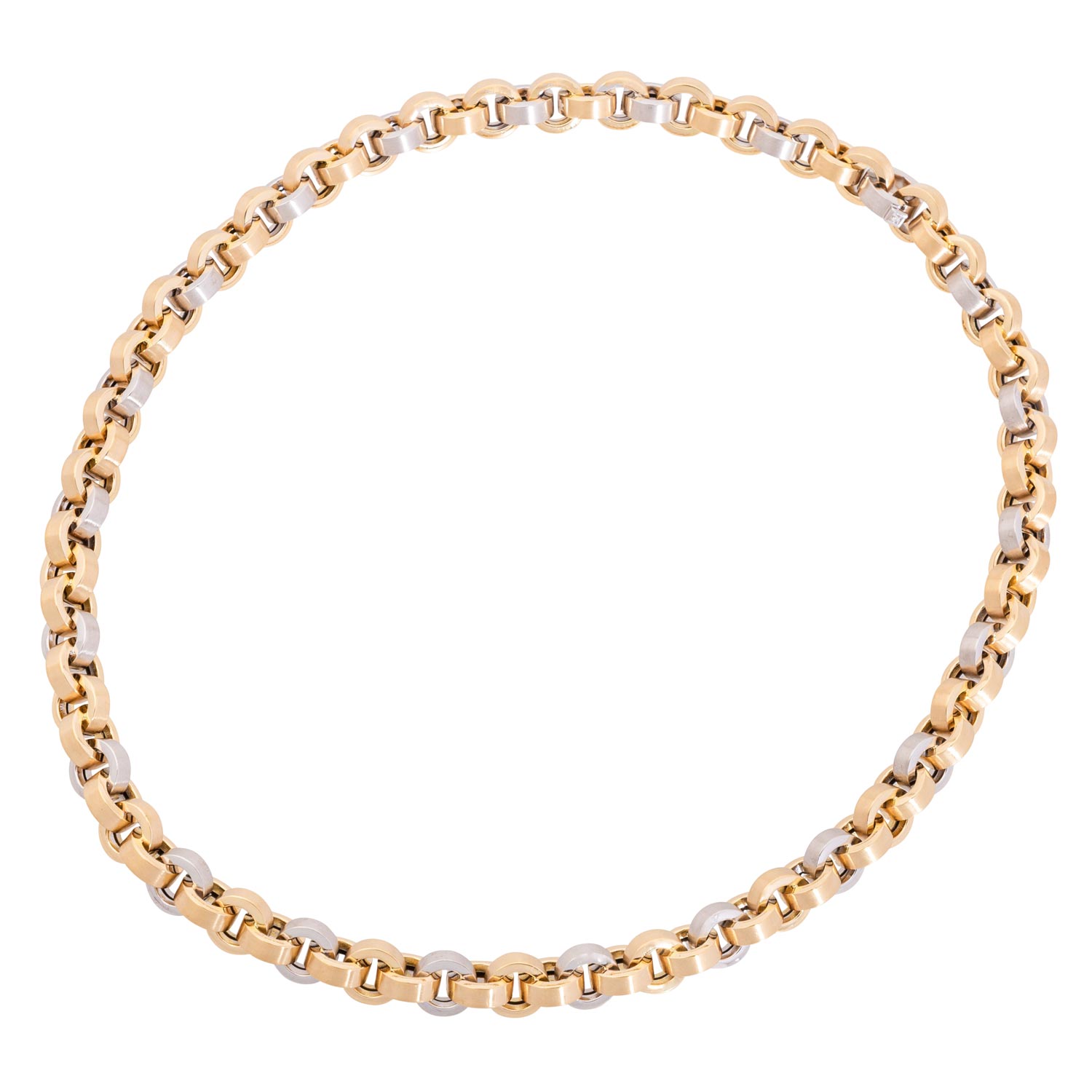poliert/mattiert, rundes vierkant Profil, GG/WG 18K, 76,7 g, L: ca. 43,5 cm, B: ca. 0,8 cm, Ende 20. Jh./Anfang 21. Jh., minimale Tragespuren, mit Herstellerpunze 'BB'. Handarbeit.