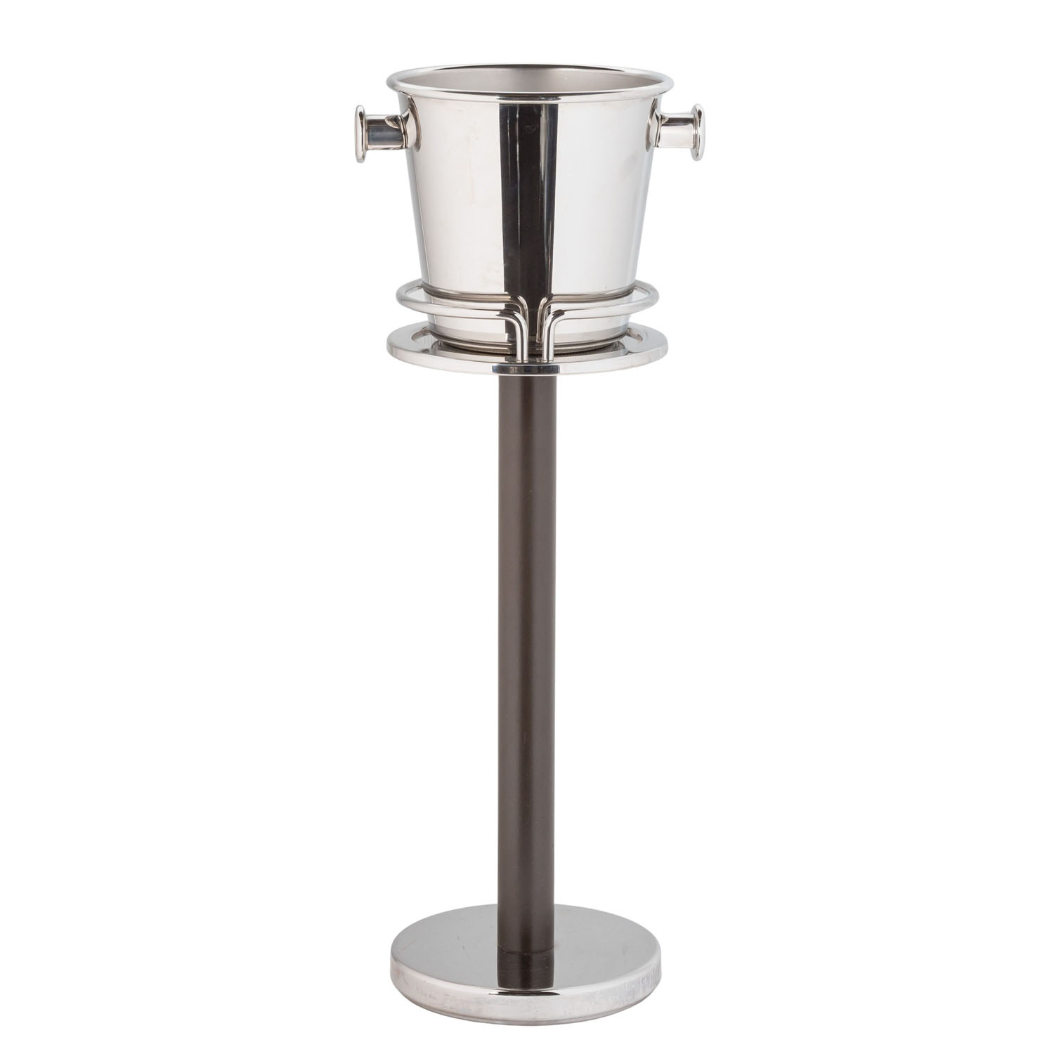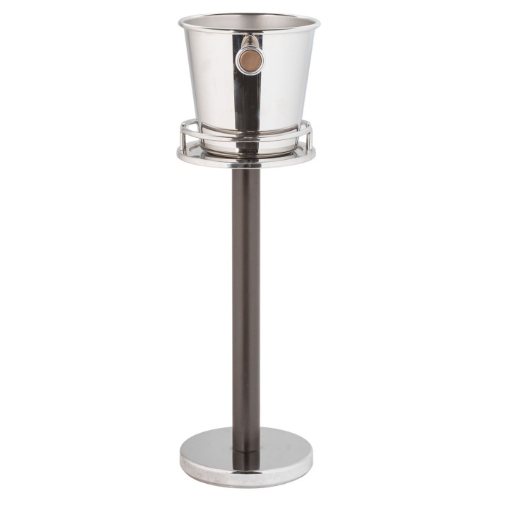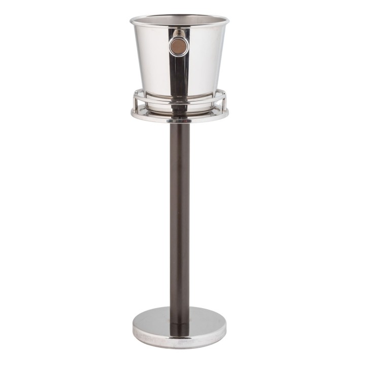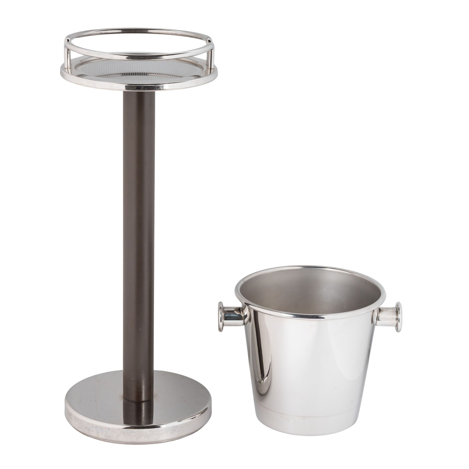 Sektkühler,Sekt- bzw. Weinkühler aus Edelstahl, Entwurf Ettore Sottsass. H gesamt: 82 cm. Part. Alters- und Gebrauchsspuren.