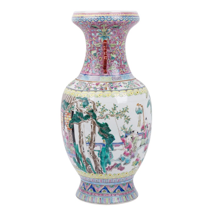 Famille rose-Vase aus Porzellan. CHINA, um 1900.