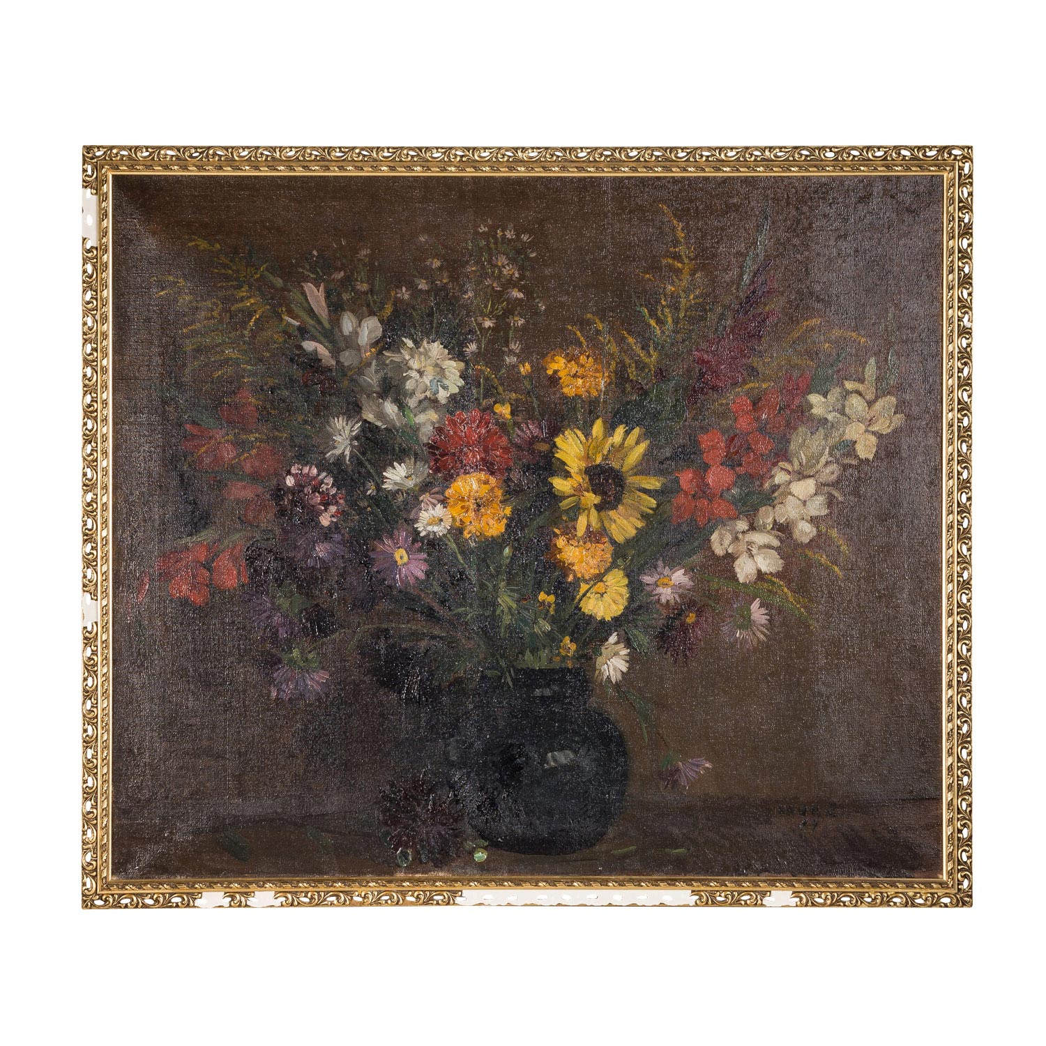 u.re. signiert und undeutlich datiert (19)24?, Öl/Leinwand, HxB: ca. 90x105 (96x112 cm mit Rahmen). Leichte Alters- und Beriebspuren. Mit Rahmen (beschädigt, Stuckfehlstellen).