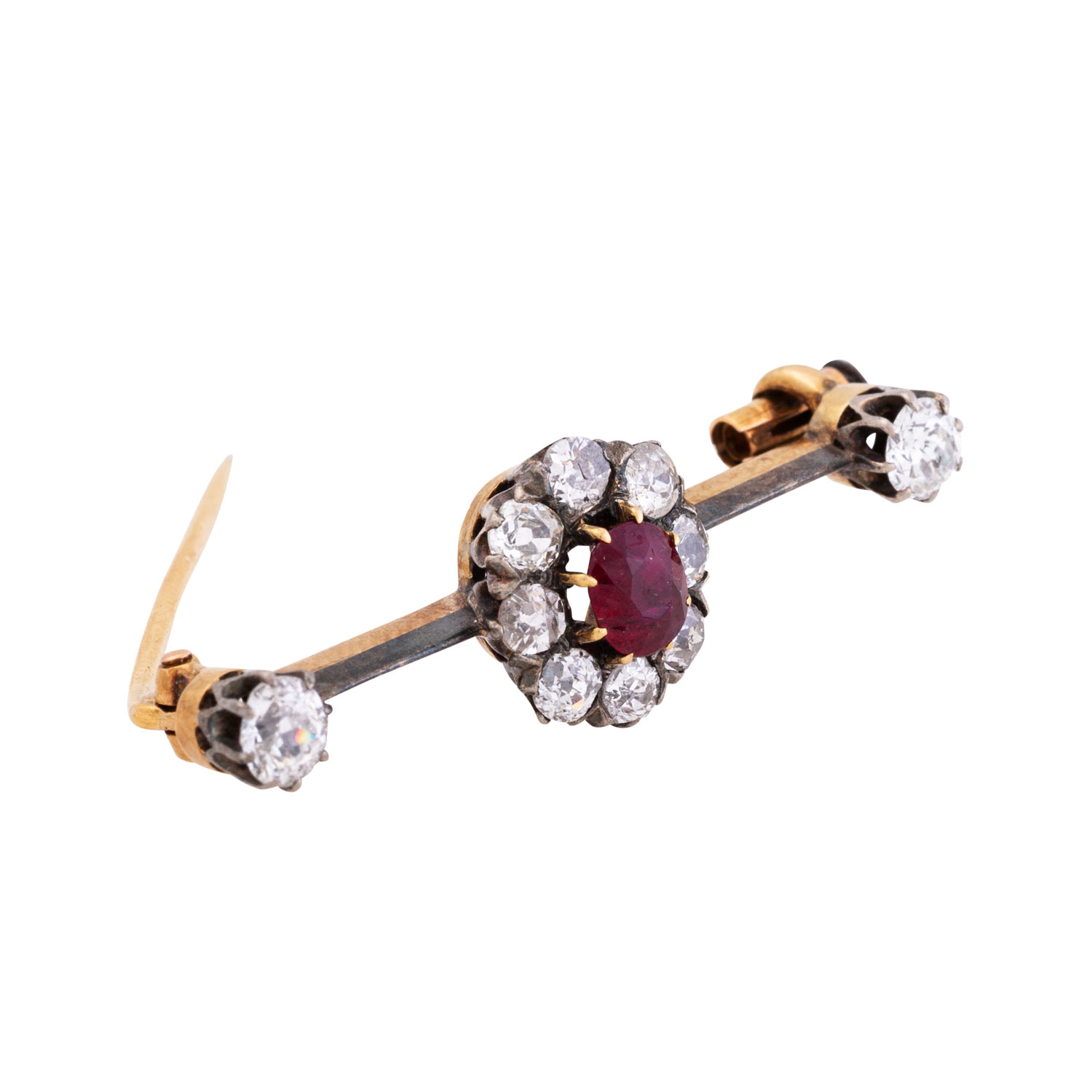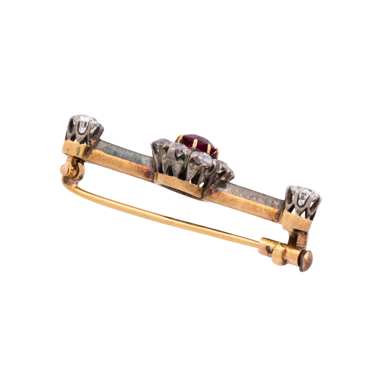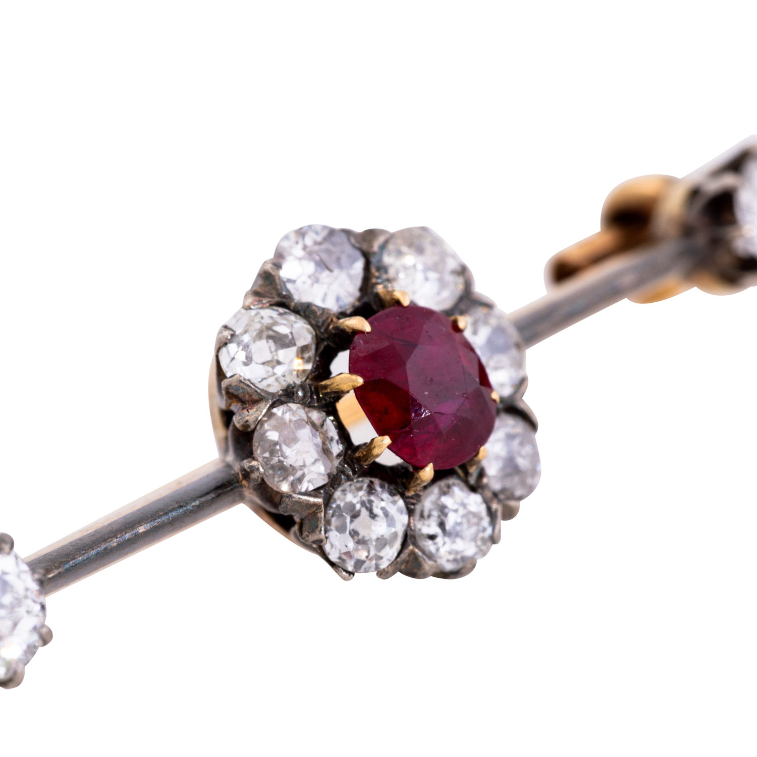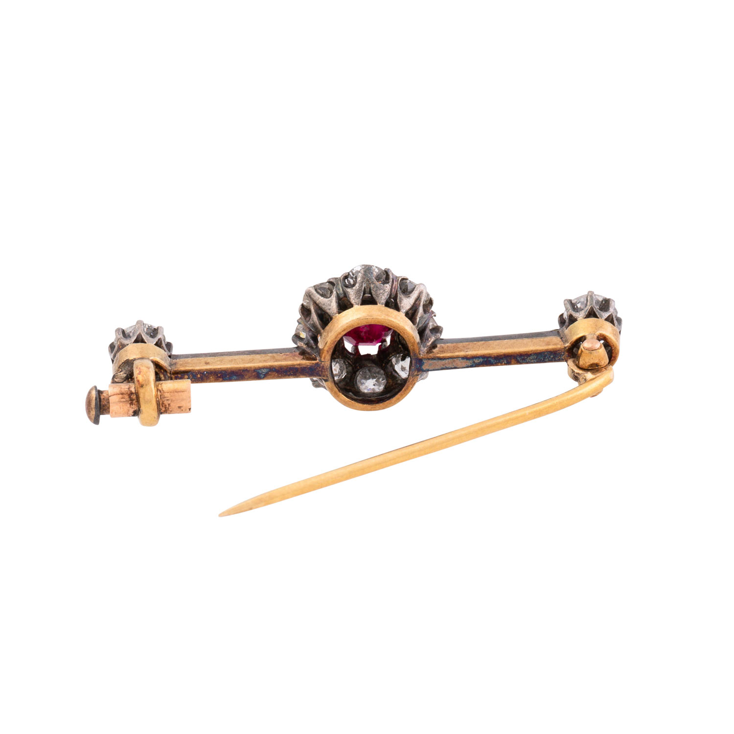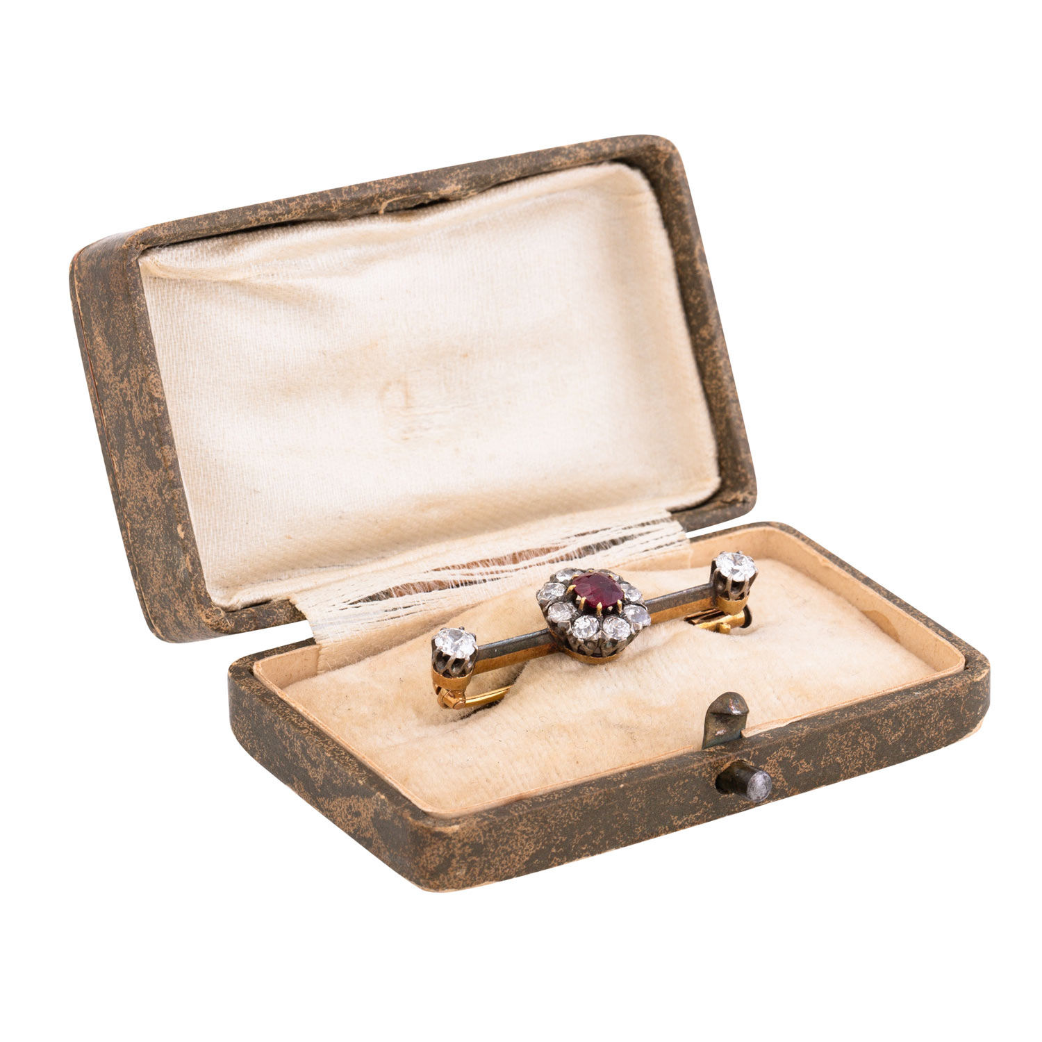 Feine, antike Brosche um 1880 mit Rubin u. 10 Altschliff-Diamanten