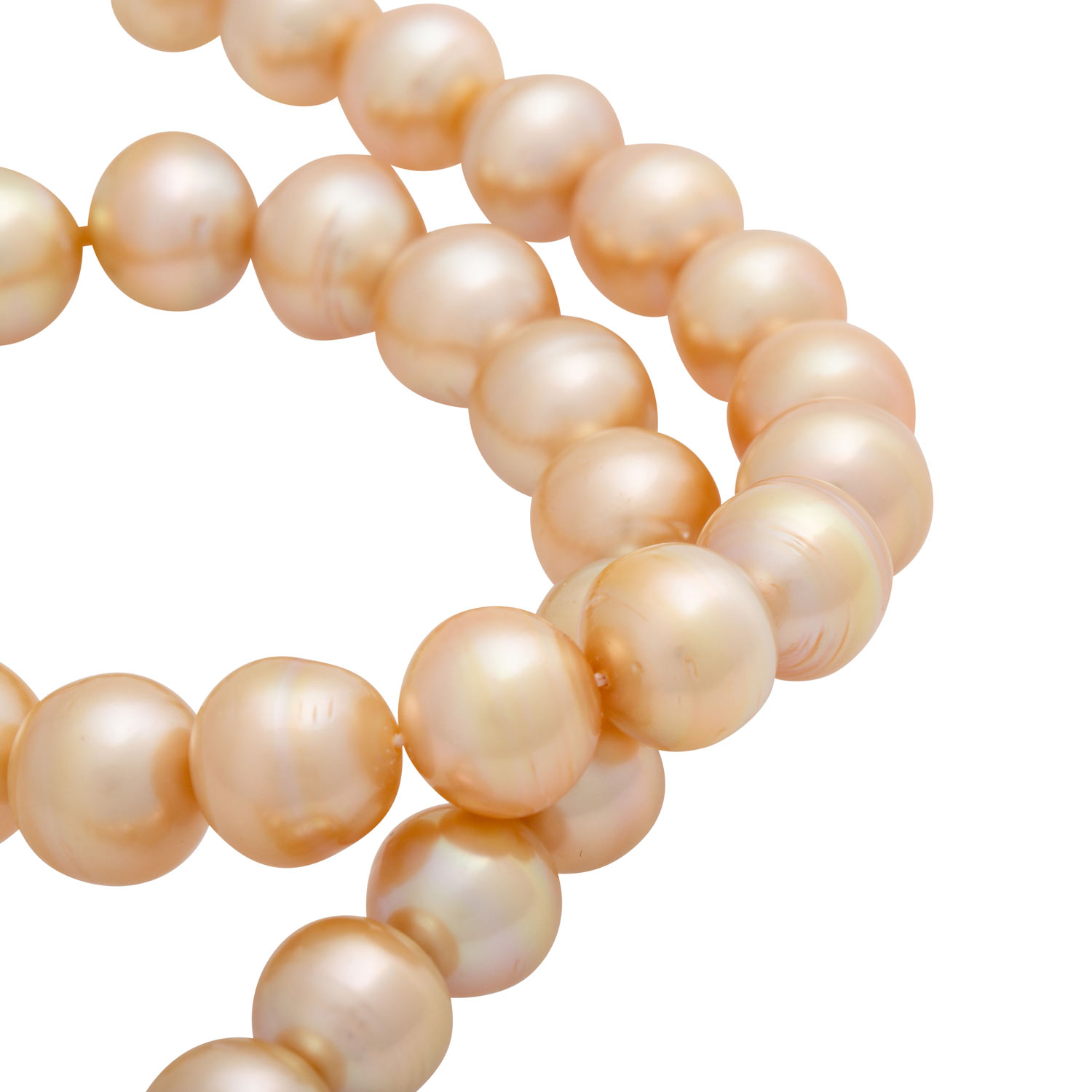 Feiner Perlenstrang, 41 goldfarbene Südsee-Zuchtperlen,