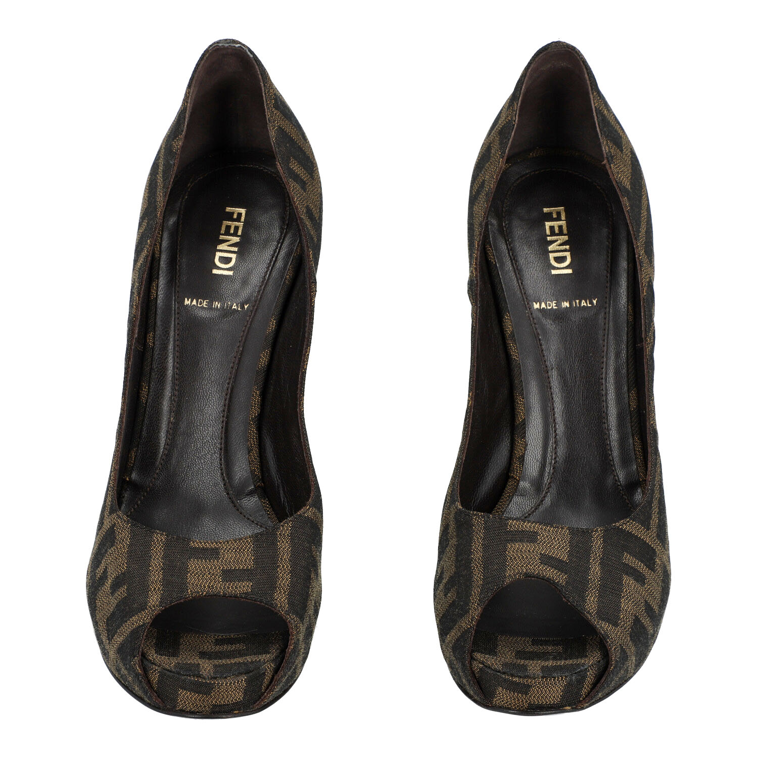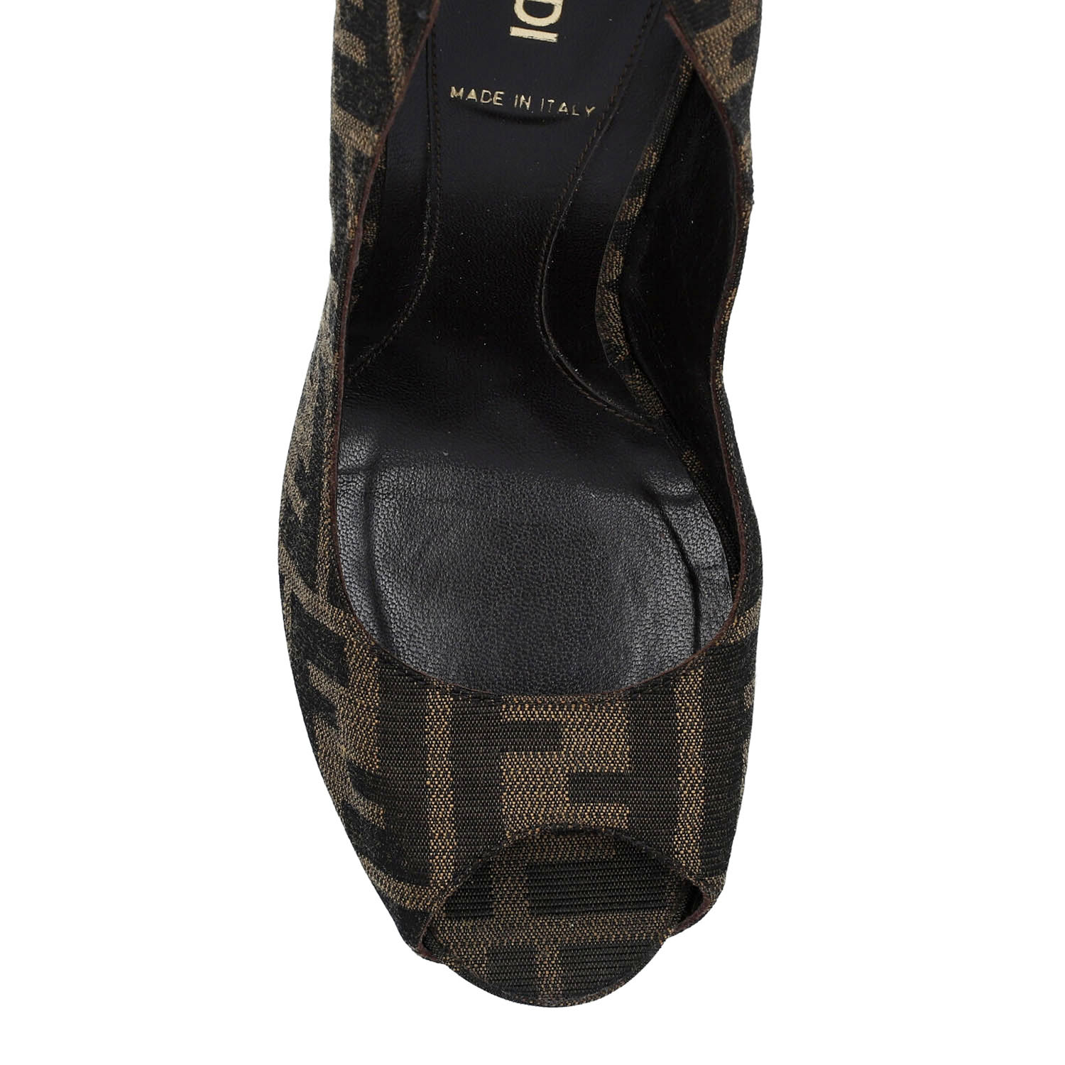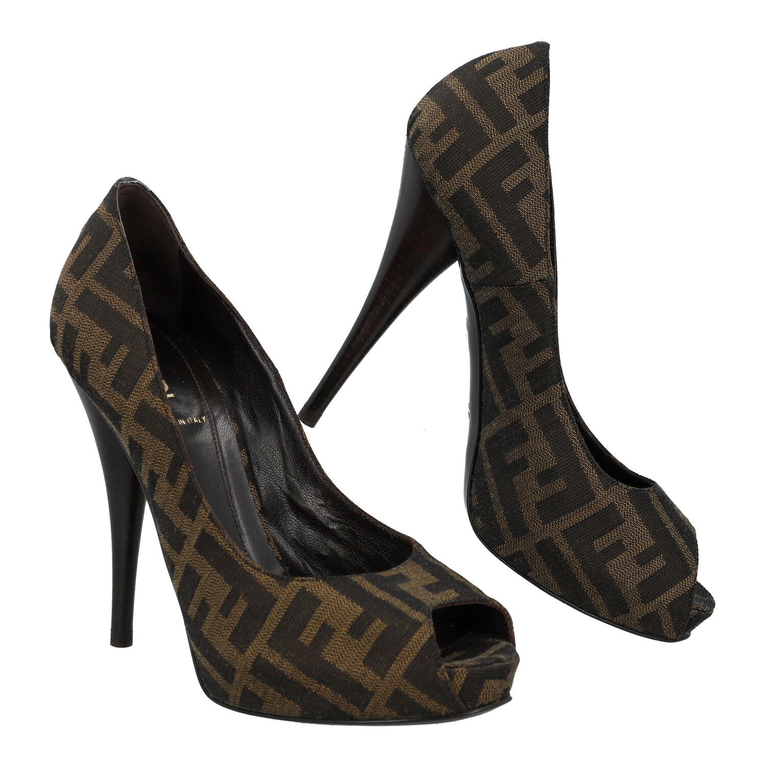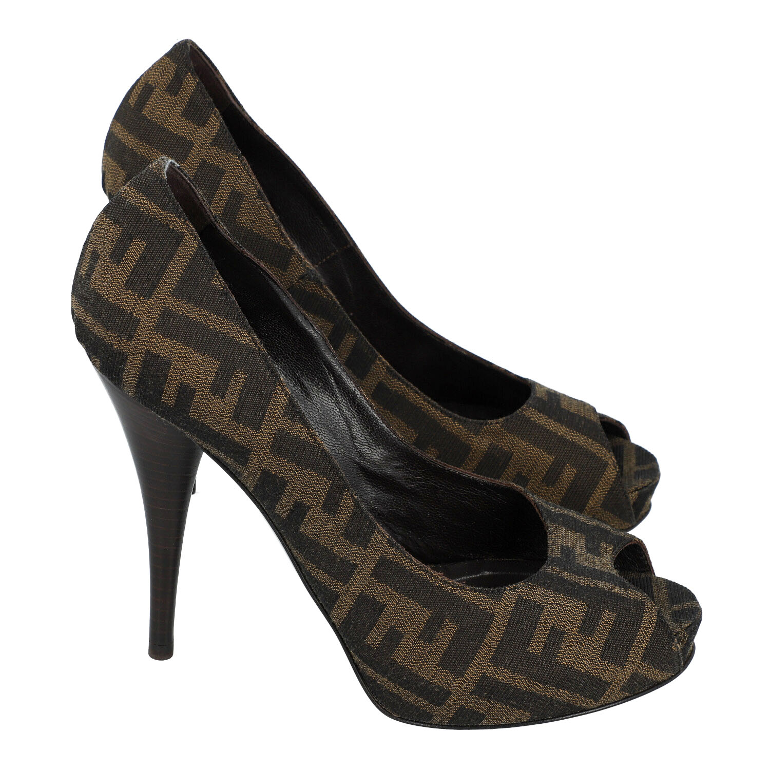 Peeptoes mit klassischem Zucca-Monogram in Textil. Pfennigabsatz, Höhe ca. 12cm. Box anbei. Leichte Tragespuren vorhanden.