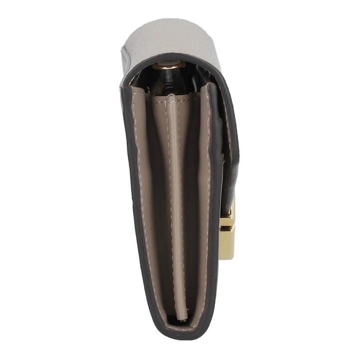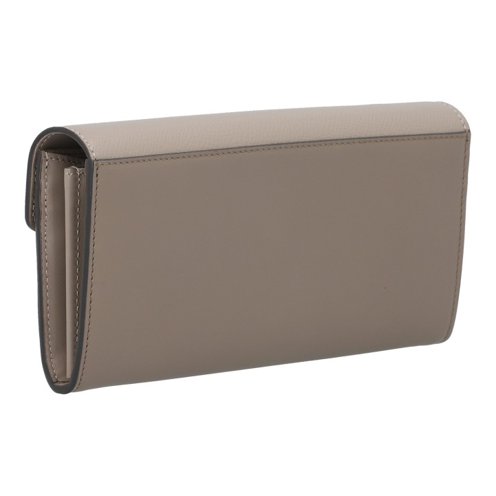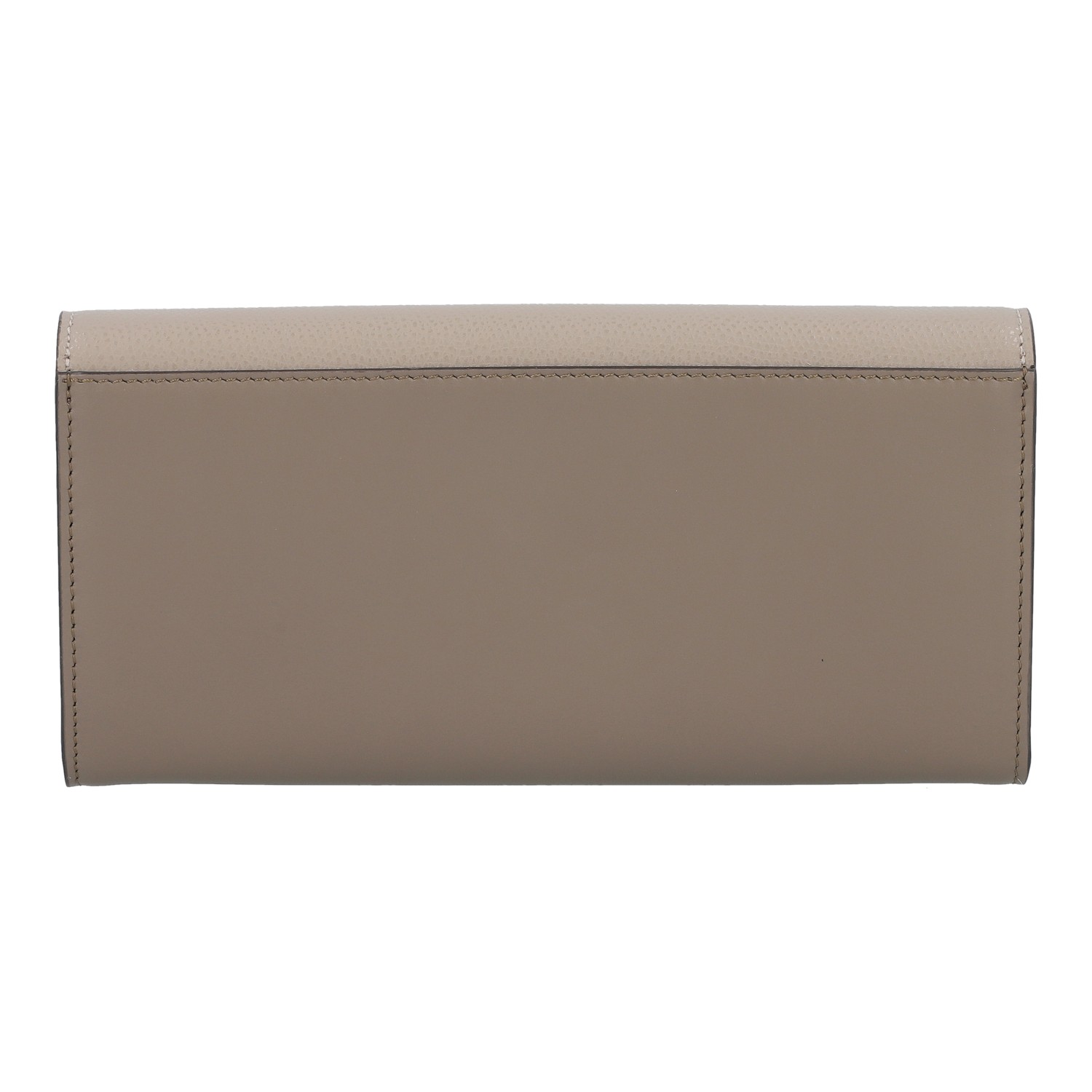 Taupefarbenes Leder mit goldfarbener Hardware, Überschlag mit Logo und abnehmbarem Schulterriemen. Innenraum mit fünf Hauptfächern und zehn Kartenfächern. Box und Staubbeutel anbei. Neuwertig.
