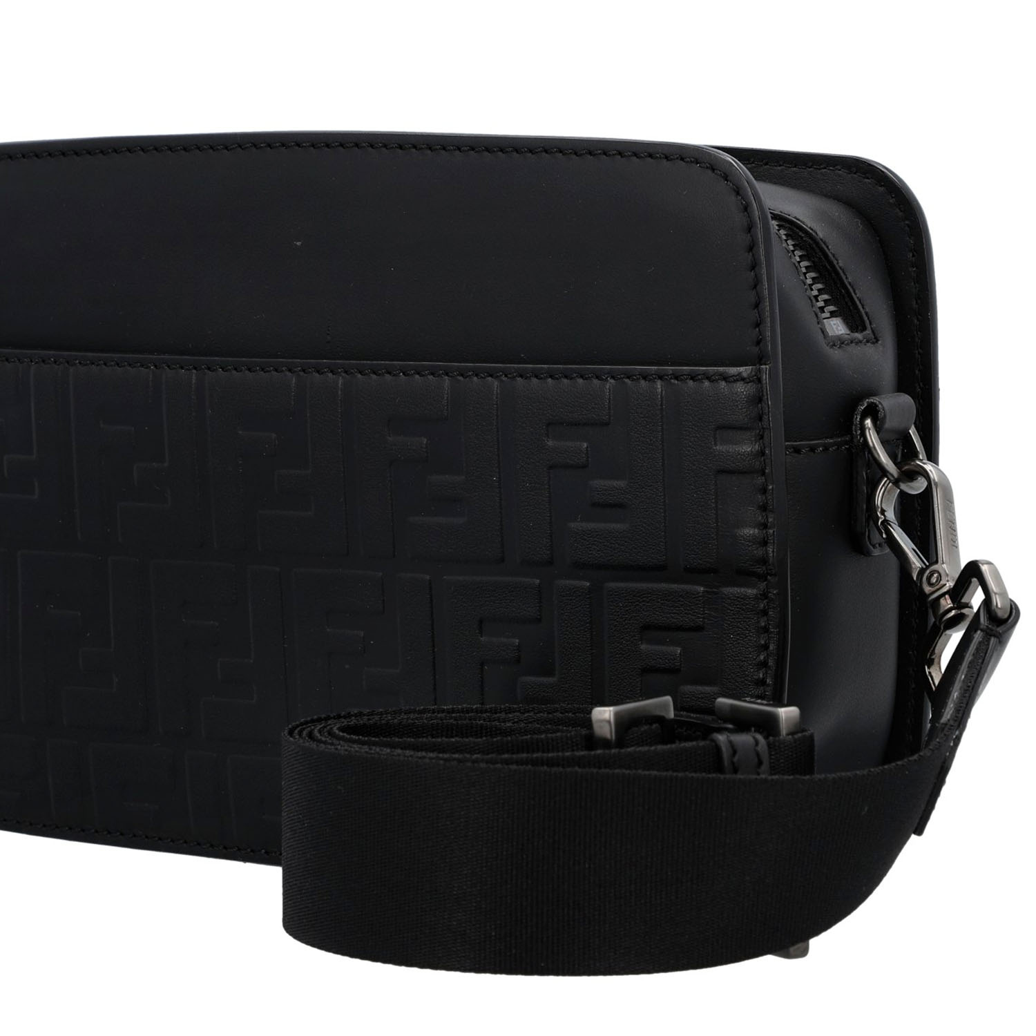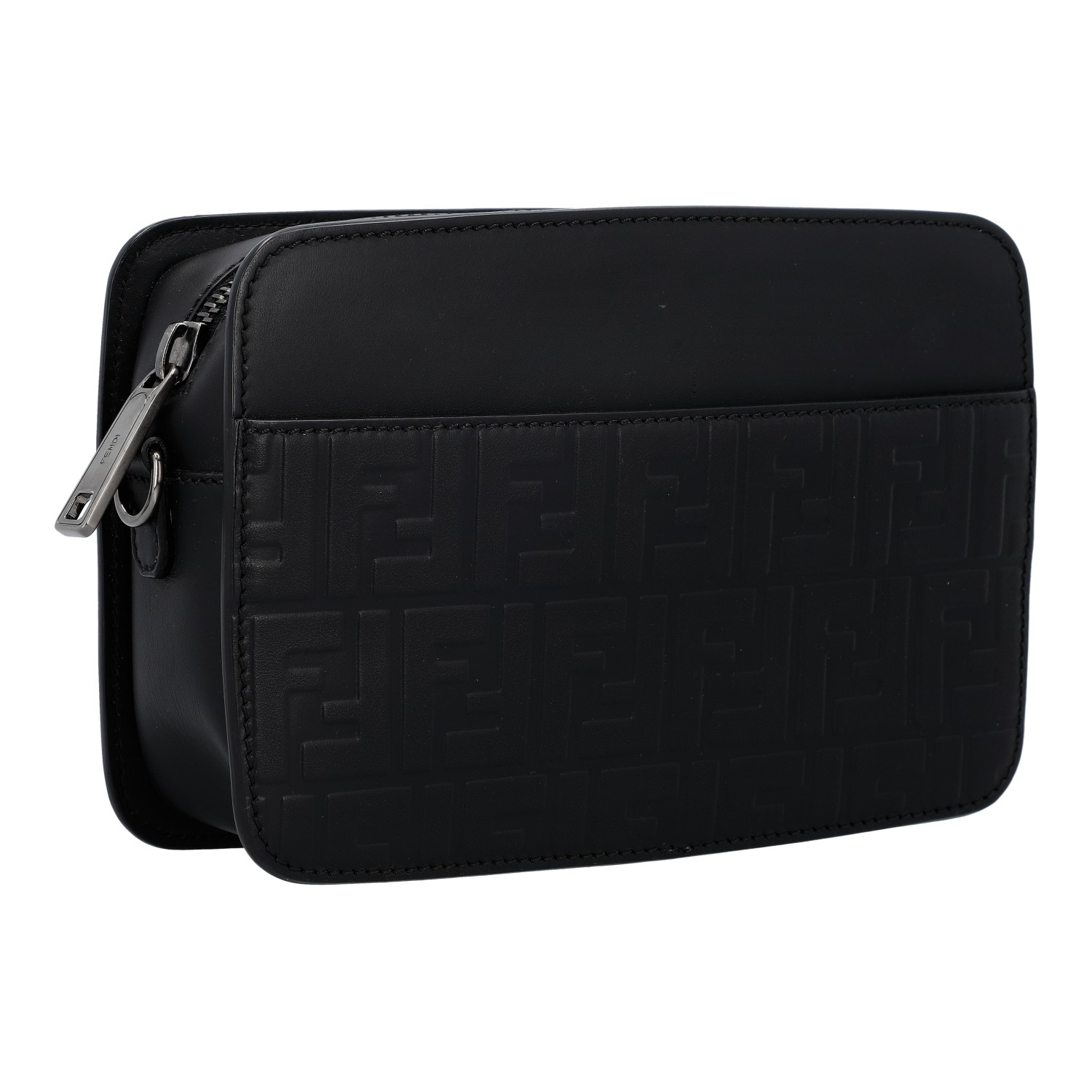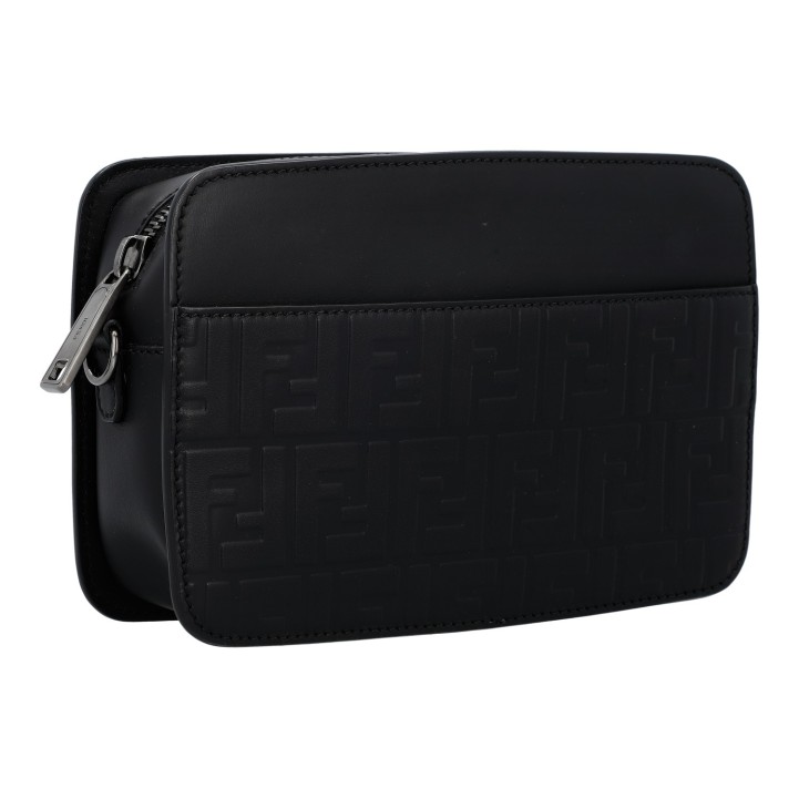 Aus Leder in Schwarz mit geprägtem FF-Zucca Mogram und silberfarbener Hardware. Längenverstellbarer Trageriemen aus Textil. Ein Außenfach, textiles Innenfutter und ein kleines Innenfach. Staubbeutel anbei. Guter Erhalt, leichte Kratzer auf dem Leder. 23,5x6,5x16cm.