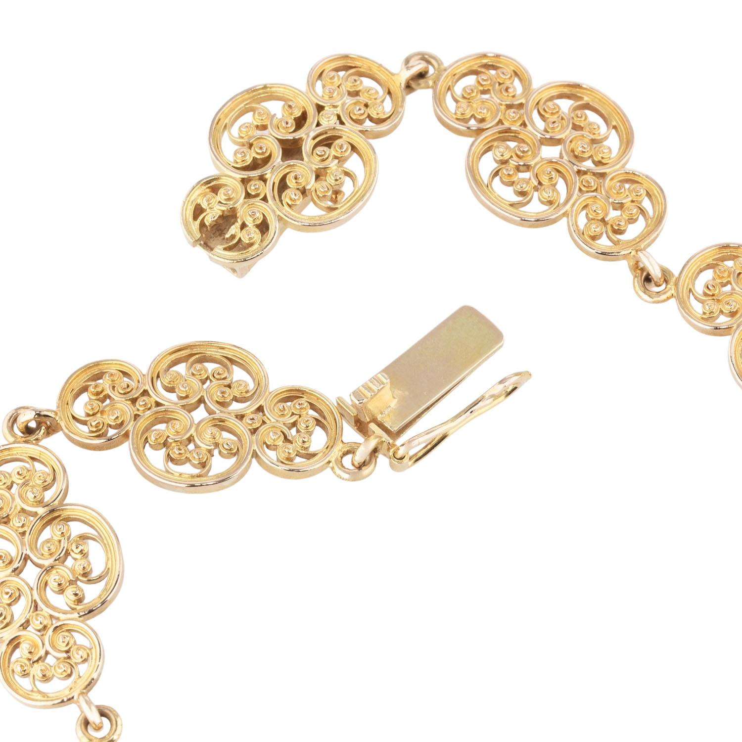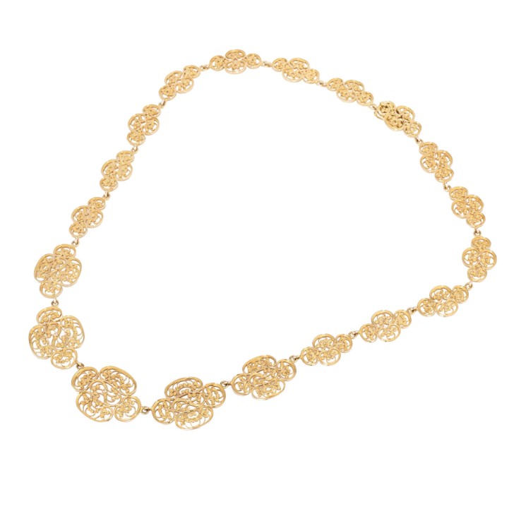 GG 14K, 26,5 g, L: ca. 42 cm, B: im Verlauf von ca. 1 bis 2 cm, 20./21. Jh., leichte Tragespuren, Kastenschloß mit Sicherheitsacht, Handarbeit.