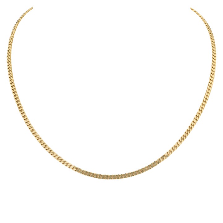 GG 14K, 16,0 g, L: 61 cm, B x H: 3 x 1,1 mm, Karabinerhaken, Ende 20. Jh., minimale Tragespuren.