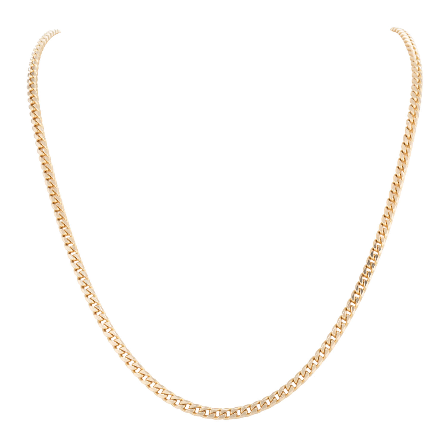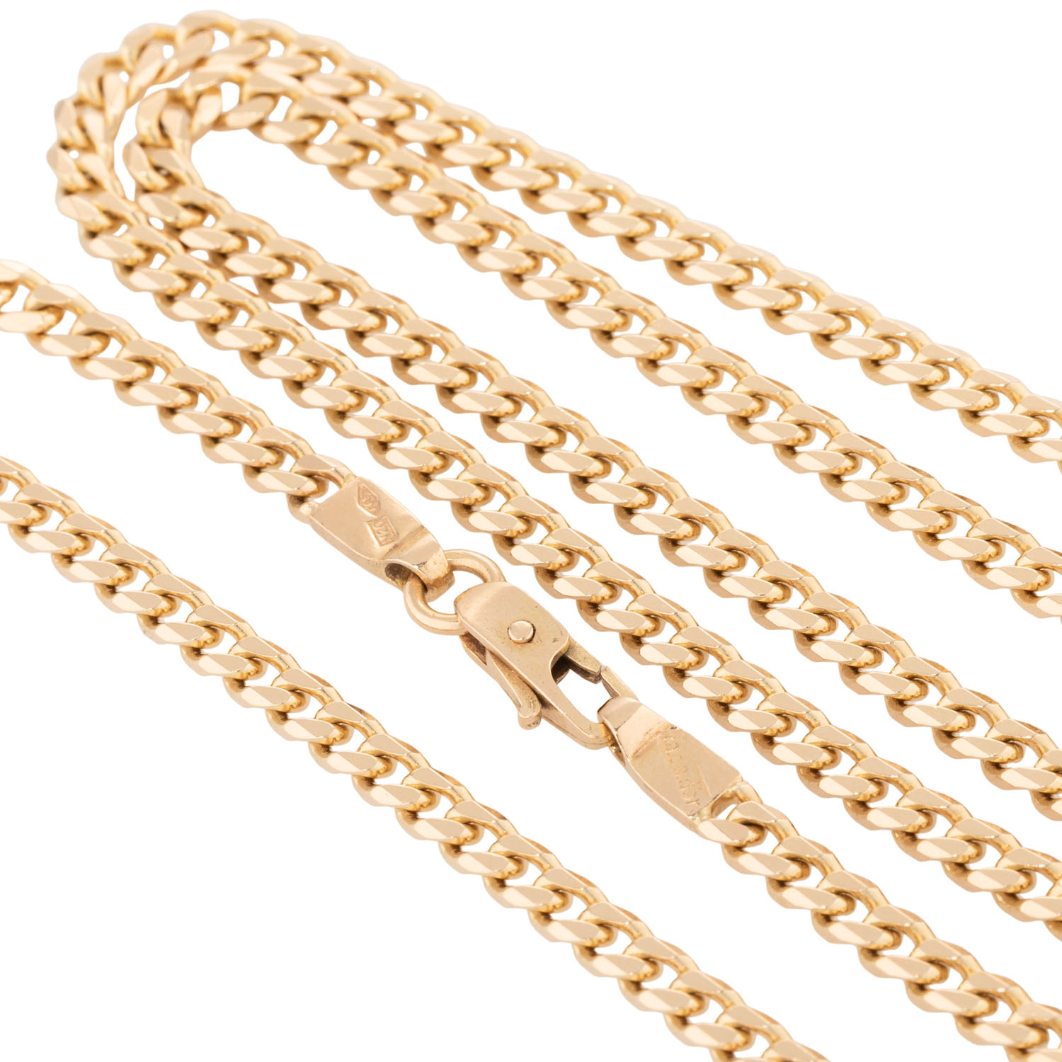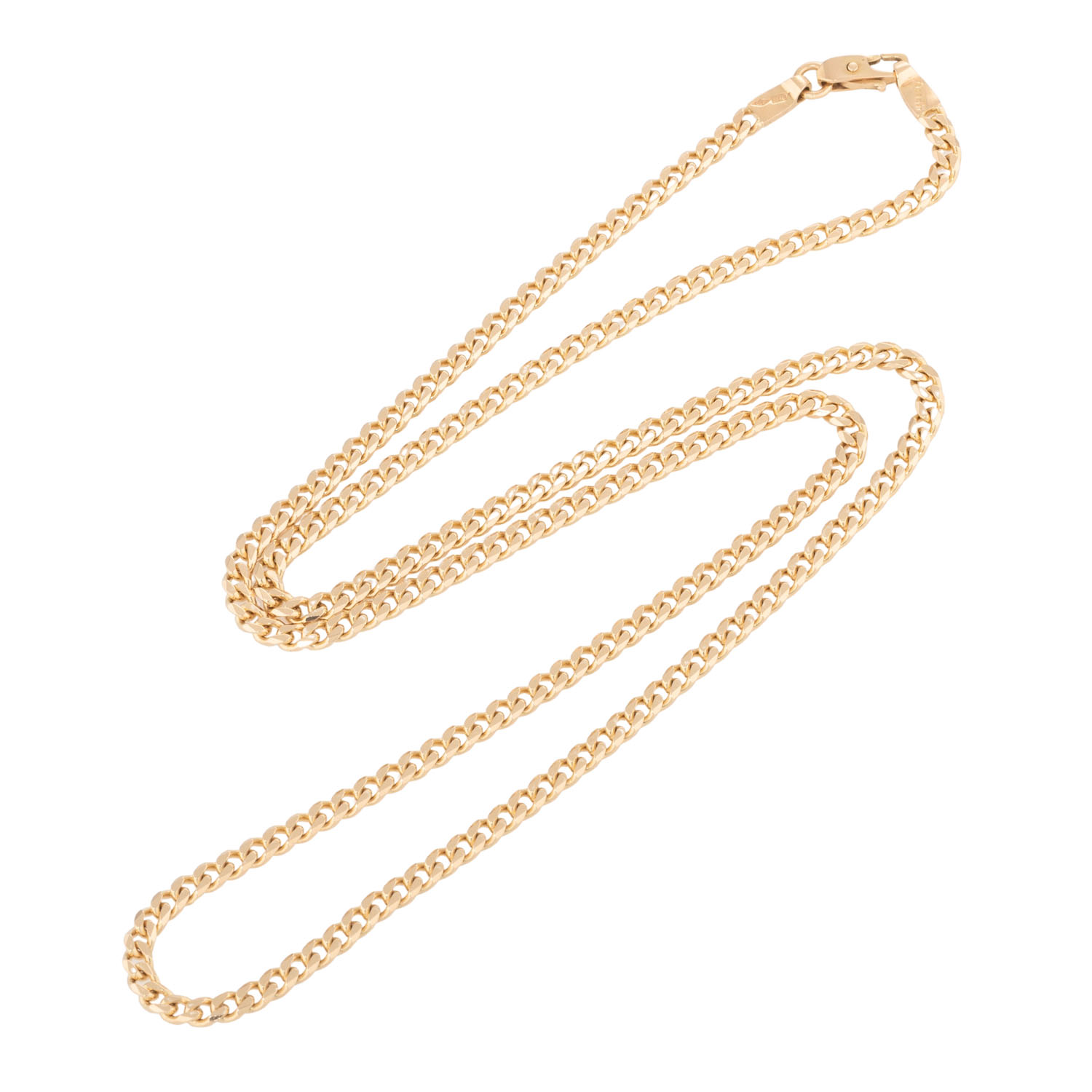 GG 14K, 33,2 g, L: 70 cm, B x H: 3,7 x 1,7 mm, Karabinerhaken, Ende 20. Jh., minimale Tragespuren.
