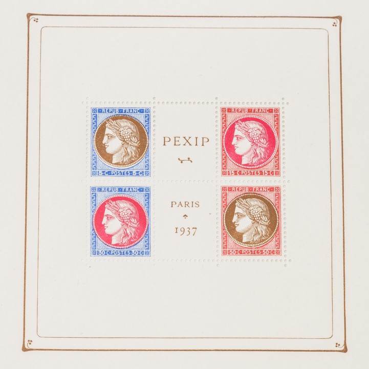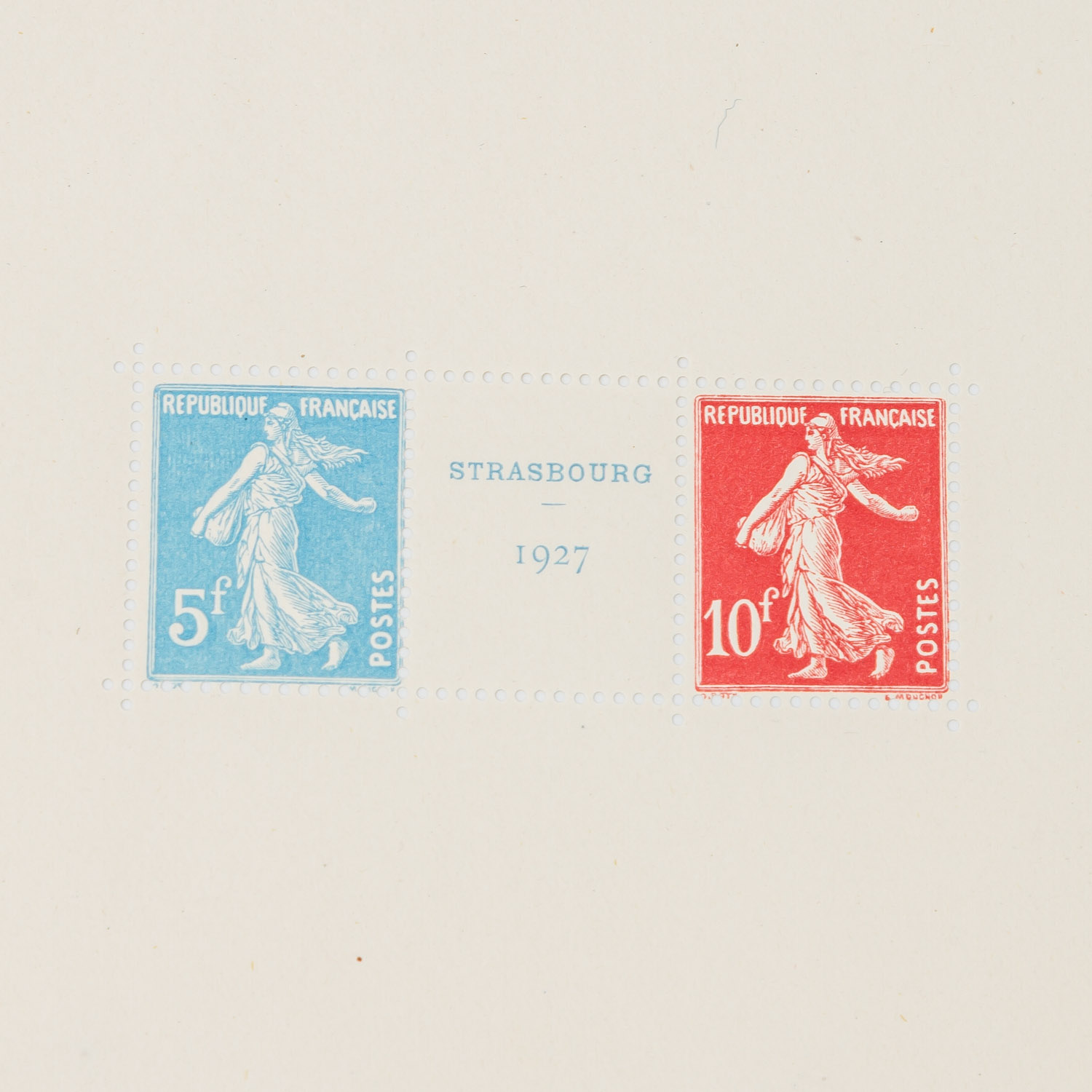 Frankreich 1927-37, Strasbourg- und Pexipblock postfrisch, Block leichte Randbüge und leichter Fingerabdruck oben.