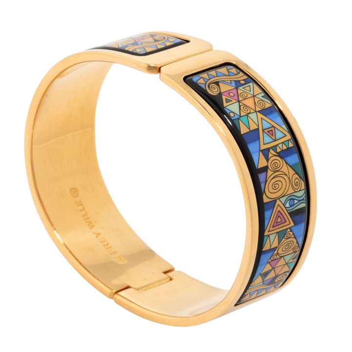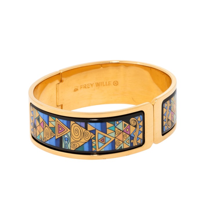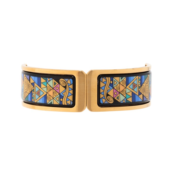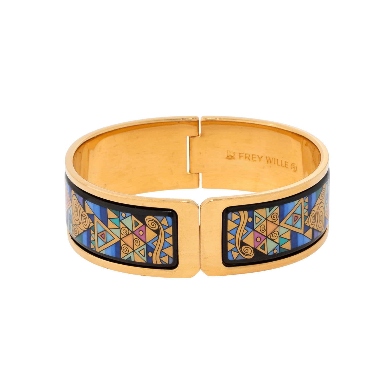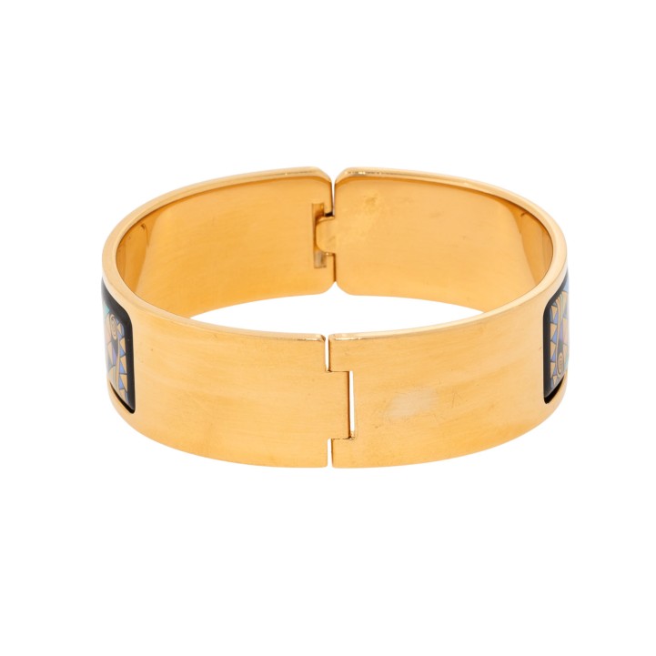 Feueremail mit geometrischem Dekor, vergoldet, 58 g, IU ca. 17 cm, B ca. 2 cm, 21. Jh., leichte Gebrauchsspuren, Markenpunze.