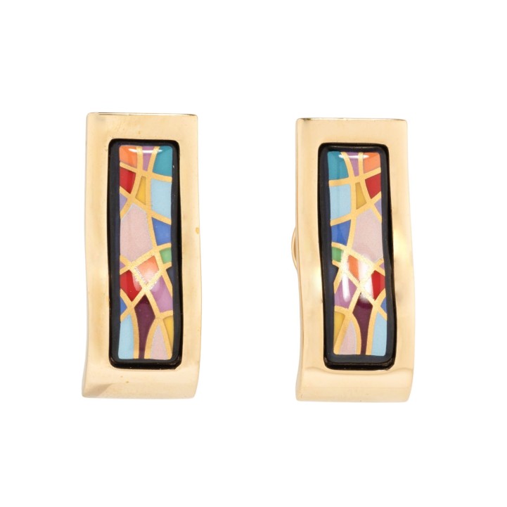 buntes Feueremail, 24K Vergoldung, 12,5 g, 21. Jh., sehr leichte Tragespuren, Box.