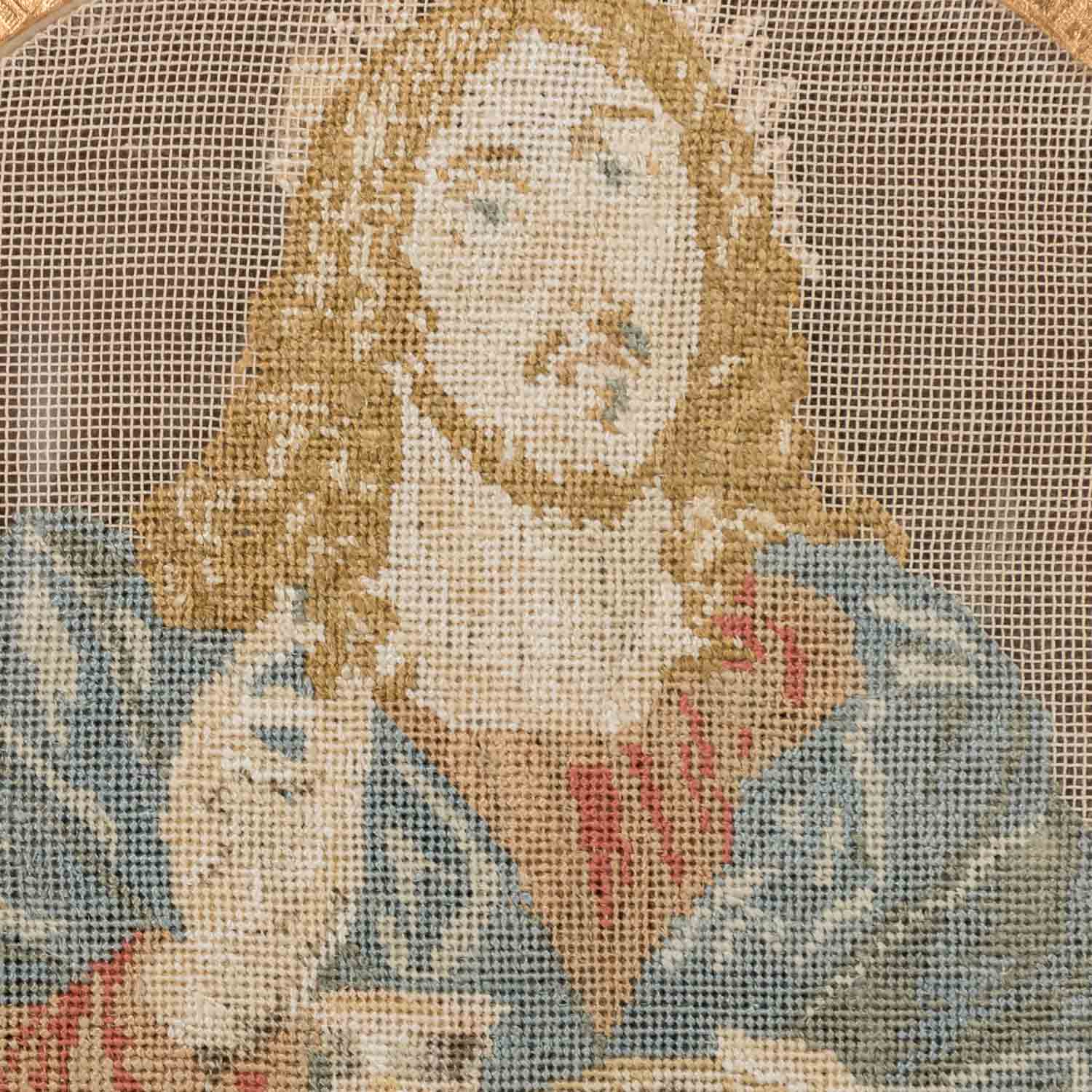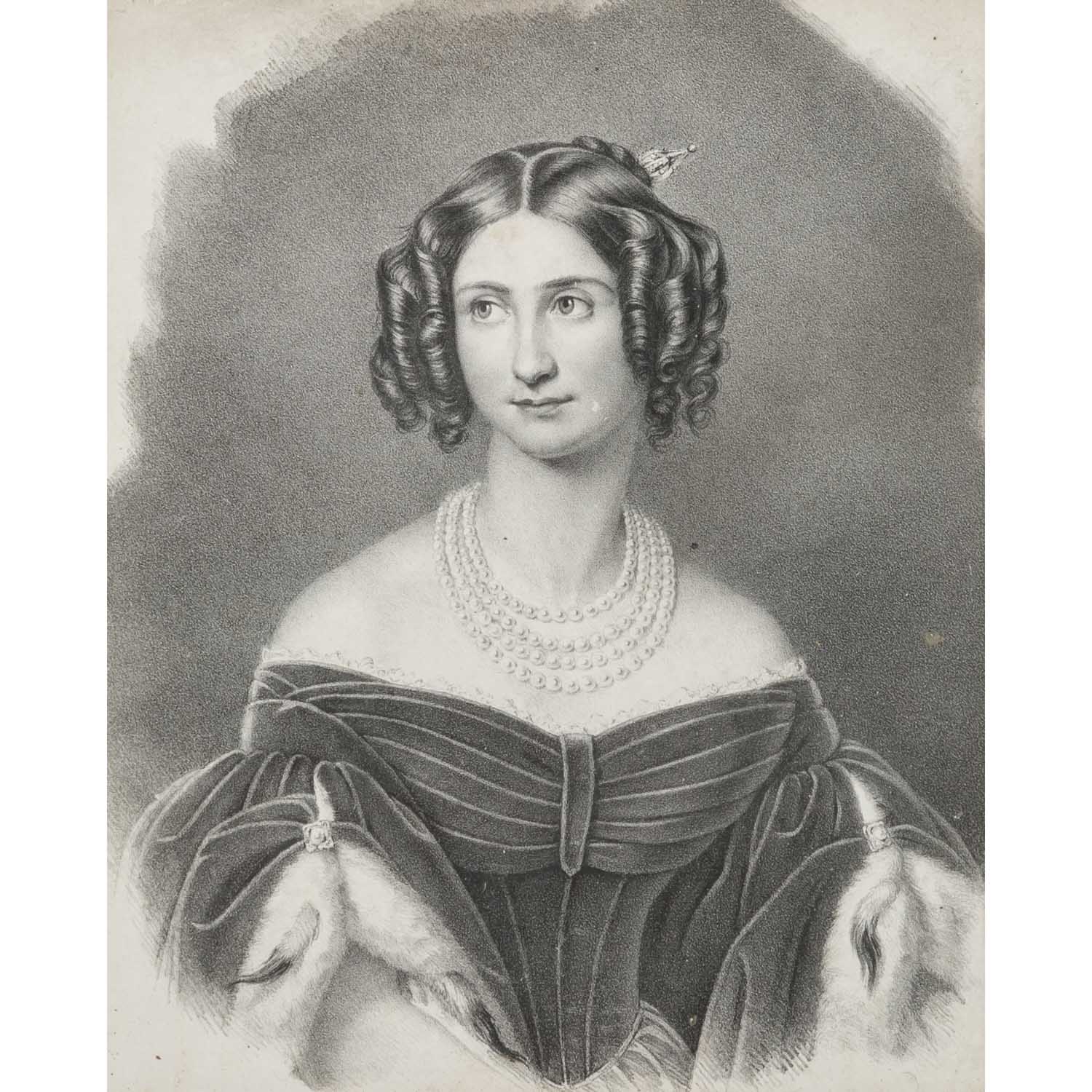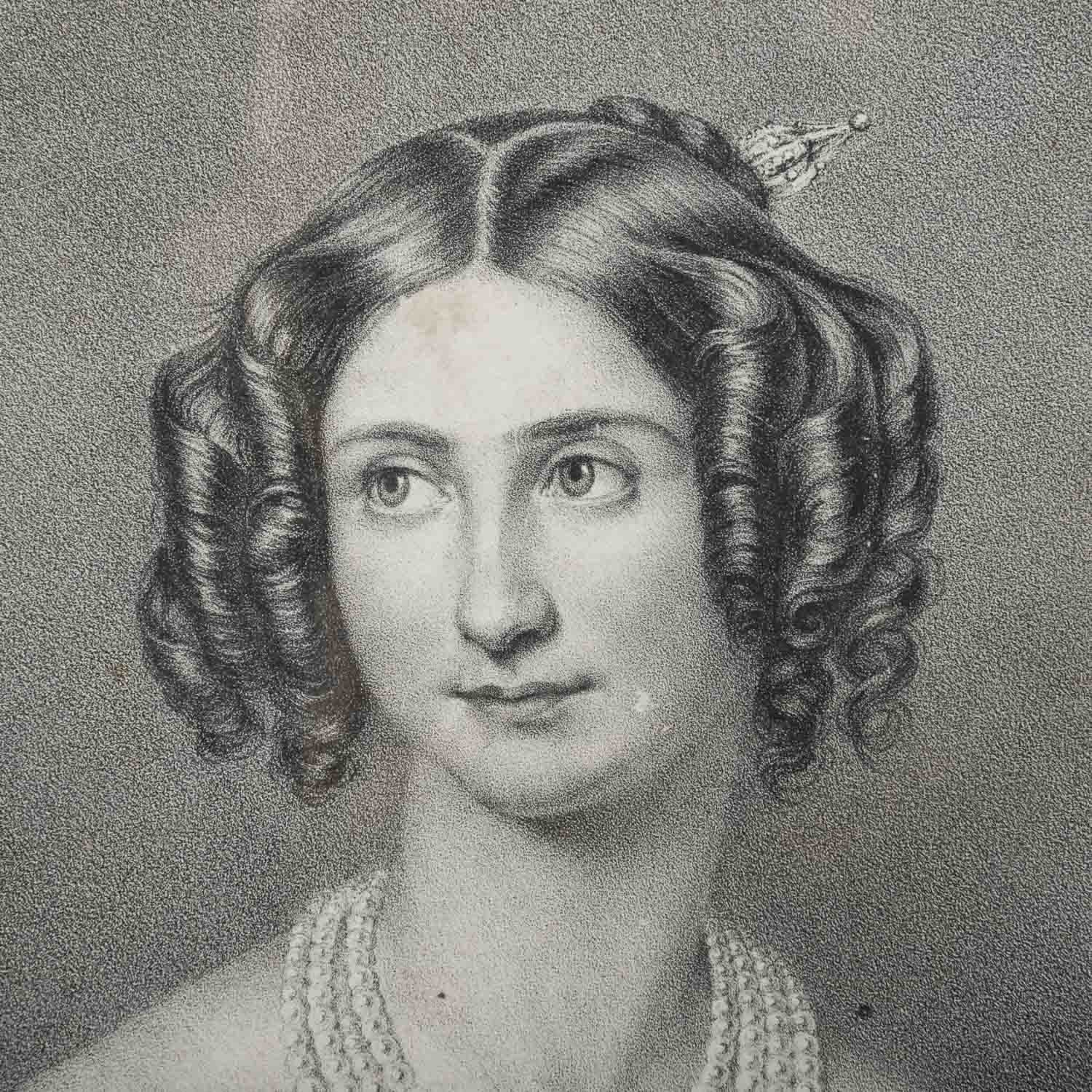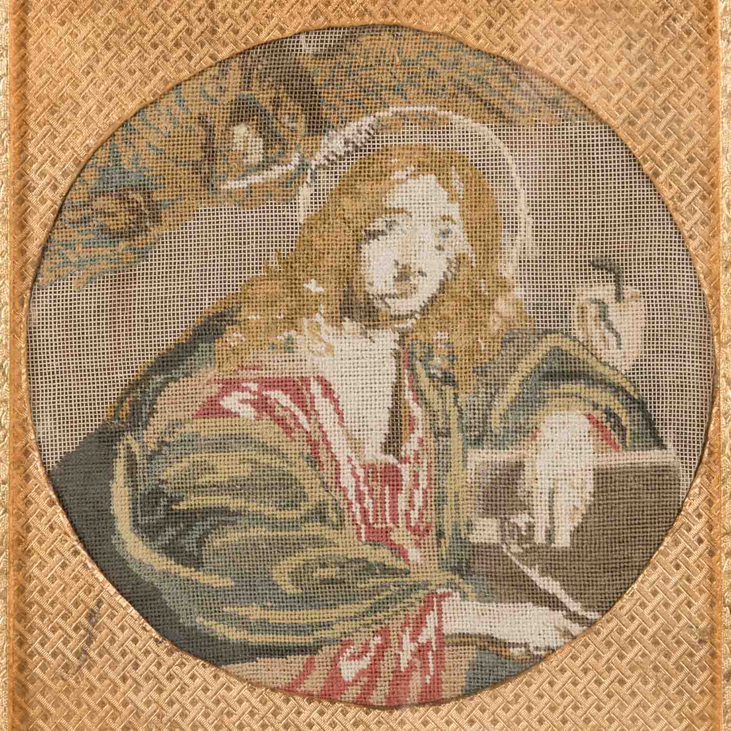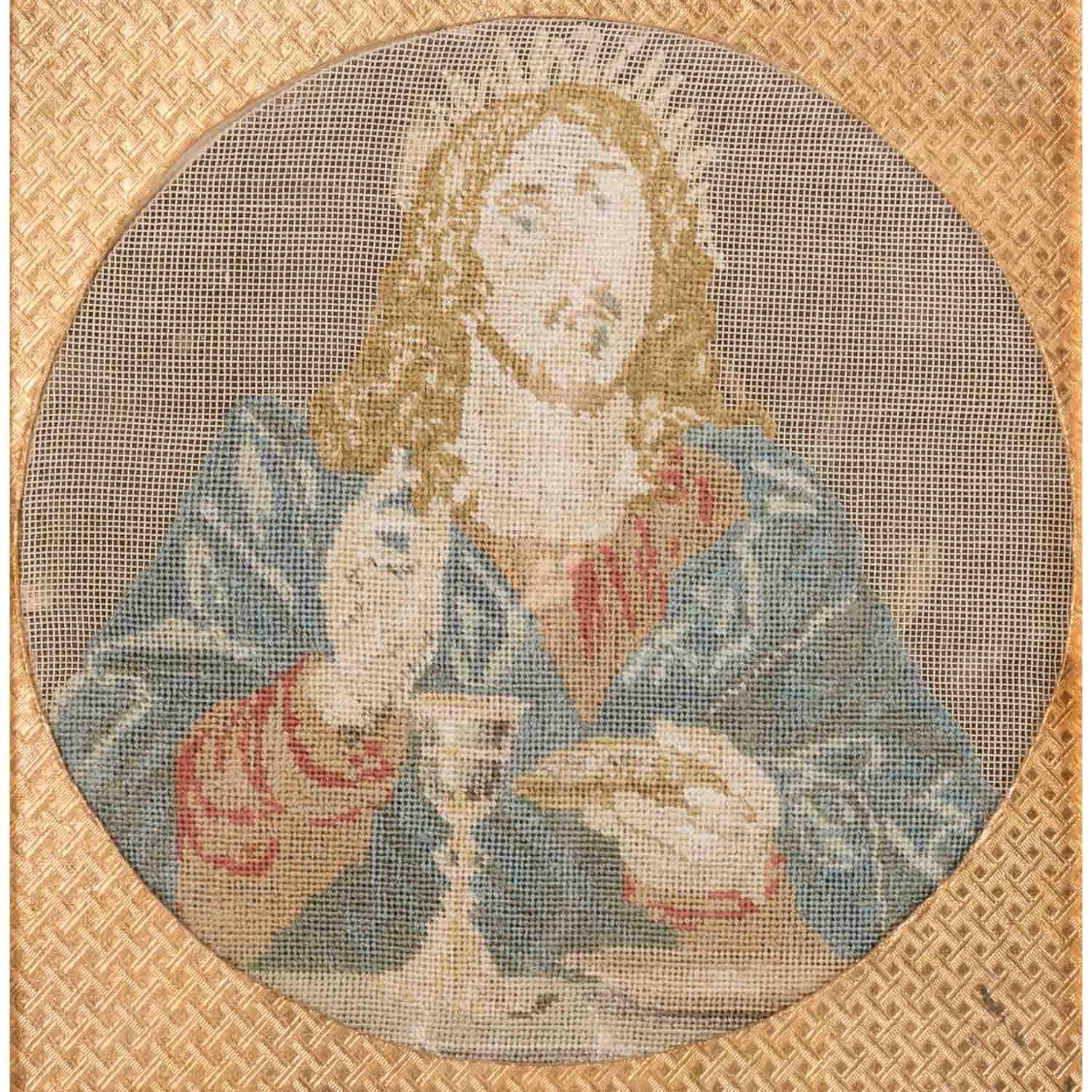 bestehend aus 1) 2 runde petit-point-Stickereien, welche Christus und den Heiligen Johannes zeigen, Klosterarbeiten, HxB: Stickerei ca. 14x14 cm (24,5x22,5 cm mit Rahmen); 2) Porträt-Stich der Fürstin, HxB: Blatt ca. 23x19 cm, Außenmaße Rahmen ca. 31,5x26,5 cm. Jeweils Alters- und Beriebsspuren. Jeweils mit verglastem Rahmen (Alters- und Beriebsspuren).PROVENIENZ: laut mündlicher Auskunft von Fürstin Eugenie, seither im Familienbesitz.