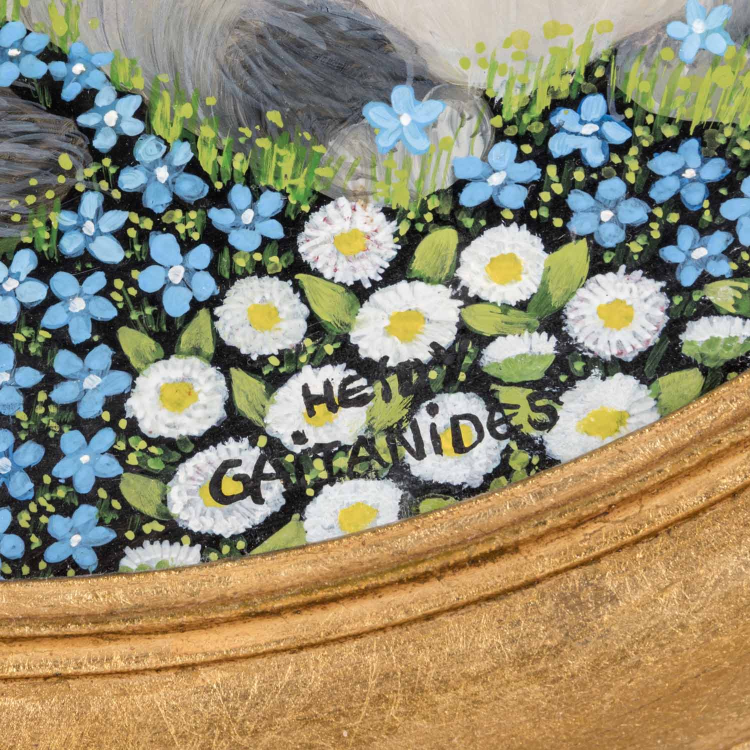GAILANIDES, H. (XX) 'Siamesische Katze mit blauer Fliege in einem Blumenfeld'