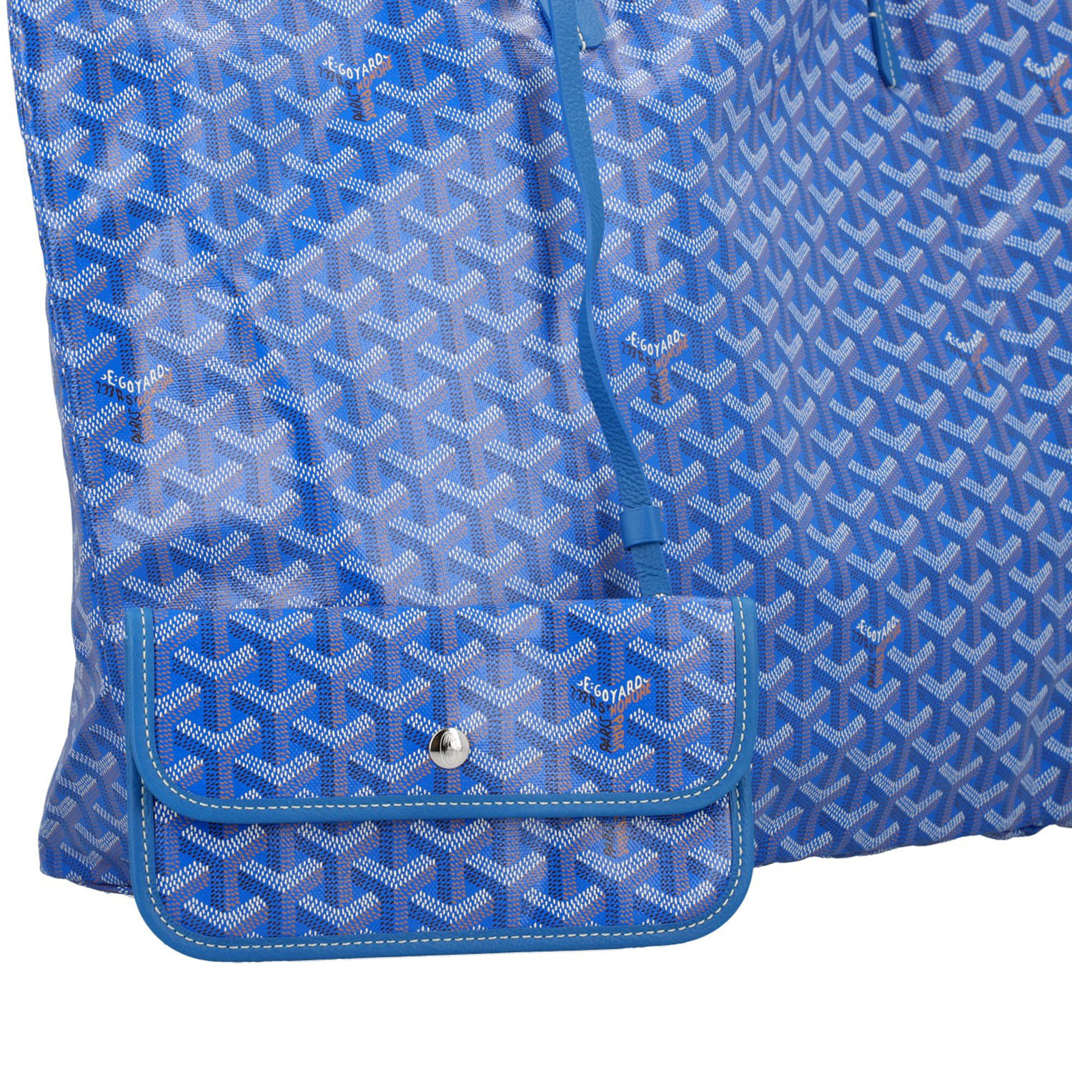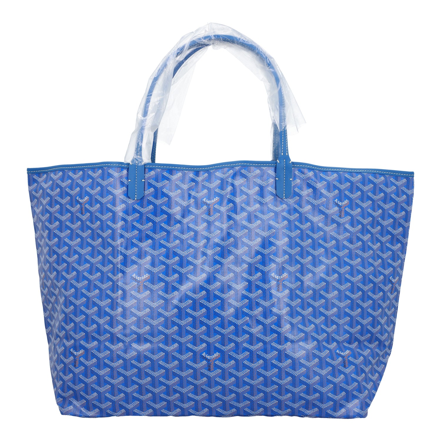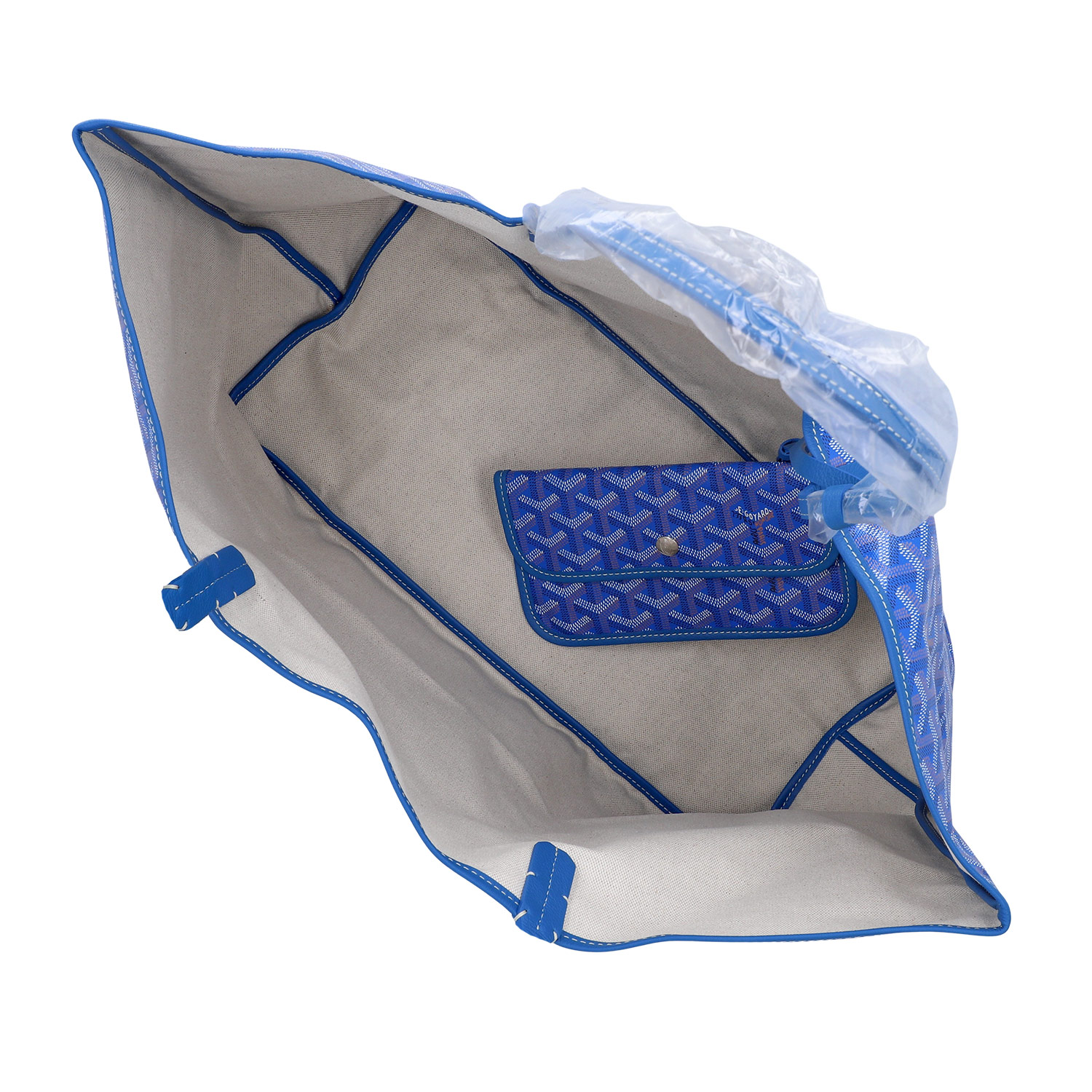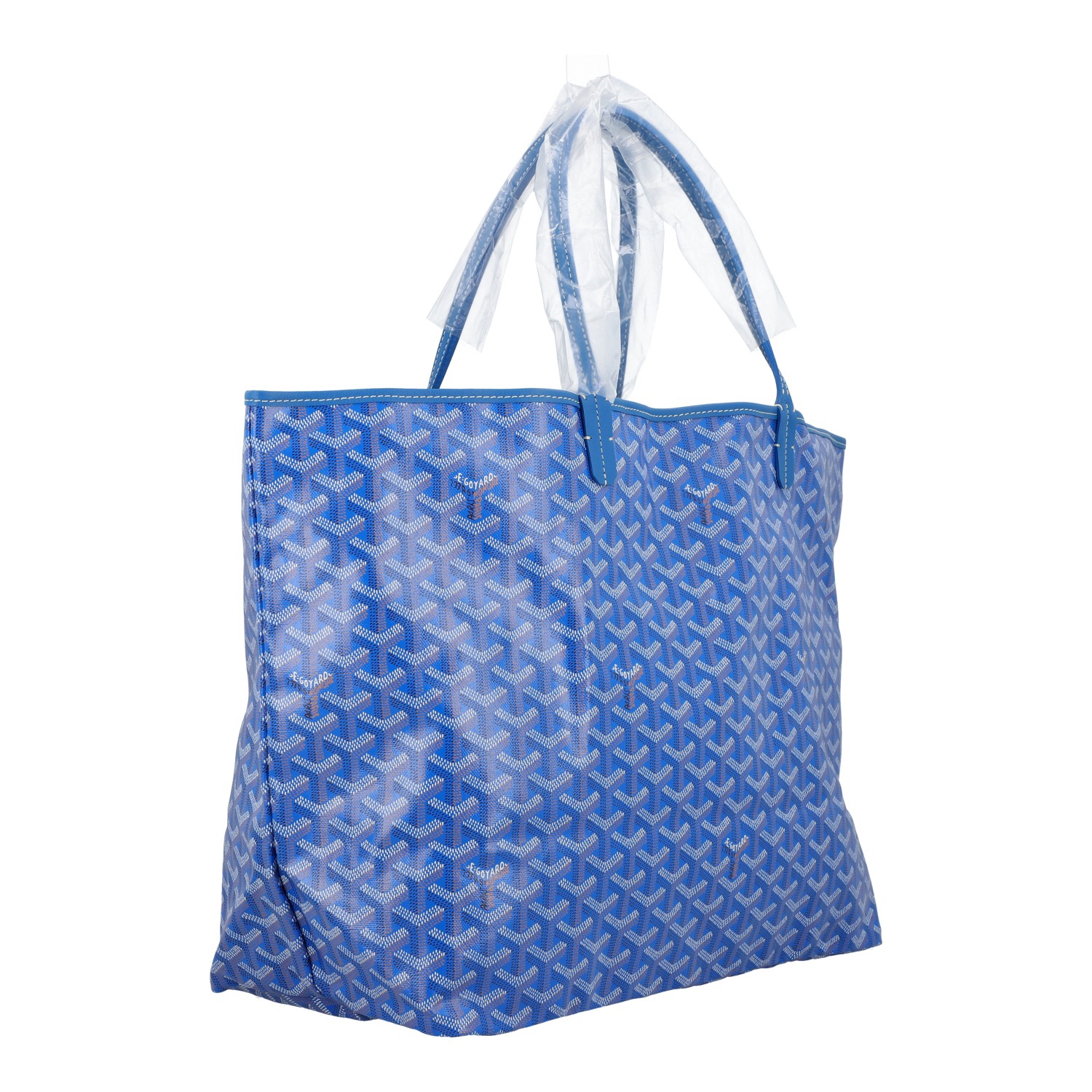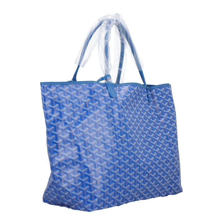 Goyardine Canvas in Sky Blue mit Details aus Kalbsleder, Doppelhenkel.