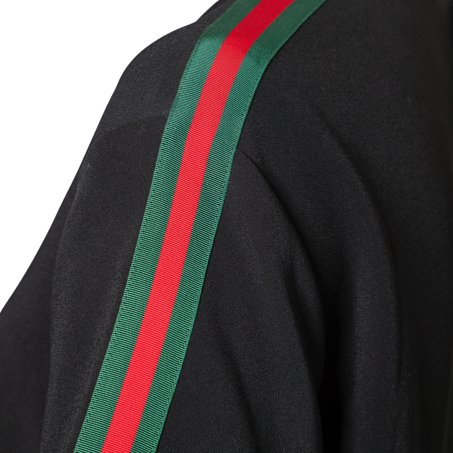Schwarzes Modell mit kurzen Ärmeln und rot-grünem Web an der Seitennaht. Tragespuren vorhanden.