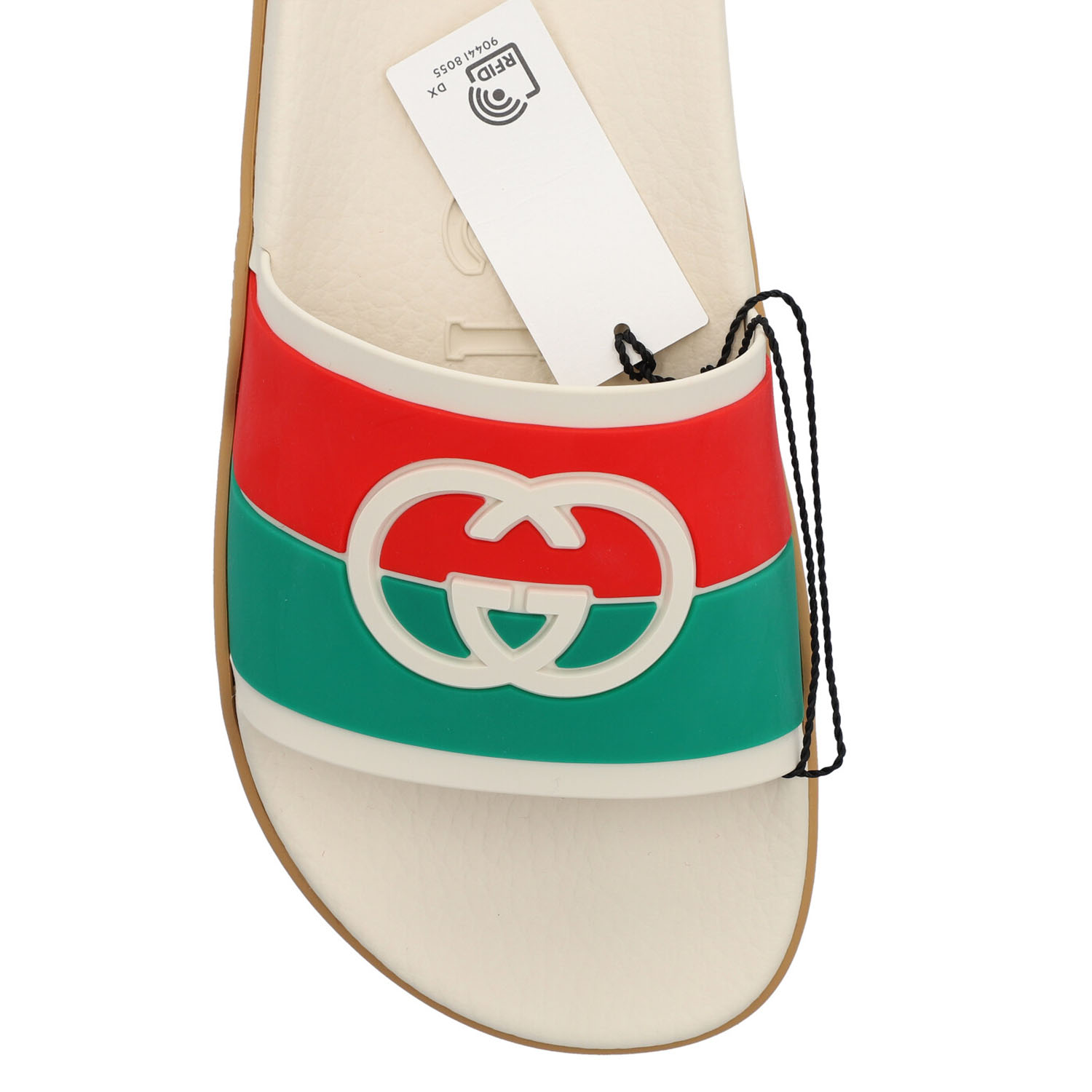 In Creme mit Trageriemen in Grün/Rot und GG-Logo. Box anbei. Neuwertig mit Box.