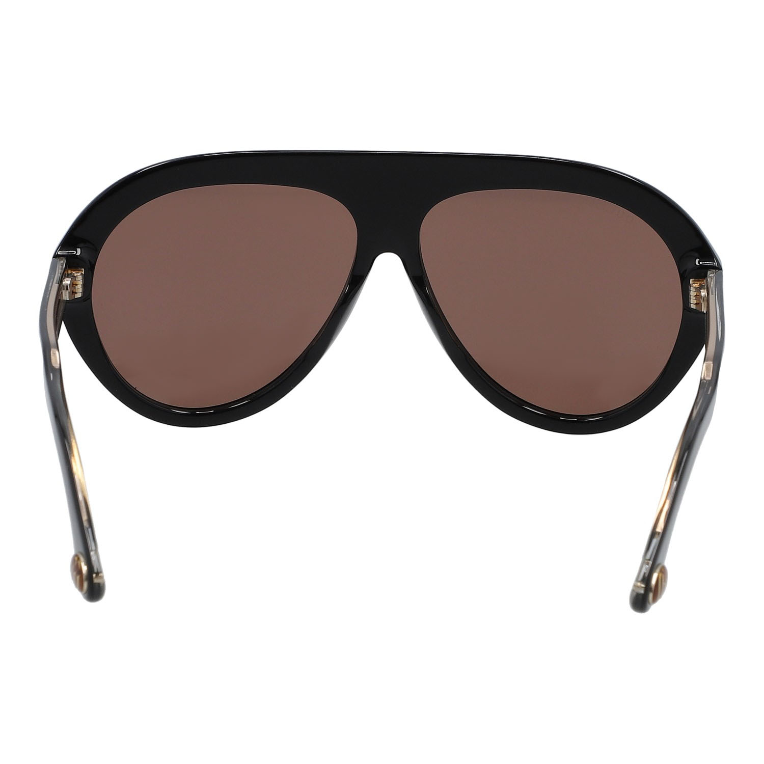 Aviator Gestell in Schwarz mit goldfarbenem Dekor und getönten Gläsern. Etui anbei. Tragespuren vorhanden.