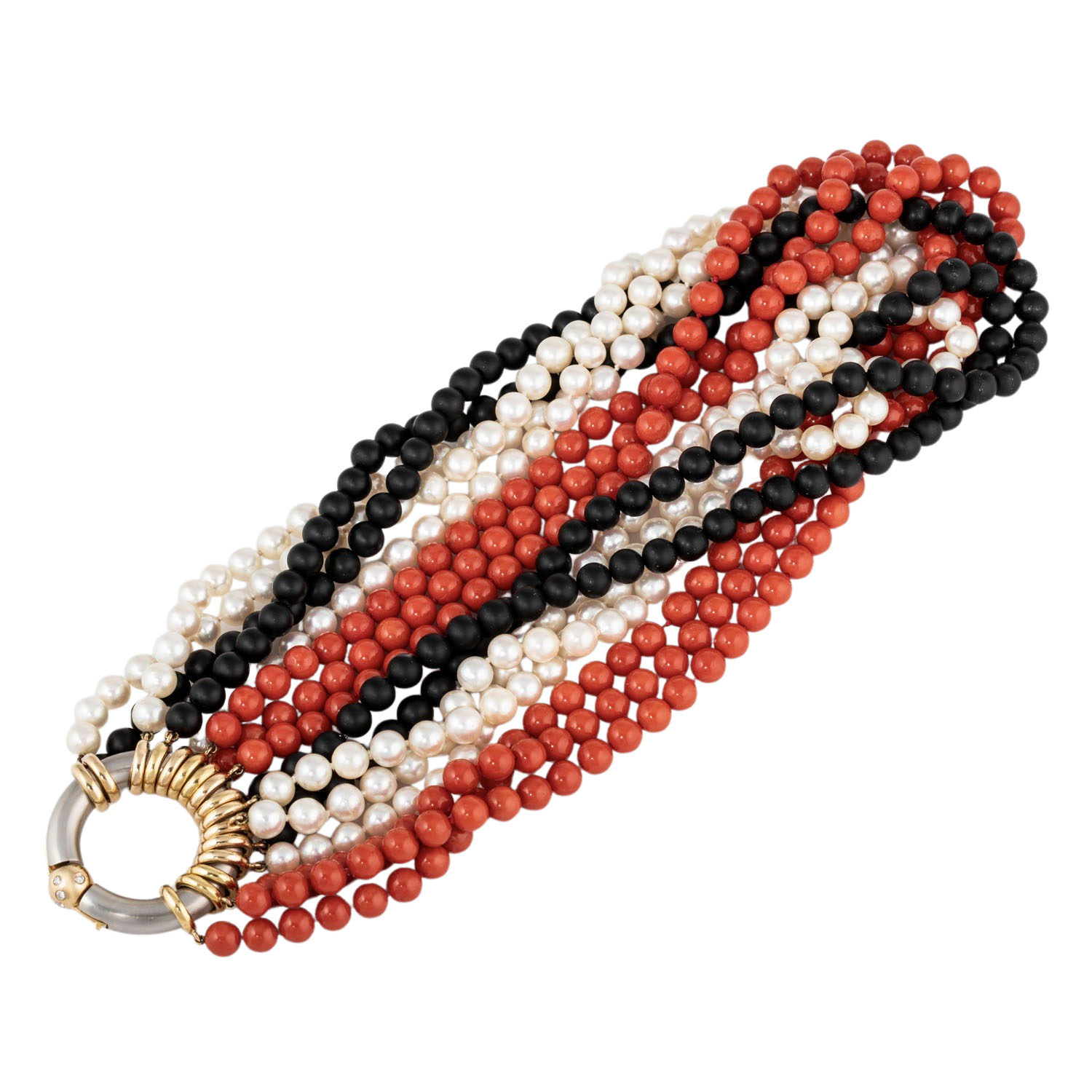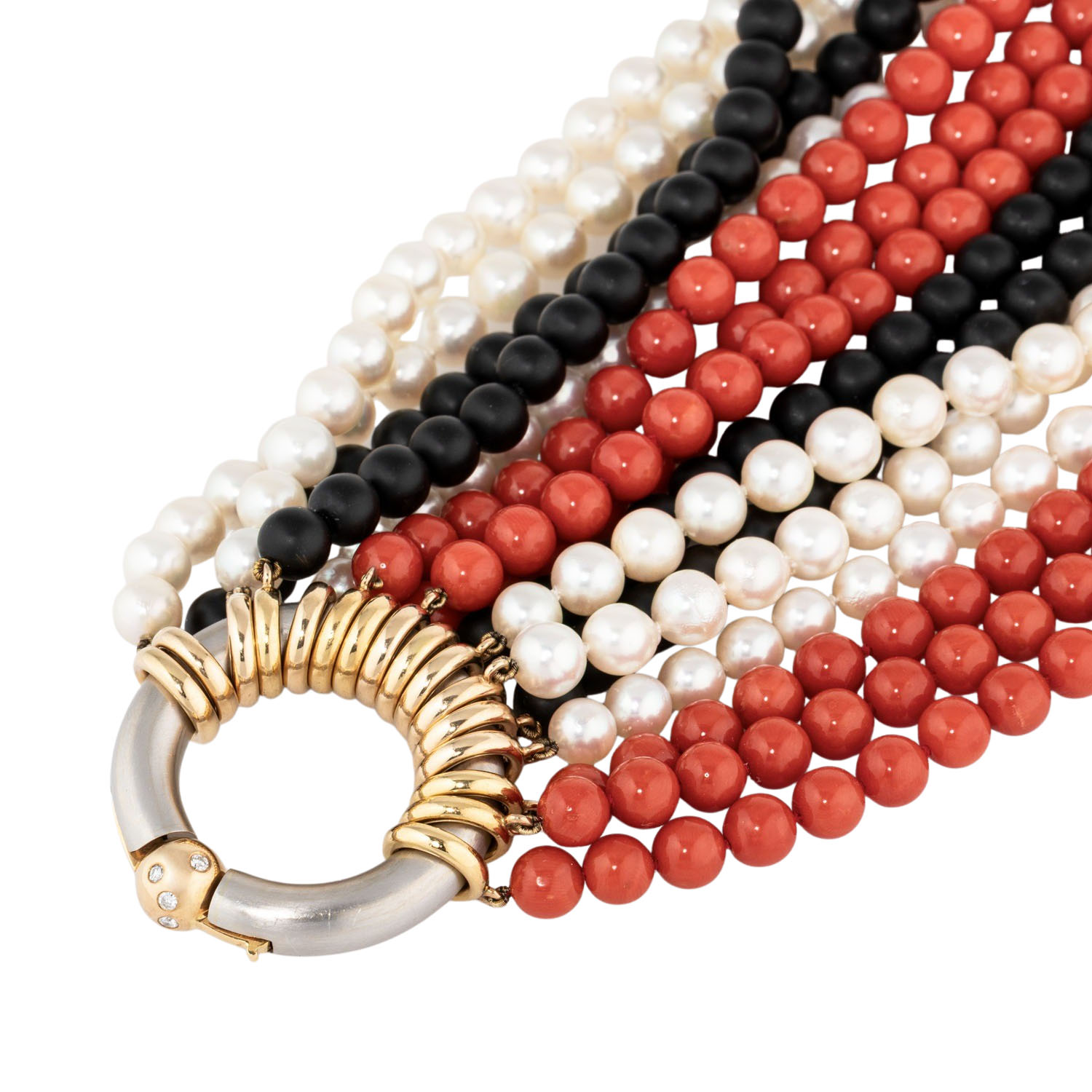GÜNTER KRAUSS Collier aus Perlen, Korallen, Onyx,