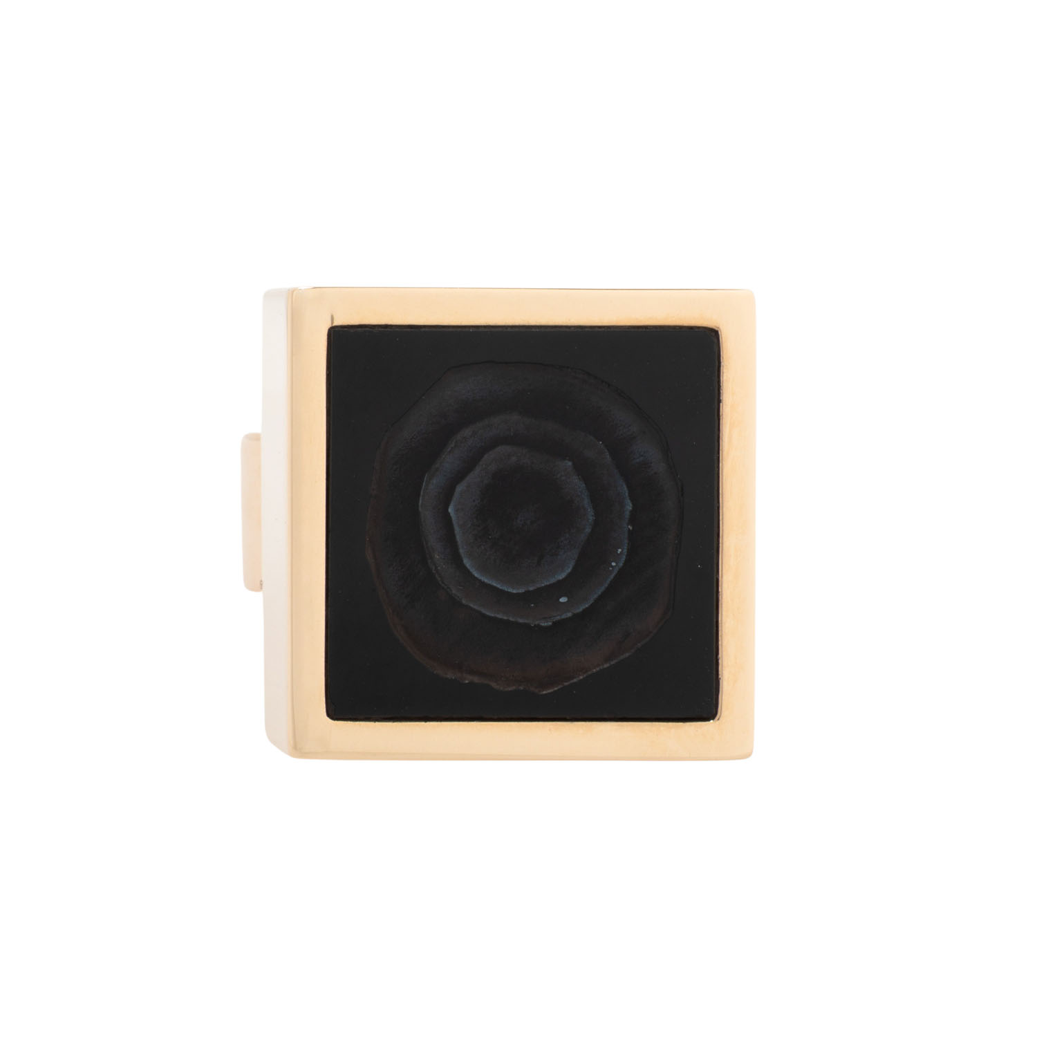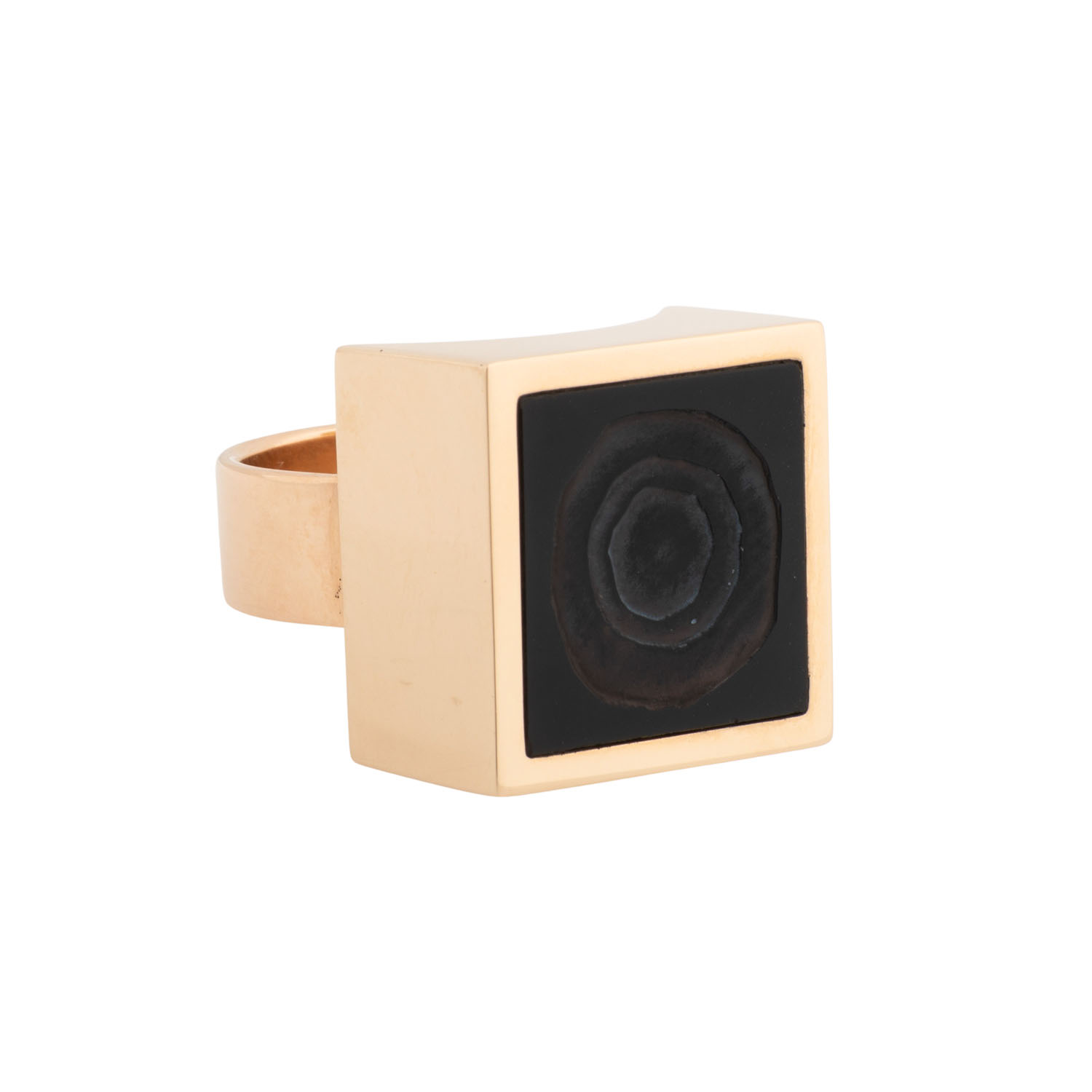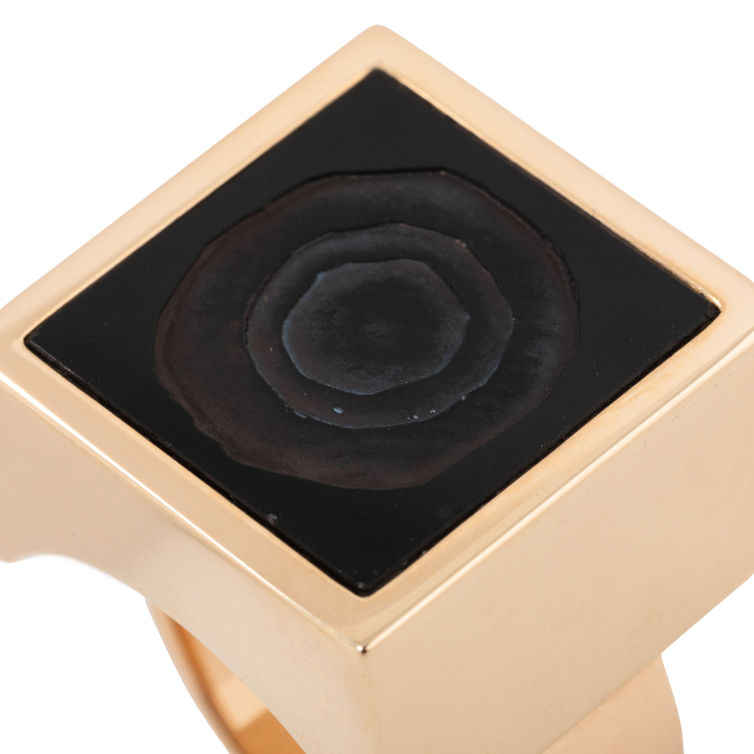 schwarze quadratische Platte 19x19 mm, GG 14K, 23,9 g, RW: 61, 1970er Jahre, leichte